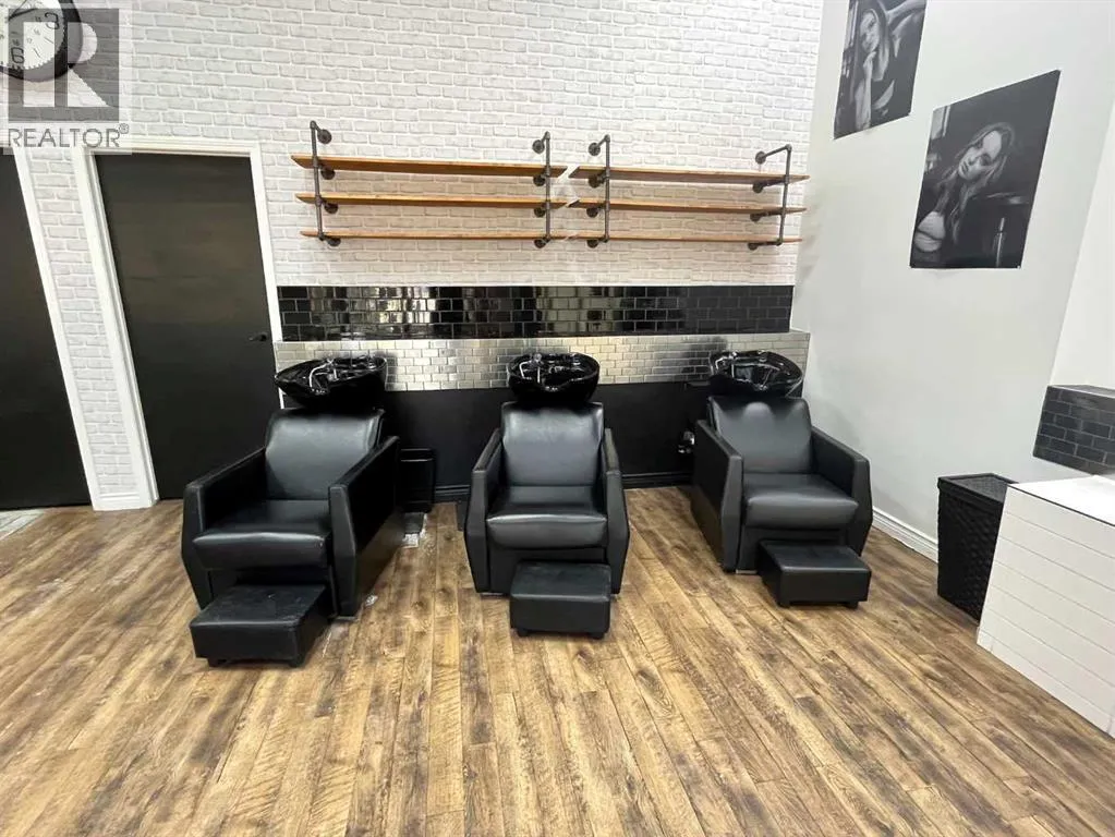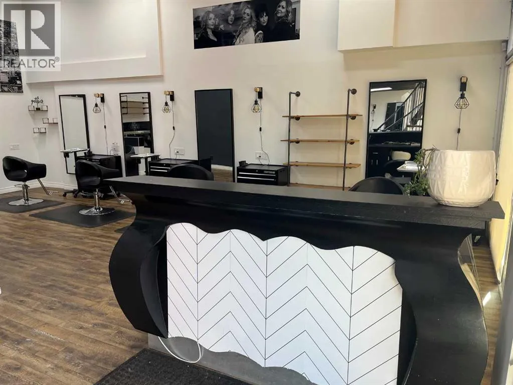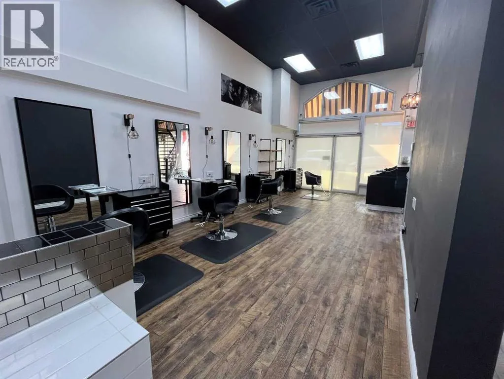 This 1,615 SF, fully built out, move-in ready salon located in Downtown Red Deer is available for lease. The unit features an open reception and waiting area, multiple stylist stations with mirrors, chairs, and storage, three main floor shampoo stations, a private washroom, a laundry room/mixing room, an additional room for services, and a mezzanine with two more stylist stations and another shampoo station. There are high-end fixtures throughout the space and large windows in the front that bring in plenty of natural light. Parking on site is available for clients only. Ample street parking and public parkades are available nearby for staff. Additional Rent is estimated at $8.84 for the 2026 budget year. (id:27476)