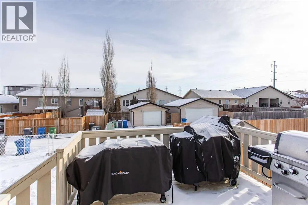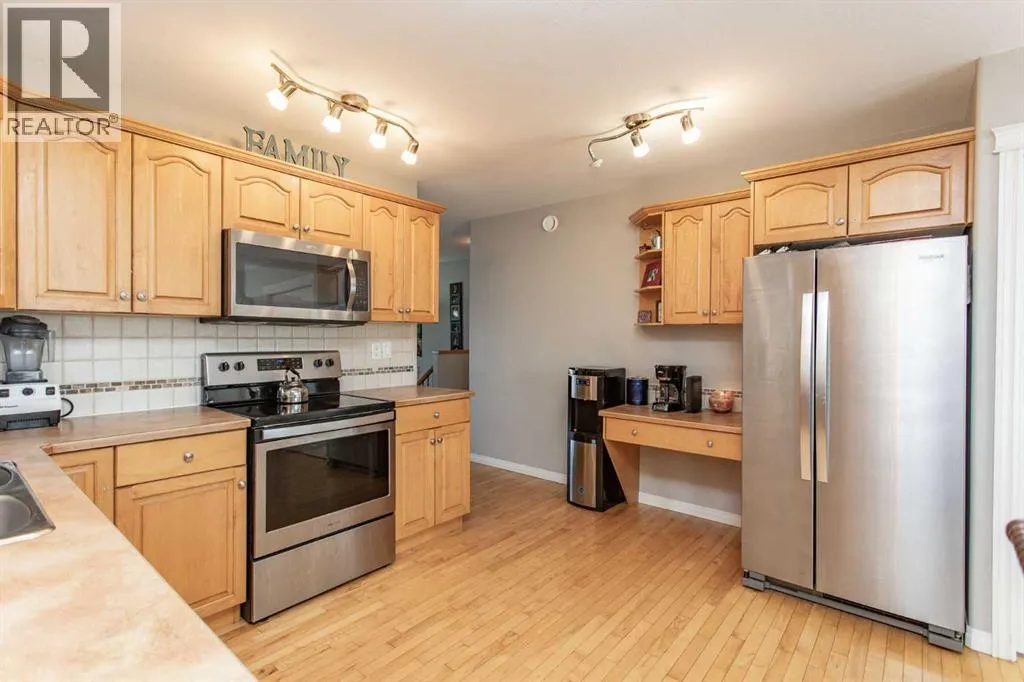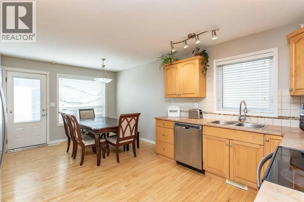Nicely appointed bi level ideally suited for a family looking for the perfect fit in a home. Situated just steps away from a huge green space with a park area, playground and skating rink for the kids to enjoy. Fully developed with 5 bedrooms and an open, spacious plan for everyone to move around in. Maple hardwood floors enhance the main floor design with a large front sitting room with picture window. The large kitchen and dining area offers an abundance of maple cabinetry which is accented by the stainless steel appliances, coffee bar area ideal for the grab and go mornings plus a family size eating area perfect for the home time gatherings. The generous Primary bedroom is large enough for a King size bed plus additional furniture, full walk in closet plus a private three piece en suite. The finished basement is excellent for entertaining. Massive family room with games area is ideal for media space and socializing. Two larger guest bedrooms plus an additional four piece bath makes things easy for extended family or the stay at home students. Finished laundry space even offers room for extra storage and shelf space. Cozy underfloor heat for the winter plus cooling AC for the summer are two comfort features you will love during the seasons. Venture outside and enjoy the fully fenced and landscaped yard. Large deck offers a gas line for bbq or patio heater. Room for RV parking if needed with swing gate already in place. The oversize attached garage is finished with plenty of room for vehicle protection and extra storage space. Home is also situated in an ideal location for neighborhood amenities plus a number of schools are right in the immediate area. (id:27476)