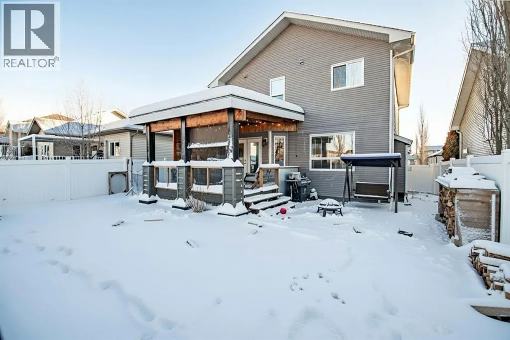 Welcome to this fully finished and trendy 2-storey home that delivers space, style and serious wow factor, perfectly situated on a large close in the highly desirable Vanier Woods neighbourhood of Red Deer. Known for its family-friendly atmosphere, walking trails, parks, playgrounds and quick access to schools, shopping and amenities, Vanier Woods is one of Red Deerâs most sought-after communities for growing families and professionals alike. Exceptionally well cared for and thoughtfully designed, this 5-bedroom, 3.5-bath home with a bonus room offers both comfort and functionality from top to bottom. A charming covered front porch welcomes you inside to a spacious tiled entry that opens into a bright open-concept main floor featuring wide-plank laminate flooring and a cozy gas fireplace anchoring the living room. The kitchen is a true showpiece with dark maple cabinets finished with crown mouldings, soft-touch drawers, pots-and-pans storage, recycling pull-outs and a kick-sweep for the central vac. Chunky countertops, a full tile backsplash and a lowered breakfast bar with granite composite sink make this space ideal for everyday living and entertaining. Stainless steel appliances include a convection oven with warming drawer, water to the fridge and a convenient corner pantry for added storage. Double doors lead to a pergola-covered sundeck, overlooking a beautifully landscaped yard backing onto trail/green space and a nearby park. Upstairs offers three generously sized bedrooms, all with walk-in closets, including a stunning primary retreat complete with a 4-piece ensuite, beautifully tiled dual shower heads and a deep soaker tub. A full main bathroom and a bright large bonus room with oversized windows complete the upper level, providing flexible space for a media room, playroom, or home office. The fully developed basement adds even more living space with a family room two additional bedrooms, a 4-piece bathroom, laundry area and operational in-floor heating fo r year-round comfort. Additional highlights include central air conditioning, a high-efficiency furnace and hot water tank, and brand-new shingles for peace of mind. The attached garage is insulated, drywalled, wired with 220V and features an 8-ft tall garage door, ideal for larger vehicles or extra storage. Outdoor living is enhanced with a custom canine tie-off holder, a dedicated dog run & functional yard design. Finished in on-trend colours and offering an exceptional floor plan in one of Red Deerâs best neighbourhoods, this move-in-ready home truly checks every box. A rare opportunity to own a stylish, functional property in Vanier Woods - this one stands out. It is a quiet, family-friendly neighborhood located in the south side of Red Deer, known for its peaceful streets, modern homes and easy access to amenities. The community offers a great balance of serene residential living while still being close to shopping, schools, parks and major roadways for convenient commuting. (id:27476)