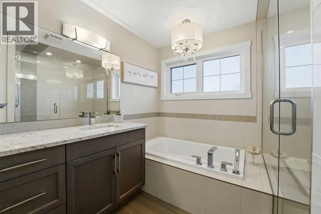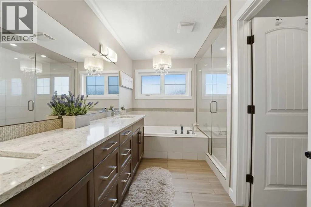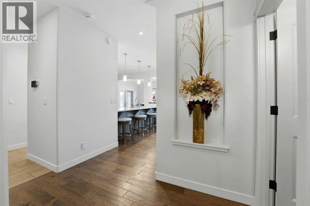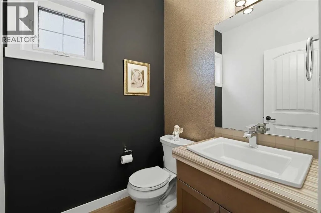 Welcome to 19 Vernon Close, a fully developed executive two story tucked away at the end of a quiet close in desirable Vanier East, backing directly onto expansive green space with walking trails and playgrounds. A covered front veranda welcomes you into a spacious tiled foyer with built in storage. The open concept main floor is complemented by high ceilings, rich hardwood flooring, and large windows that fill the home with natural light. The living room is anchored by a stunning floor to ceiling stacked stone gas fireplace creating a warm and sophisticated focal point. The impressive kitchen offers an abundance of maple cabinetry, quartz countertops, under cabinet lighting, full tile backsplash, wall pantry, and eating bar, thoughtfully designed for both everyday living and entertaining. The spacious dining area easily accommodates large gatherings and provides garden door access to the partially covered deck and beautifully landscaped backyard. A private home office with French doors and built in desk and cabinetry, convenient mudroom with bench and shelving off the heated triple attached garage, and a stylish two-piece bath complete the main level. Upstairs, the open staircase leads to a generous bonus room, upper level laundry with built in cabinets, folding counter, sink, and linen storage, and three well appointed bedrooms. The primary retreat offers a wall of windows with shutters, a large walk-in closet, and a spa-inspired ensuite featuring dual vanities, soaker tub, separate shower, and private water closet. Two additional bedrooms are thoughtfully positioned near a four-piece bath with its own separate water closet for added functionality. The fully finished basement features high ceilings and operational in floor heat, offering a spacious family room with adjoining flex space, a fourth bedroom, a full four-piece bathroom, and abundant storage. Additional highlights include central air conditioning, central vacuum, Pro Water Conditioning system providing filtered water, built in features throughout, and pride of ownership evident in this home. The landscaped and fully fenced yard offers privacy and an exceptional outdoor setting designed for both relaxation and entertaining. An outstanding opportunity to own a meticulously maintained luxury home in one of Red Deerâs most sought-after neighborhoods. (id:27476)