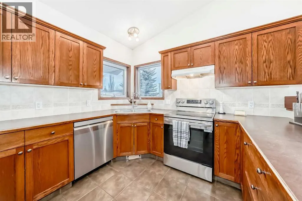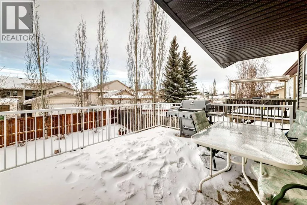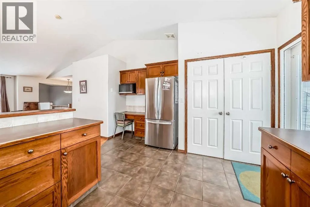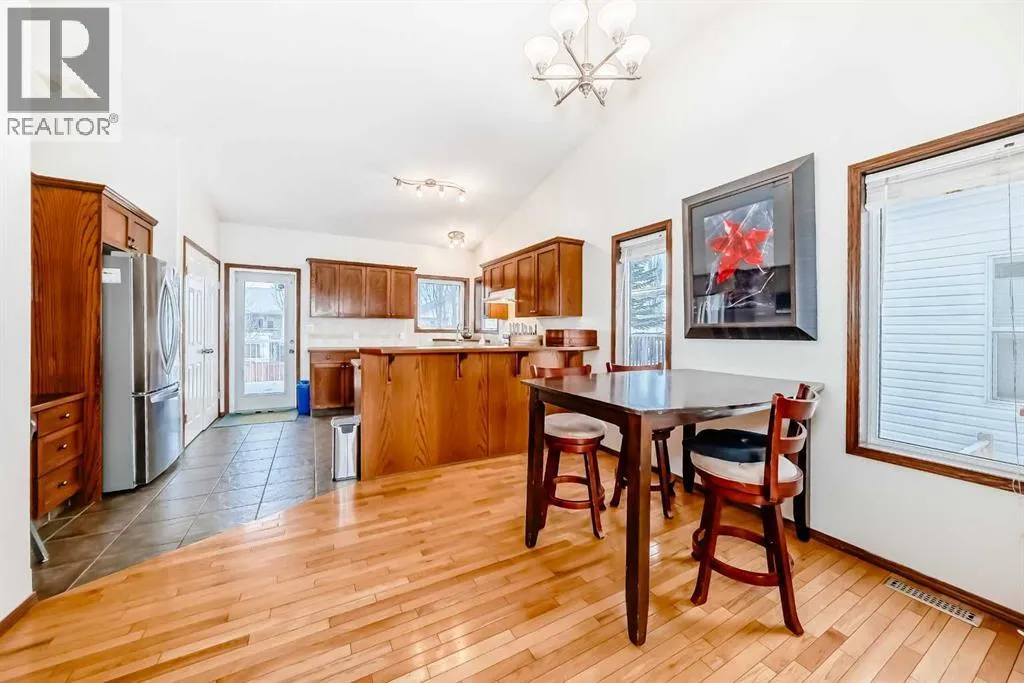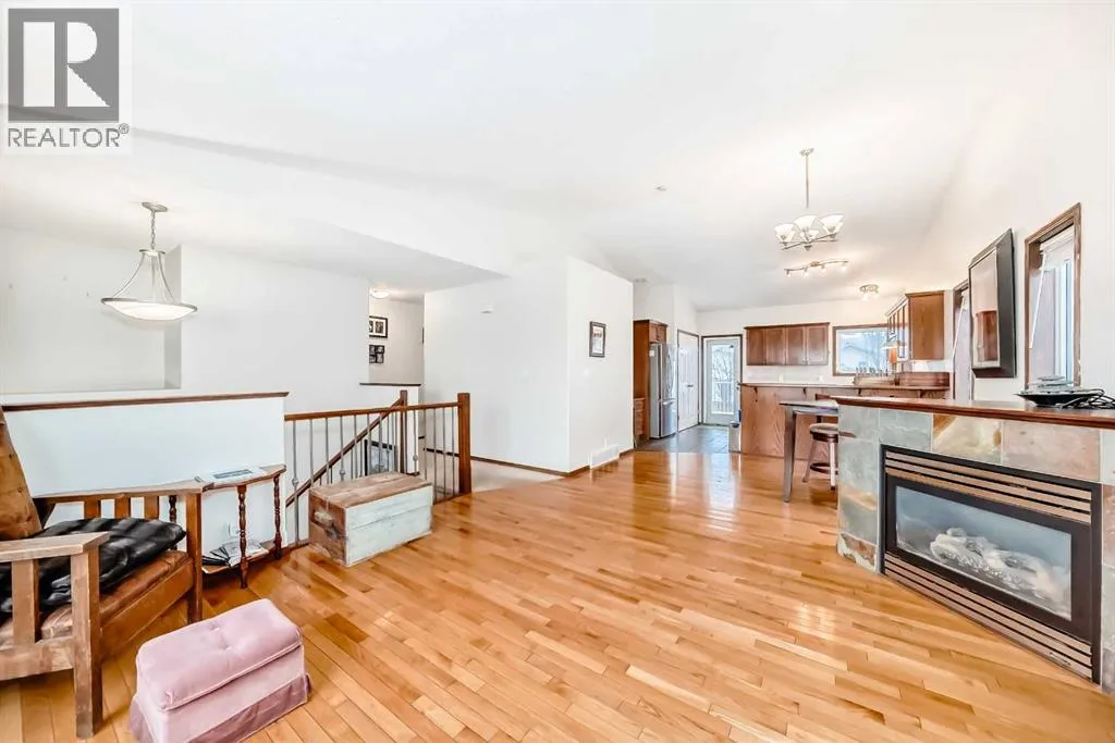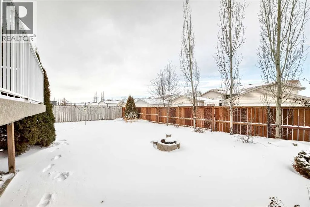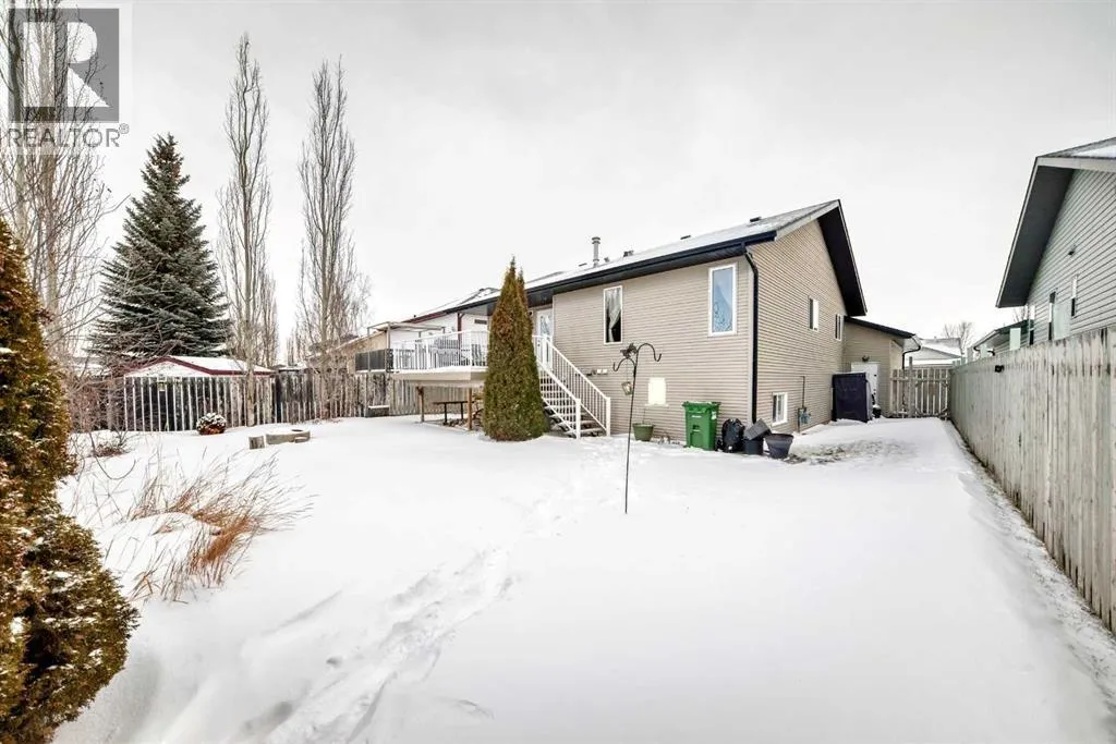 WELCOME to this terrific family home, perfectly situated on a highly desirable close. Designed with comfort and functionality in mind, this home features oak hardwood and tile flooring throughout the kitchen, front entry, and all bathrooms. The open-concept main living area is bright and inviting, highlighted by vaulted ceilings and a cozy gas fireplace in the living roomâideal for both everyday living and entertaining. The spacious kitchen offers an abundance of cabinetry, stainless steel appliances, a breakfast bar, and built-in cabinets and drawers for a convenient office or homework space, and features direct access to the deck, perfect for summer BBQs. The adjoining dining area provides plenty of room for family gatherings with an open floor concept to the living room. The main level includes three bedrooms, including a generous primary suite with a walk-in closet and a 3-piece ensuite. A full 4-piece bathroom completes the main floor. Downstairs, the fully developed basement offers exceptional living space with two additional bedrooms, a large family/rec room ideal for a TV or theatre area, and a 4-piece bathroom. The basement is roughed in for in-floor heating and central vacuum, with laundry conveniently located in the mechanical room. Outside, enjoy the fully fenced and landscaped backyard, complete with a fire pit for relaxing evenings. The maintenance-free deck features Duradek flooring and aluminum railings, making it both durable and stylish. With five bedrooms, multiple living areas, and a fantastic location, this home offers plenty of space for a growing family! (id:27476)