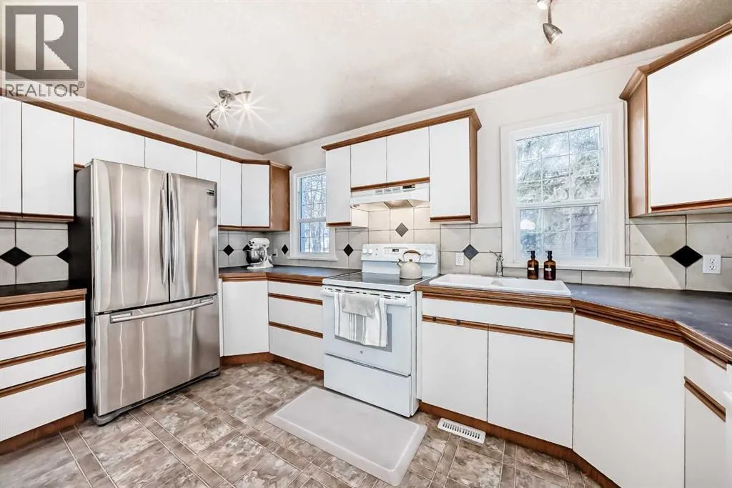 Welcome to this charming home located in one of Red Deerâs most sought after neighbourhoods. Situated on a large west facing lot backing directly onto a park and green space, this property offers privacy, mature trees, and a peaceful setting thatâs hard to find.This well cared for 2 bedroom home features beautiful hardwood flooring throughout most of the developed space, creating a warm and inviting atmosphere. The bright main floor offers a functional kitchen tucked away from the main living areas perfect for preparing meals while still enjoying time with family and guests in the spacious dining and living rooms.The tastefully upgraded 4 piece bathroom is conveniently located on the main floor, while upstairs youâll find two generous bedrooms and a linen closet for added storage.A standout feature of this property is the oversized heated double detached garage. Entering from the garage, youâre welcomed into a large mudroom with ample storage space ideal for busy households. The basement remains undeveloped, with laundry in place and plenty of opportunity to customize to your needs.Outside, enjoy the west facing backyard complete with a large two tier deck, mature landscaping, space for RV parking, and a good sized garden shed.Located close to schools, parks, and local amenities, this is truly a special property offering comfort, character, and potential in an exceptional location. (id:27476)