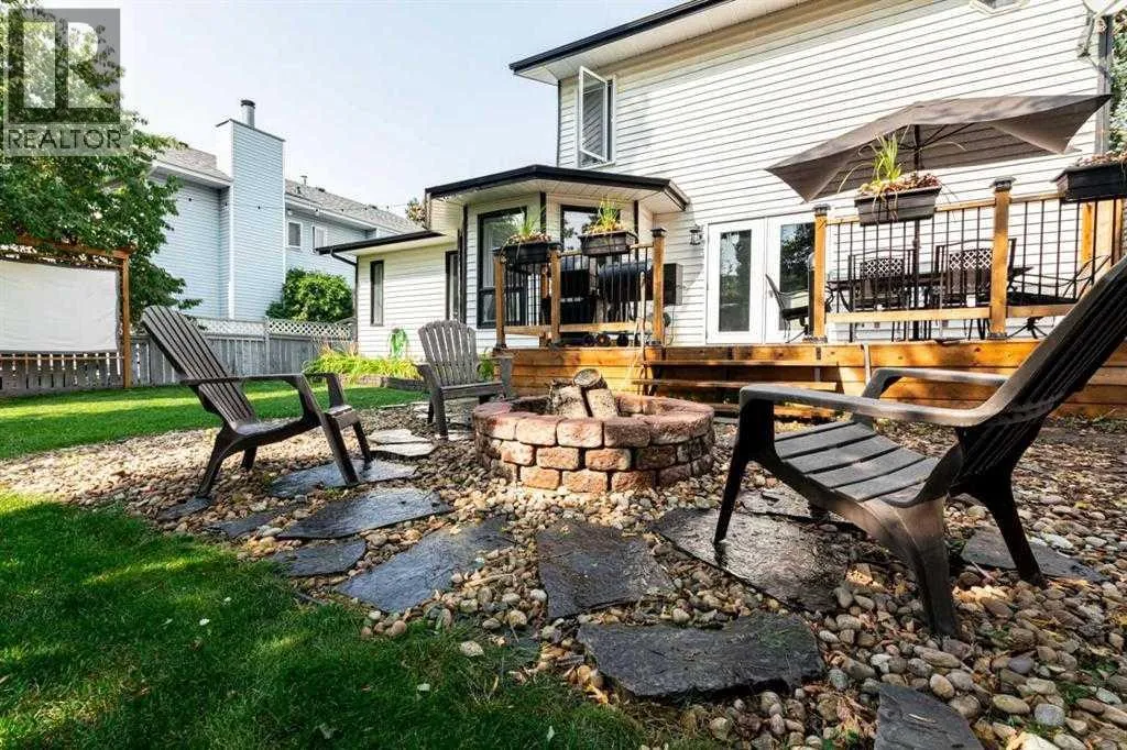Welcome to the wonderful 2-story 6 bedroom + 3 1/2 bath home nestled in a quiet crescent in desirable Deer Park! Step inside to an inviting décor and a stunning vaulted ceiling in the front living room, seamlessly open to the dining area â perfect for entertaining. The spacious kitchen is a delight, featuring a premium Chef fridge & freezer, center island, pantry, and large windows with a breakfast nook overlooking the private backyard. The cozy family room, complete with a charming wood-burning fireplace. Patio doors lead to a deck designed for hosting summer BBQs in the sunny south-facing backyard. This outdoor oasis offers exceptional privacy, mature landscaping, a dog run, firepit, and even an outdoor movie screen.Upstairs, youâll find three generous bedrooms and a full 4-piece bathroom, including a spacious primary retreat with its own 4-piece ensuite and double closets.The fully developed lower level offers three additional bedrooms, one with a large walk-in closet! A den/flex room, another comfortable family room with built-in office/desk area, and an additional bathroom â providing excellent space for a growing family or guests. Recent upgrades include a newer furnace and hot water tank, roughed-in air conditioning, and durable 25-year shingles installed in 2008. This exceptional home combines comfort, functionality, and outdoor living in a peaceful family-friendly location. Outdoor pictures are from a couple years ago a few branches have been removed. (id:27476)