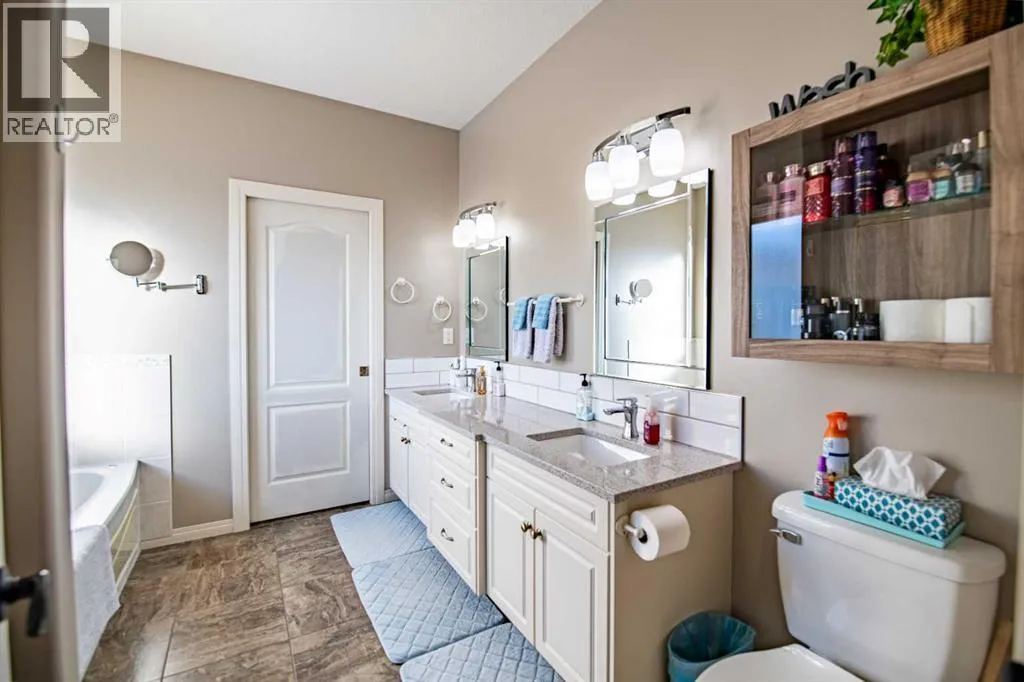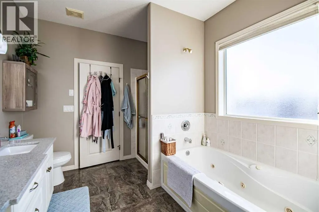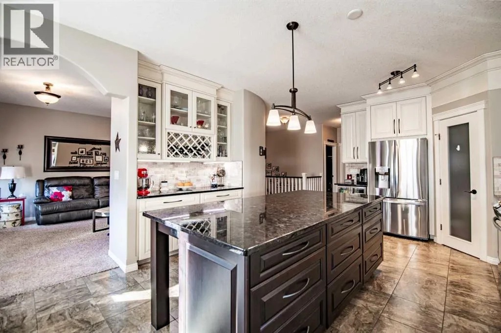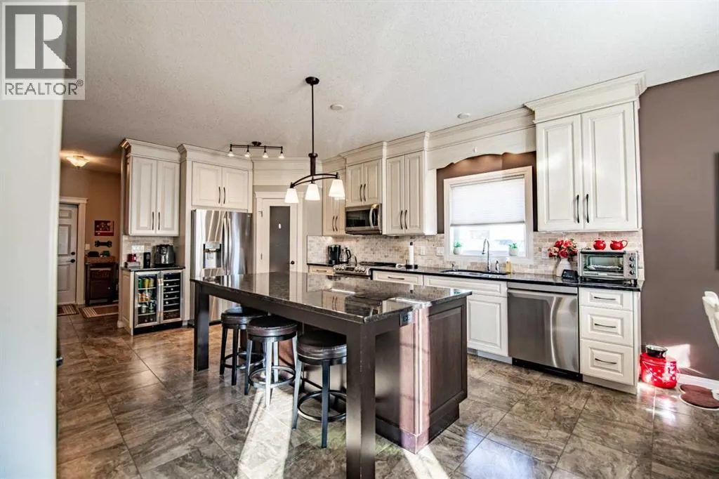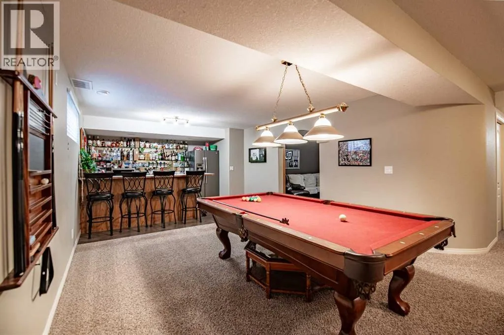 Welcome to 93 Dowler Street, a beautifully maintained bungalow home with a fully finished basement in Red Deer. This stunning property features a triple attached garage with upper storage and a central vacuum system, perfect for convenience and organization. Recent upgrades include a new furnace and central air (June 2025), hot water tank (March 2025), ductwork & dryer vent cleaned (Dec 2025), and a water softener (2022). The exterior boasts vinyl siding (Oct 2020), new shingles (July 2017), and a raised garden area with apple, cherry, and raspberry plants.Step inside to the Huntwood kitchen with soft-close cabinets, granite countertops, large island with pot drawers, travertine backsplash, under-cabinet lighting, and a large pantry. All LG appliances are included, including a new dishwasher (Nov 2025), convection oven, and fridge with ice maker and bottom freezer dispenser. Vinyl plank flooring flows throughout the main living areas, with carpet in the bedrooms. Enjoy the built-in wine rack and mini beverage fridge for entertaining. The main floor includes a 4-piece bath, while the upstairs primary suite features a 4-piece ensuite with separate shower, jet tub, dual sinks, and walk-in closet. The fully finished basement offers a 3-piece bath, wet bar with sink, and recreation area with pool table included.Outdoor living is equally impressive with a deck, backyard fire pit, and natural gas BBQ hookup.This home perfectly blends functionality, modern updates, and inviting spaces - ideal for families seeking a turn-key property in a desirable location. (id:27476)