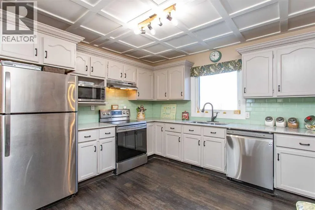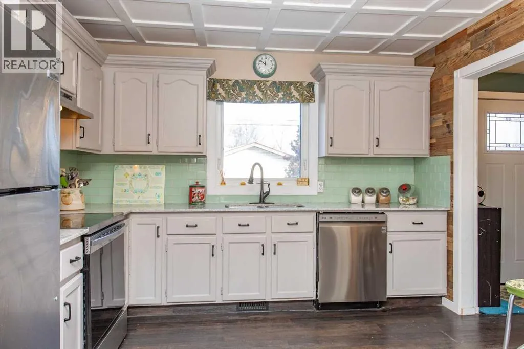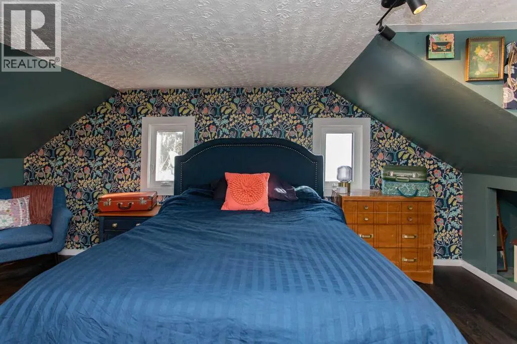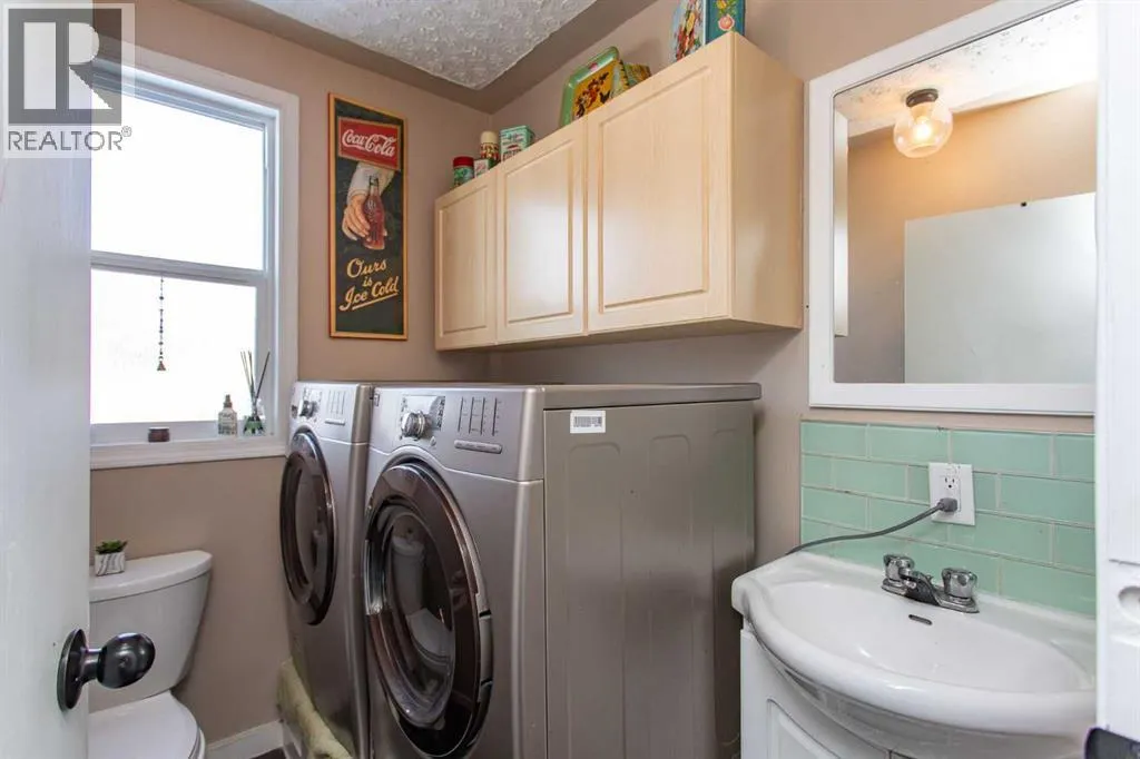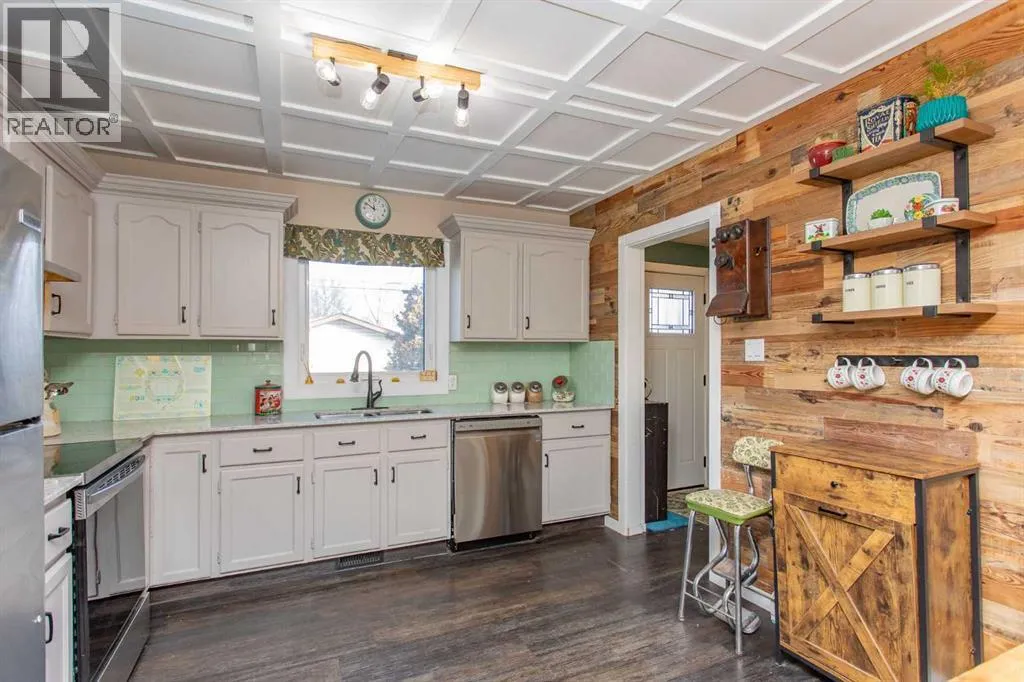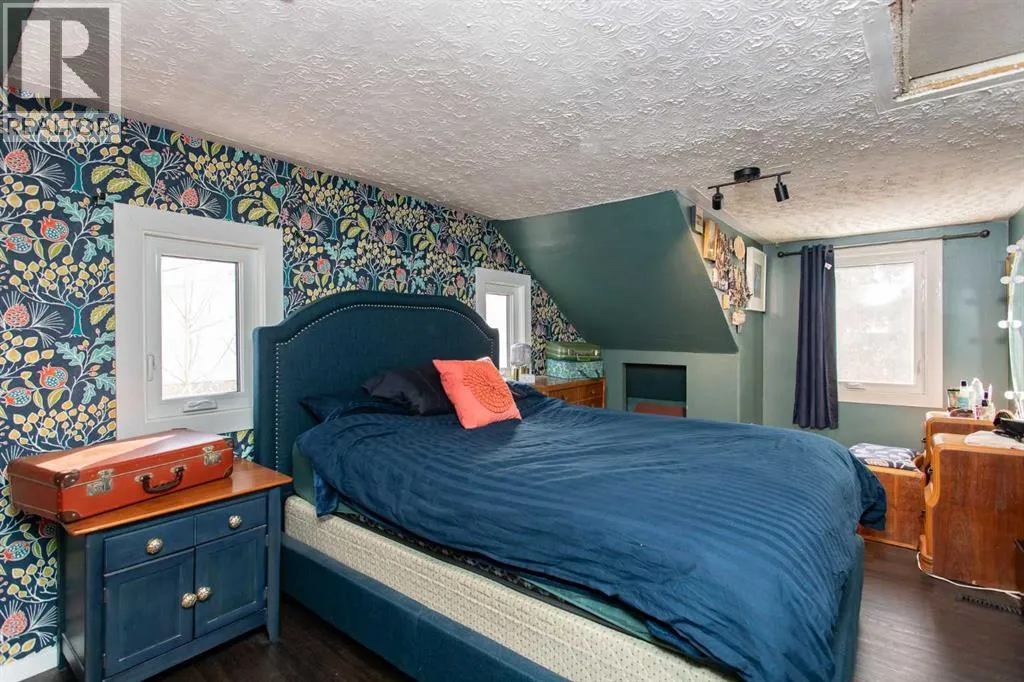 Welcome to this stylish two story home nestled in a sought after mature area known for its quiet streets and established trees. A stand out home with great curb appeal you can already picture yourself sitting on the large covered front porch savoring a morning coffee. Inside you will find a thoughtfully renovated interior where vintage, inspired details meet contemporary finishes. The low maintenance laminate flooring throughout the main floor is perfect for easy upkeep & durability plus a sculptured style ceiling enhances the additional details of the room. The open living room & dining combo is perfect for hosting guests keeping everyone in the social circle of things. Next you will find an updated kitchen which offers newer counter tops, stainless steel appliances plus cabinets have been resurfaced. Large butcher block style island comes with lots of extra drawers for your additional cook ware plus plenty of counter space for meal prep. Trendy wood feature wall plus ceiling trays give the home a unique feel. Convenient main floor laundry plus two piece powder room all in one. Custom storage shelves designed for music or video library. Upstairs offers a two large twin style Primary bedroom plan with dormer windows and storage cupboards for seasonal wear. The large main bath offers a deep soaker tub plus a separate shower. Windows have all been replaced in home, shingles have been updated, both furnace & Hot water tank recently replaced plus the electrical panel has been upgraded as well. Extensive landscaping has been done throughout the years giving the backyard its own private oasis. Plenty of flowering trees and low maintenance shrubs, huge two tier double deck plus fire pit area all make for an enjoyable spring to look forward to. Double detached garage is not only ideal for vehicle storage but could also substitute for someone wanting a hobby space. Home is also within close proximity to neighborhood schools, parks and local shopping amenities. (id:27476)