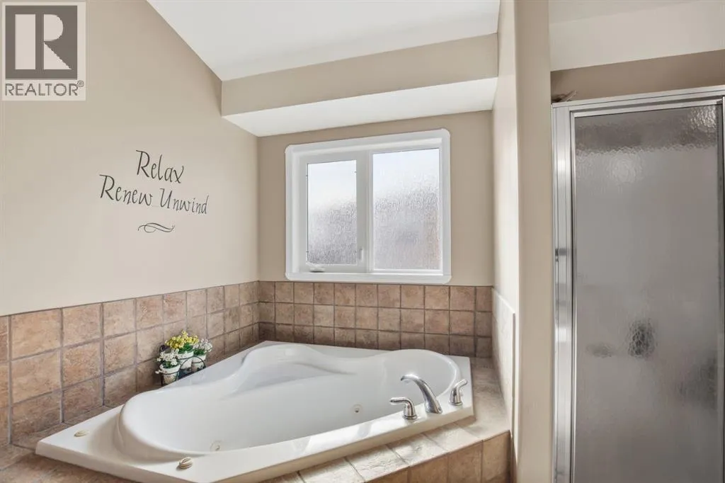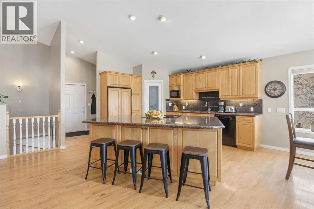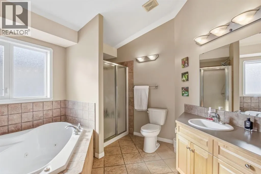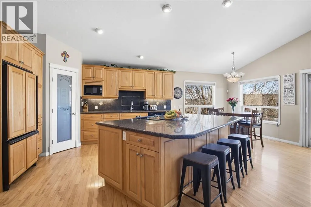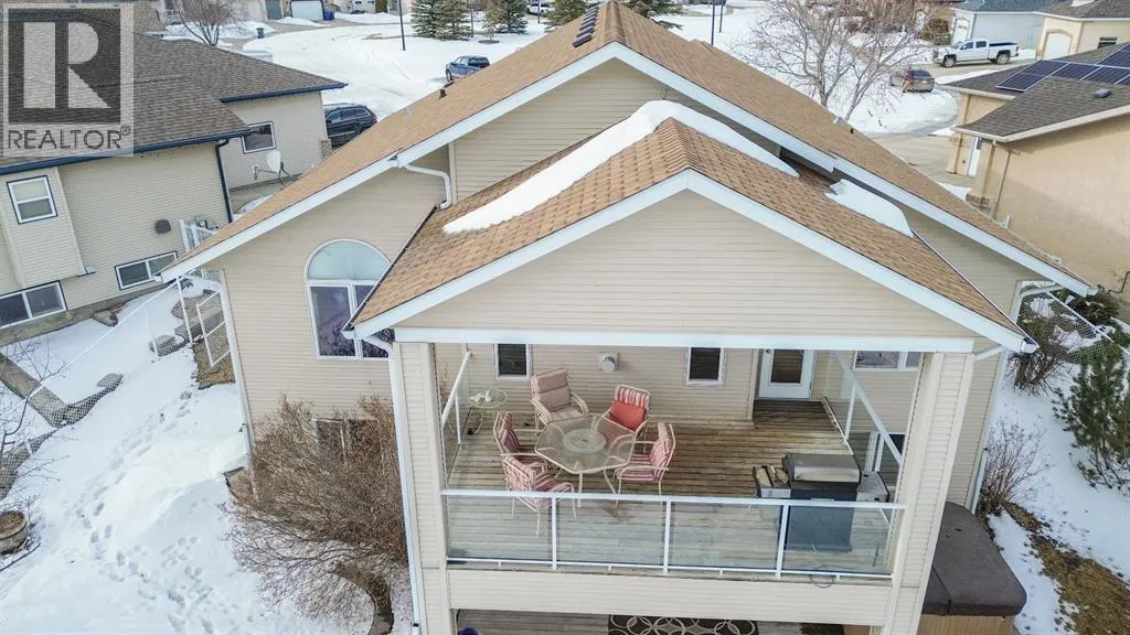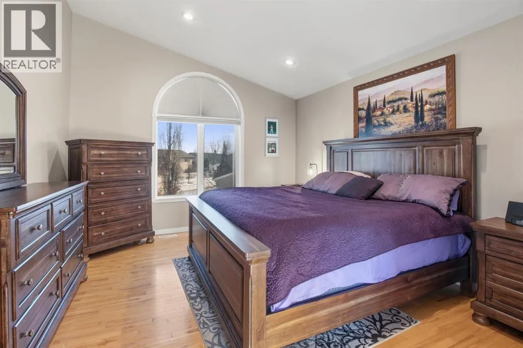 Located at the end of a quiet close in popular Lancaster Meadows sits this walkout bungalow. This beautiful home offers an open floor plan with the kitchen looking onto the dining area and great room, which is ideal for entertaining family & friends. The home stands out with its soaring vaulted ceilings + abundance of south facing windows allowing natural light to fill the space. The kitchen has extensive cabinetry and countertop space including the unique super sized island/eating bar. The dining area leads out to the large covered private deck with gas hookups. + a view to the gorgeous backyard. You'll appreciate the impressive rock faced gas fireplace. This quality home has hardwood flooring and granite kitchen countertops. The primary bedroom is large and can accomodate king sized furniture. It offers a luxurious ensuite with a jet tub and separate shower. There is an executive office or second bedroom located at the entrance of the home. Laundry is conveniently located on the main floor. The attached heated garage is oversized at 26 X 22 so will accommodate a full sized quad cab pickup truck. Off the garage is a 2 piece bathroom and a mud room area. The bright lower level leads out to the expansive 10,000 sq foot well manicured backyard with a large shed/hobby shop. Friends will relax in the hot tub and gather around the firepit area.There is a walking path behind making it easy to pop out for a stroll or run through the neighbourhood. The lower level has a family room, 2 bedrooms + a flex room that's ideal as a theatre room, gym, office or craft room. The home has a high end heating system run by a boiler + for your year round comfort there is central AC + in floor heating. This sought after southside location offers excellent walkability to several parks, schools, the Collicutt centre + shopping. (id:27476)