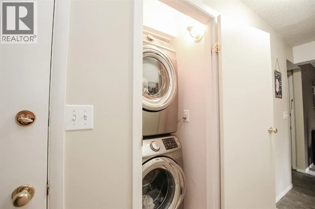 TOP FLOOR 2 BDRM, 1 BATH CONDO ~ WEST FACING BALCONY ~ CLOSE TO AMENITIES ~ The spacious living room offers sliding door access to a sunny west facing deck with new (2019) duradek finish ~ The dining space offers a west facing window that fills the space with natural light, and opens to the galley style kitchen with plenty of white cabinets including a wall pantry, ample counter space, tile backsplash and white appliances ~ The spacious primary bedroom is filled with natural light and can easily accommodate a king bed plus multiple pieces of furniture ~ Second bedroom is also a generous size ~ 4 piece bathroom conveniently located just off the bedrooms ~ In suite laundry with newer front load washer and dryer ~ In suite storage room ~ Assigned parking stall ~ Monthly condo fee is $381.32 and includes; insurance, exterior maintenance, landscaping and snow removal, garbage removal, reserve fund contributions, heat, sewer and water ~ Excellent location with easy access to the hospital, Red Deer Polytechnic, and downtown with tons of shopping and dining, schools, parks and walking trails all steps from your door. (id:27476)