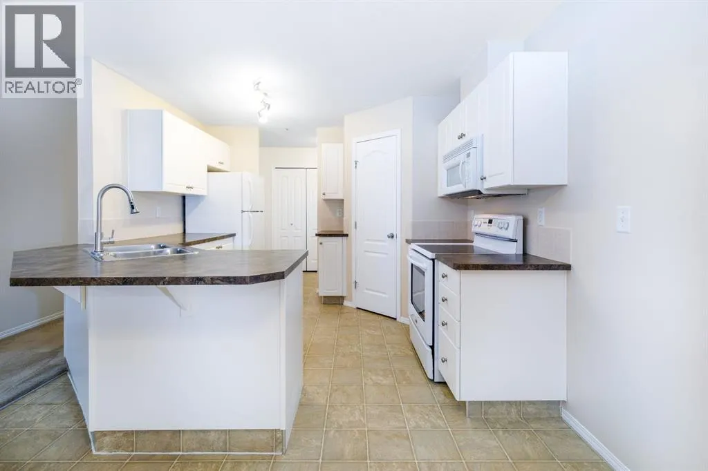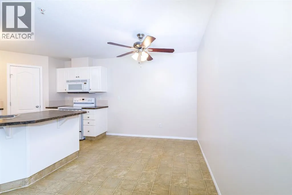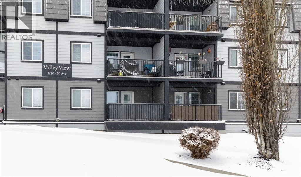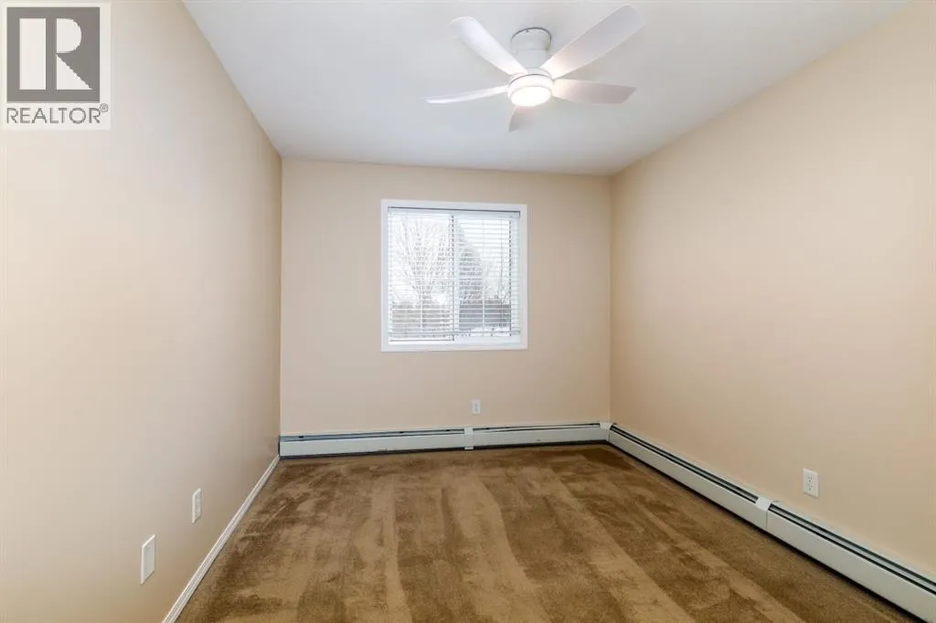 Welcome to this well-maintained, main floor 2-bedroom, 1-bath condo ideally located just one block from the hospital and within easy walking distance to downtown and many everyday amenities. This move-in ready home has been freshly painted and features updated light fixtures and ceiling fans throughout. The bright, functional kitchen showcases beautiful white cabinetry, ample counter space, a convenient breakfast bar, large pantry, and matching all-white appliances. The spacious dining area flows nicely into the generous living room, where you can relax beside the cozy gas fireplace the door and window have been replaced to allow for a portable A/C as well! Step outside to your private east-facing deck â the perfect spot to enjoy your morning coffee and take in the lovely view. Both bedrooms are generously sized, with a well-appointed 4-piece bathroom nearby. Youâll also appreciate the convenience of in-suite laundry with a stackable washer/dryer and additional storage space. Small pets are welcome! Two assigned outdoor parking stalls (#10 & #11) are included with power. Condo fees cover most utilities â heat, water, sewer, garbage, and recycling â so you only pay for power. With Red Deer Hospital currently under a 1.8 billion dollar expansion over the next several years, this your opportunity to get in early on an excellent investment. Don't wait to take advantage of this amazing deal! Book your showing today! (id:27476)
