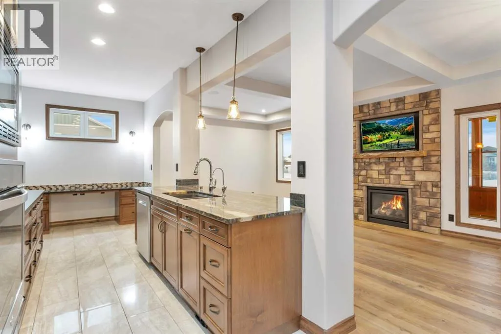 Discover this exquisite Pegasus Built 4-bedroom, 4-bath home in Vanier East, perfectly positioned along park space with walking paths, mature trees, and playgrounds just steps from your backyard. The main floor features a spacious tiled foyer, hardwood floors, a gas fireplace, and a high-end kitchen with floor-to-ceiling maple cabinets, granite counters, a large island, and premium appliances. Enjoy year-round living in the heated, screened-in porch overlooking the green space.Upstairs offers three generous bedrooms, a 5-piece bath with dual sinks, upper laundry, and a luxury primary suite with a custom walk-in closet and a spa ensuite featuring heated floors, double vanity, a soaker tub, and a large custom tiled shower.The fully finished basement includes a large rec room, full bath, 4th bedroom, and a custom wet bar with a live-edge wood countertop. Additional features include: central A/C, in-floor heat (ensuite, basement, garage), an oversized heated garage, mudroom with built-ins, second laundry, smart home systems, HEPA filtration, and low-maintenance landscaping (id:27476)