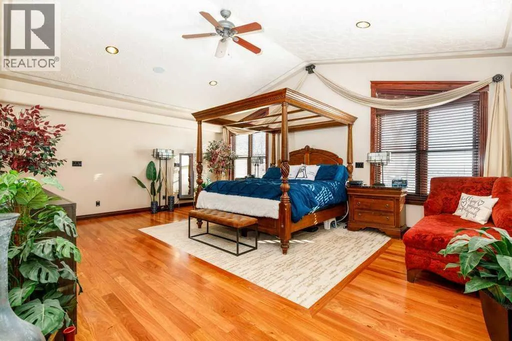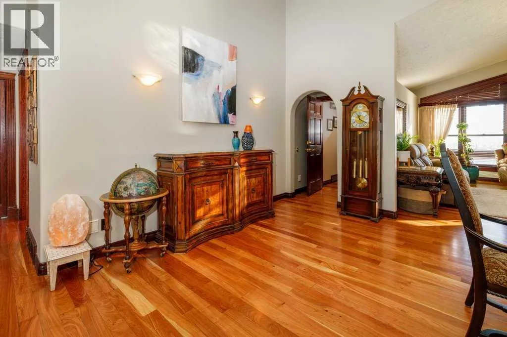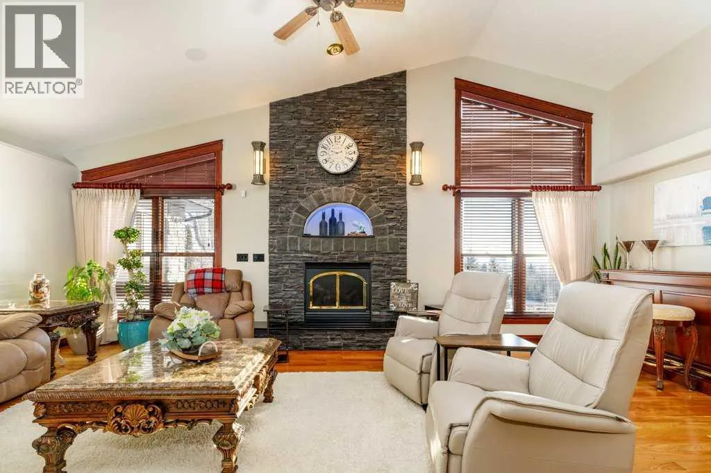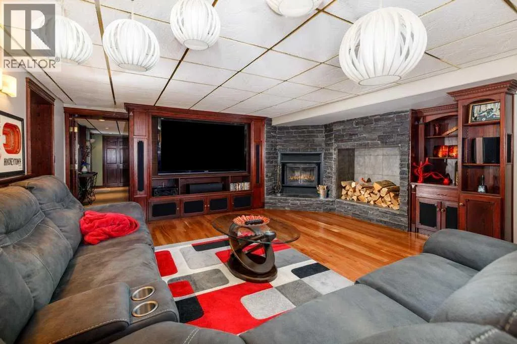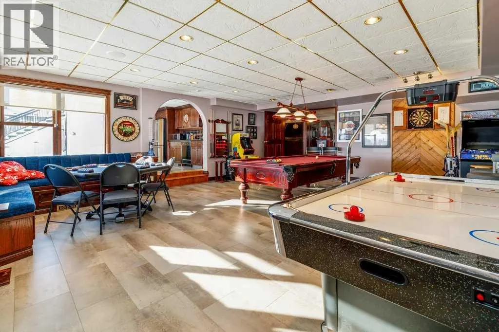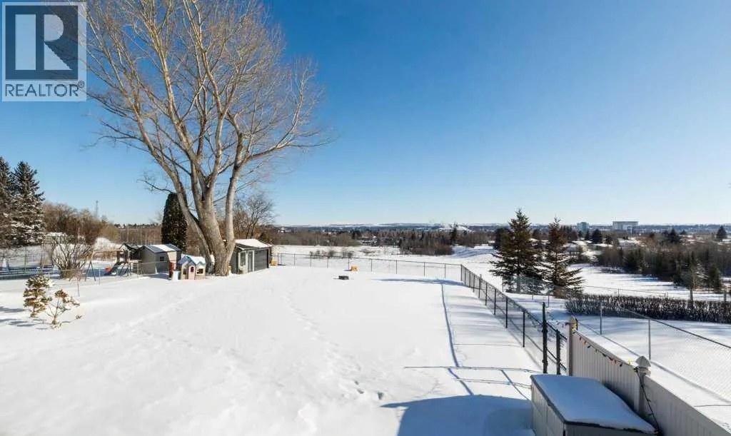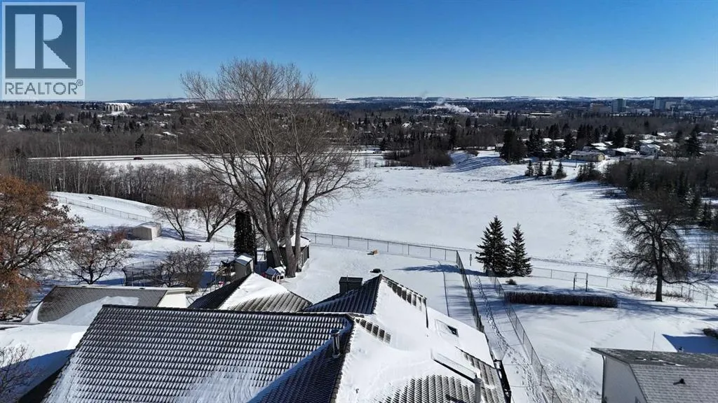 Stunning Executive Bungalow in Oriole Park â Unmatched Views & Exceptional Craftsmanship.Welcome to this extraordinary executive walkout bungalow on a highly desirable street in Oriole Park, offering an impressive 2,593 sqft on the main level and 2,290 sqft on the fully finished walkout basement. Perfectly positioned on a rare 0.36 acre lot backing onto Great Chief Park and just steps from Bower Ponds and the Red Deer River, this property delivers a lifestyle and location that are truly second to none.A grand entry welcomes you inside, where a striking tempered glass feature wall opens to the main living space. Soaring 17 foot vaulted ceilings and near floor-to-ceiling windows flood the home with natural light while capturing breathtaking park and city views â including stunning nightscapes of Red Deer.Custom finishes elevate every space, including imported rosewood flooring complemented by rich maple cabinetry, doors, and trim. The chefâs kitchen is a dream, offering extensive cabinetry, generous counter space, and a large central island designed for gathering and entertaining. The heated sunroom, complete with natural gas cooktop, additional workspace, and screened windows, overlooks the massive fenced backyard.The main level features a spacious primary bedroom with a large walk-in closet and well-appointed ensuite, a second bedroom with walk-in closet, a full guest bath, and a convenient main floor laundry and mudroom that could easily function as a chefâs pantry.The walkout basement is equally impressive, filled with natural light and designed for entertaining. Enjoy a large family room with wood-burning fireplace wired for surround sound, a generous games room with pool table, and a fully equipped wet bar with doors leading to the lower deck and backyard. An indoor hot tub room with backyard access, a 3-piece bathroom with a steam shower, two additional bedrooms (one with direct yard access), and a den/office with built in Murphy bed complete this incredib le lower level.The expansive backyard offers endless possibilities â room for a pool, play areas, gardens, and more. A large storage shed with garage door provides ample space for seasonal equipment and recreational gear. Relax under the stars by the firepit, enjoy a game of horseshoes, and watch wildlife pass peacefully beyond your fence.Additional highlights include whole home wired for surround sound, an intercom system, central A/C, extensive custom millwork throughout, remote controlled blinds and skylights, heated garage, underground sprinklers, custom stamped concrete driveways, patios and walkways, concrete curbed gardens, low maintenance landscaping, fully fenced back yard with gated access to Great Chief Park and walking trails.A rare opportunity to own one of Red Deerâs most distinctive homes in an irreplaceable setting. Luxury, privacy, space, and views â this home truly has it all. (id:27476)