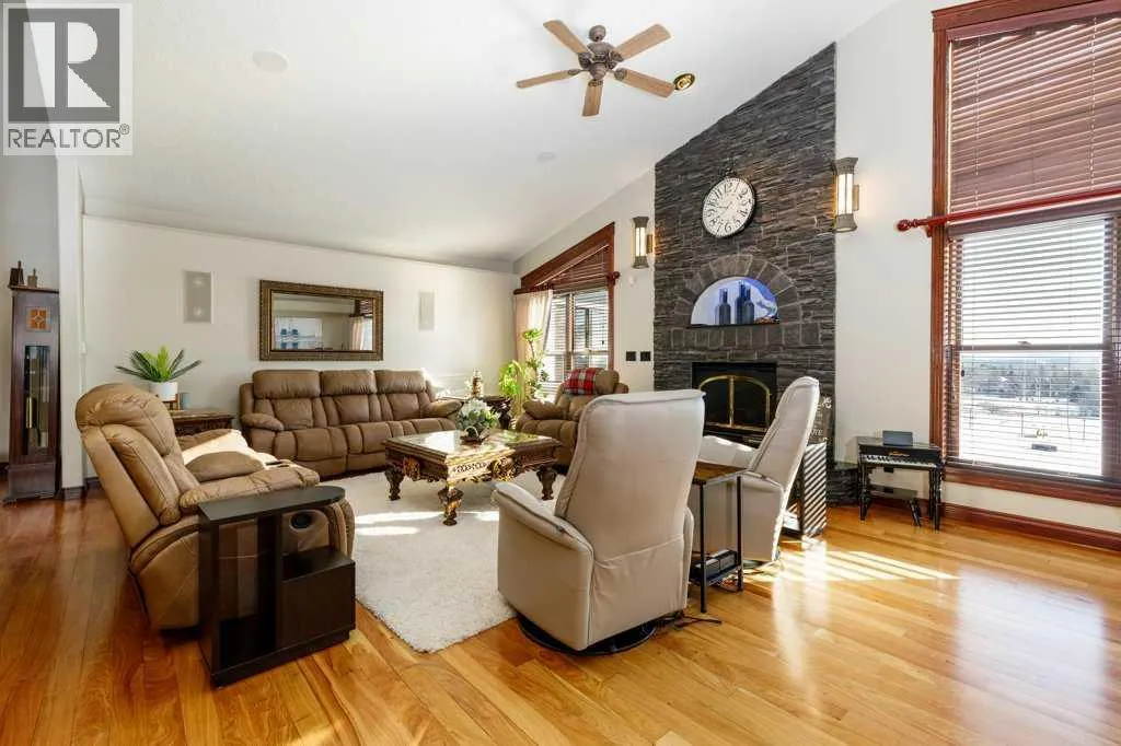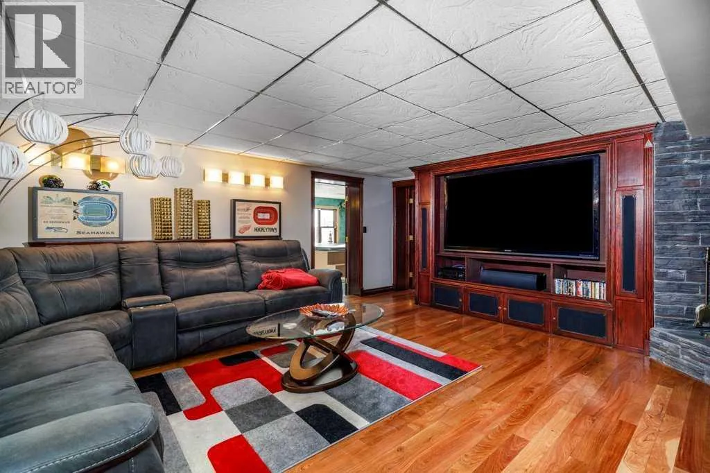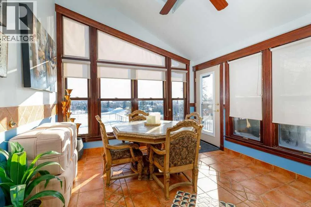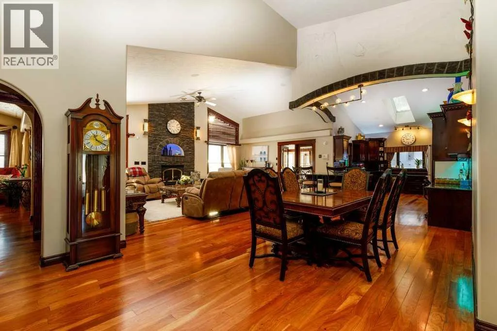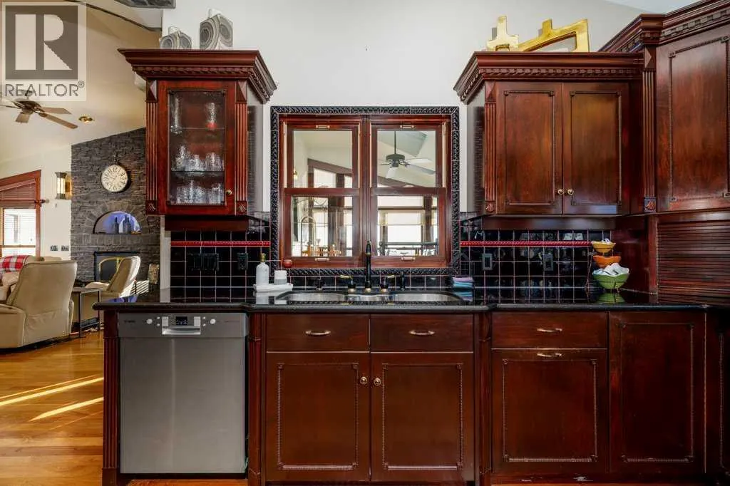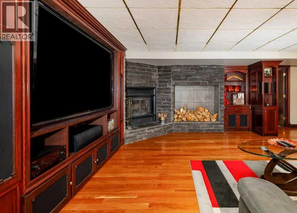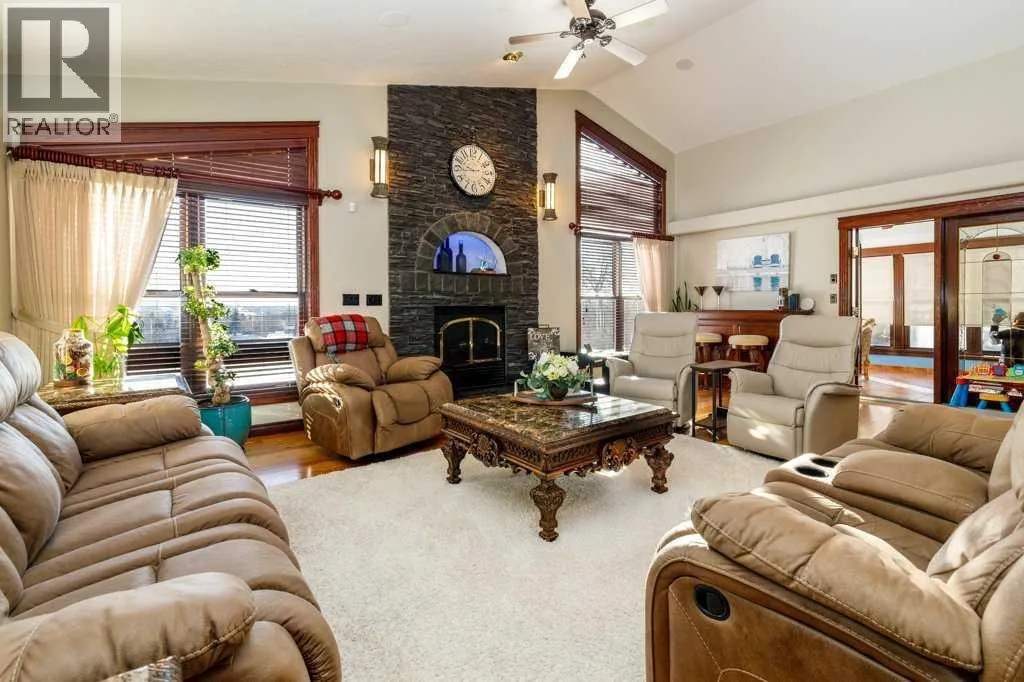 Stunning Executive Bungalow in Oriole Park â Unmatched Views & Exceptional Craftsmanship.Welcome to this extraordinary executive walkout bungalow on a highly desirable street in Oriole Park, offering an impressive 2,593 sqft on the main level and 2,290 sqft on the fully finished walkout basement. Perfectly positioned on a rare 0.36 acre lot backing onto Great Chief Park and just steps from Bower Ponds and the Red Deer River, this property delivers a lifestyle and location that are truly second to none.A grand entry welcomes you inside, where a striking tempered glass feature wall opens to the main living space. Soaring 17 foot vaulted ceilings and near floor-to-ceiling windows flood the home with natural light while capturing breathtaking park and city views â including stunning nightscapes of Red Deer.Custom finishes elevate every space, including imported rosewood flooring complemented by rich maple cabinetry, doors, and trim. The chefâs kitchen is a dream, offering extensive cabinetry, generous counter space, and a large central island designed for gathering and entertaining. The heated sunroom, complete with natural gas cooktop, additional workspace, and screened windows, overlooks the massive fenced backyard.The main level features a spacious primary bedroom with a large walk-in closet and well-appointed ensuite, a second bedroom with walk-in closet, a full guest bath, and a convenient main floor laundry and mudroom that could easily function as a chefâs pantry.The walkout basement is equally impressive, filled with natural light and designed for entertaining. Enjoy a large family room with wood-burning fireplace wired for surround sound, a generous games room with pool table, and a fully equipped wet bar with doors leading to the lower deck and backyard. An indoor hot tub room with backyard access, a 3-piece bathroom with a steam shower, two additional bedrooms (one with direct yard access), and a den/office with built in Murphy bed complete this incredib le lower level.The expansive backyard offers endless possibilities â room for a pool, play areas, gardens, and more. A large storage shed with garage door provides ample space for seasonal equipment and recreational gear. Relax under the stars by the firepit, enjoy a game of horseshoes, and watch wildlife pass peacefully beyond your fence.Additional highlights include whole home wired for surround sound, an intercom system, central A/C, extensive custom millwork throughout, remote controlled blinds and skylights, heated garage, underground sprinklers, custom stamped concrete driveways, patios and walkways, concrete curbed gardens, low maintenance landscaping, fully fenced back yard with gated access to Great Chief Park and walking trails.A rare opportunity to own one of Red Deerâs most distinctive homes in an irreplaceable setting. Luxury, privacy, space, and views â this home truly has it all. (id:27476)