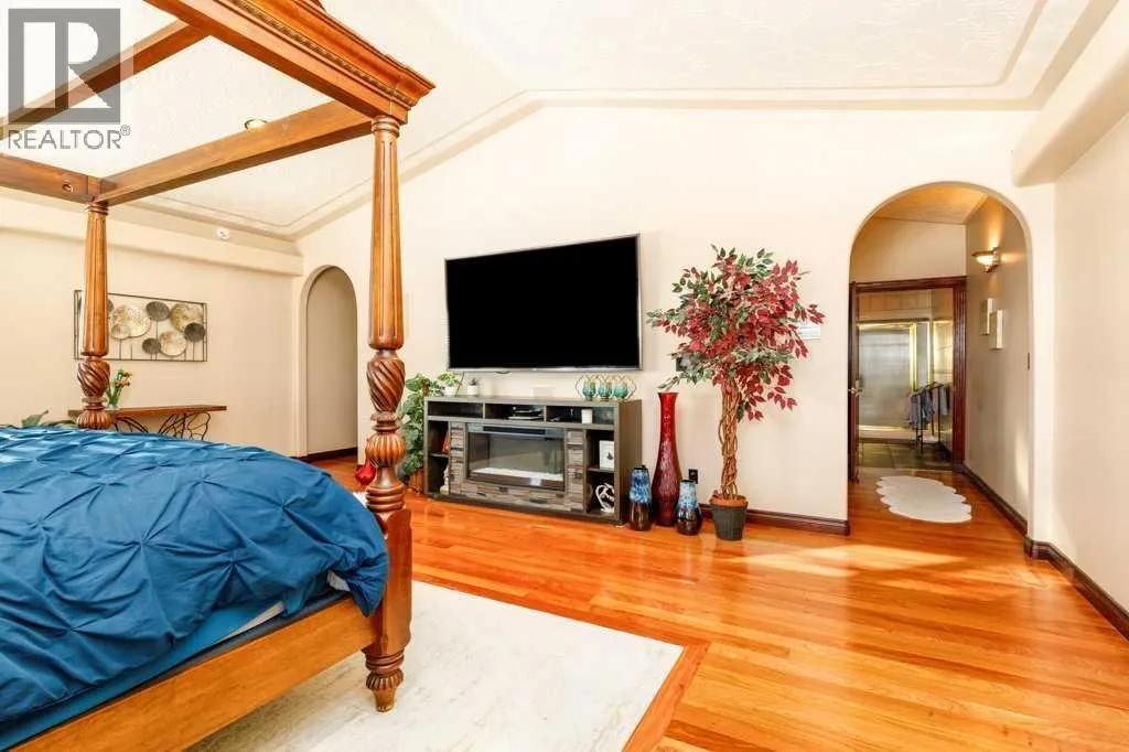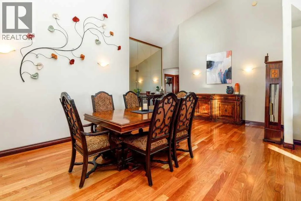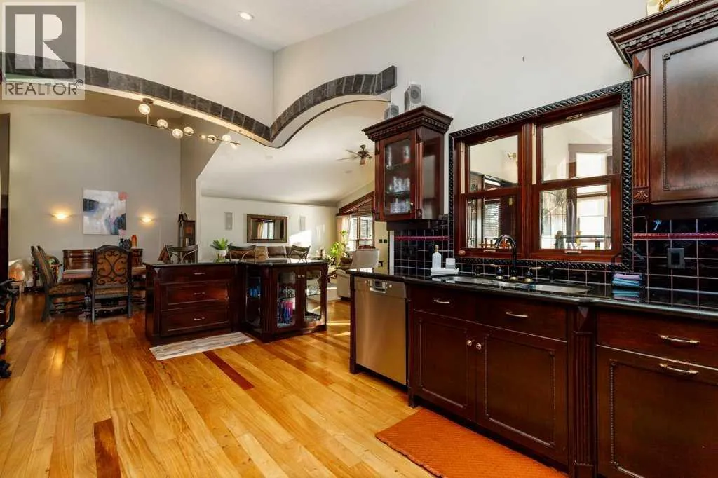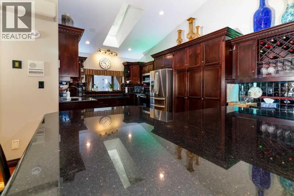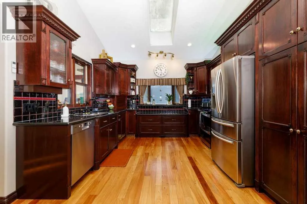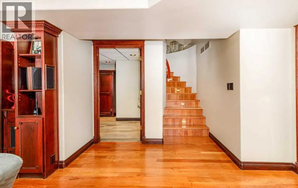 Stunning Executive Bungalow in Oriole Park â Unmatched Views & Exceptional Craftsmanship.Welcome to this extraordinary executive walkout bungalow on a highly desirable street in Oriole Park, offering an impressive 2,593 sqft on the main level and 2,290 sqft on the fully finished walkout basement. Perfectly positioned on a rare 0.36 acre lot backing onto Great Chief Park and just steps from Bower Ponds and the Red Deer River, this property delivers a lifestyle and location that are truly second to none.A grand entry welcomes you inside, where a striking tempered glass feature wall opens to the main living space. Soaring 17 foot vaulted ceilings and near floor-to-ceiling windows flood the home with natural light while capturing breathtaking park and city views â including stunning nightscapes of Red Deer.Custom finishes elevate every space, including imported rosewood flooring complemented by rich maple cabinetry, doors, and trim. The chefâs kitchen is a dream, offering extensive cabinetry, generous counter space, and a large central island designed for gathering and entertaining. The heated sunroom, complete with natural gas cooktop, additional workspace, and screened windows, overlooks the massive fenced backyard.The main level features a spacious primary bedroom with a large walk-in closet and well-appointed ensuite, a second bedroom with walk-in closet, a full guest bath, and a convenient main floor laundry and mudroom that could easily function as a chefâs pantry.The walkout basement is equally impressive, filled with natural light and designed for entertaining. Enjoy a large family room with wood-burning fireplace wired for surround sound, a generous games room with pool table, and a fully equipped wet bar with doors leading to the lower deck and backyard. An indoor hot tub room with backyard access, a 3-piece bathroom with a steam shower, two additional bedrooms (one with direct yard access), and a den/office with built in Murphy bed complete this incredib le lower level.The expansive backyard offers endless possibilities â room for a pool, play areas, gardens, and more. A large storage shed with garage door provides ample space for seasonal equipment and recreational gear. Relax under the stars by the firepit, enjoy a game of horseshoes, and watch wildlife pass peacefully beyond your fence.Additional highlights include whole home wired for surround sound, an intercom system, central A/C, extensive custom millwork throughout, remote controlled blinds and skylights, heated garage, underground sprinklers, custom stamped concrete driveways, patios and walkways, concrete curbed gardens, low maintenance landscaping, fully fenced back yard with gated access to Great Chief Park and walking trails.A rare opportunity to own one of Red Deerâs most distinctive homes in an irreplaceable setting. Luxury, privacy, space, and views â this home truly has it all. (id:27476)