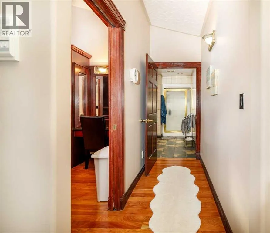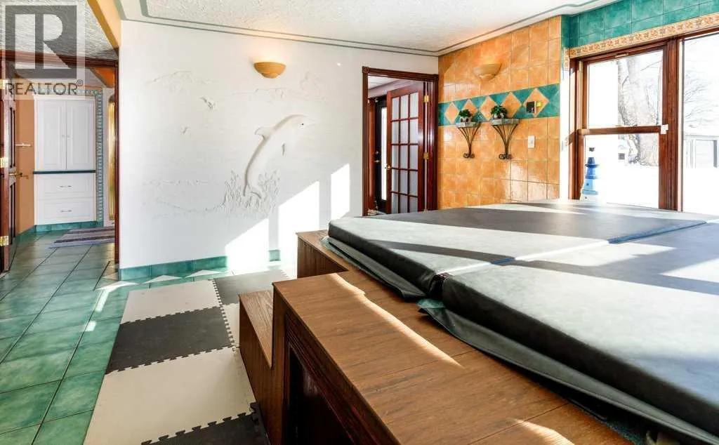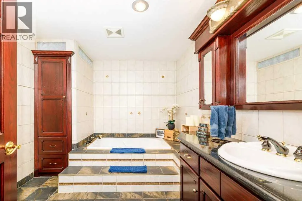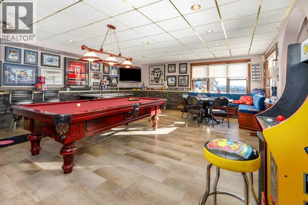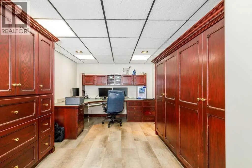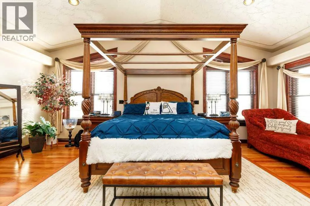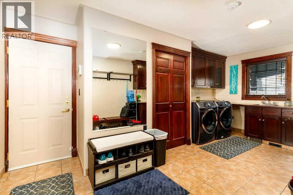 Stunning Executive Bungalow in Oriole Park â Unmatched Views & Exceptional Craftsmanship.Welcome to this extraordinary executive walkout bungalow on a highly desirable street in Oriole Park, offering an impressive 2,593 sqft on the main level and 2,290 sqft on the fully finished walkout basement. Perfectly positioned on a rare 0.36 acre lot backing onto Great Chief Park and just steps from Bower Ponds and the Red Deer River, this property delivers a lifestyle and location that are truly second to none.A grand entry welcomes you inside, where a striking tempered glass feature wall opens to the main living space. Soaring 17 foot vaulted ceilings and near floor-to-ceiling windows flood the home with natural light while capturing breathtaking park and city views â including stunning nightscapes of Red Deer.Custom finishes elevate every space, including imported rosewood flooring complemented by rich maple cabinetry, doors, and trim. The chefâs kitchen is a dream, offering extensive cabinetry, generous counter space, and a large central island designed for gathering and entertaining. The heated sunroom, complete with natural gas cooktop, additional workspace, and screened windows, overlooks the massive fenced backyard.The main level features a spacious primary bedroom with a large walk-in closet and well-appointed ensuite, a second bedroom with walk-in closet, a full guest bath, and a convenient main floor laundry and mudroom that could easily function as a chefâs pantry.The walkout basement is equally impressive, filled with natural light and designed for entertaining. Enjoy a large family room with wood-burning fireplace wired for surround sound, a generous games room with pool table, and a fully equipped wet bar with doors leading to the lower deck and backyard. An indoor hot tub room with backyard access, a 3-piece bathroom with a steam shower, two additional bedrooms (one with direct yard access), and a den/office with built in Murphy bed complete this incredib le lower level.The expansive backyard offers endless possibilities â room for a pool, play areas, gardens, and more. A large storage shed with garage door provides ample space for seasonal equipment and recreational gear. Relax under the stars by the firepit, enjoy a game of horseshoes, and watch wildlife pass peacefully beyond your fence.Additional highlights include whole home wired for surround sound, an intercom system, central A/C, extensive custom millwork throughout, remote controlled blinds and skylights, heated garage, underground sprinklers, custom stamped concrete driveways, patios and walkways, concrete curbed gardens, low maintenance landscaping, fully fenced back yard with gated access to Great Chief Park and walking trails.A rare opportunity to own one of Red Deerâs most distinctive homes in an irreplaceable setting. Luxury, privacy, space, and views â this home truly has it all. (id:27476)