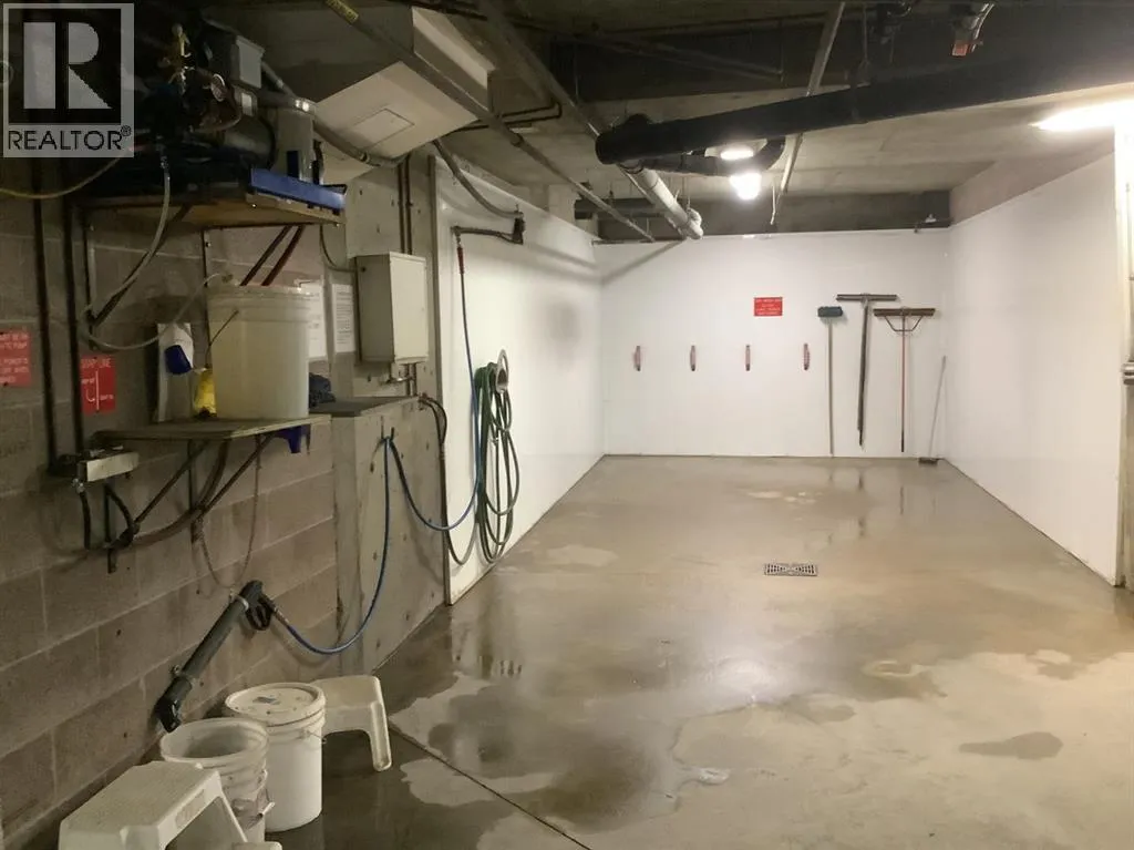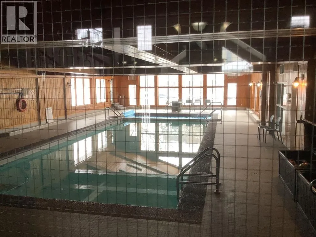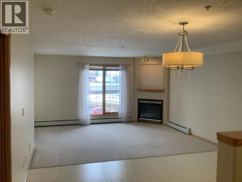 This unique setup has a 3 piece bathroom off the den, which could easily be a 2nd bedroom. The living room is spacious with a warm gas fireplace in the corner and plenty of natural light. The kitchen is open to the living room and dining area creating a very friendly atmosphere for entertaining. A big plus is the central a.c. for the warmer summer days. Enjoy the space in the primary bedroom including a large double closet and windows to light up your mornings. Laundry is a snap with your own in suite washer and dryer and room for a freezer plus storage all in 1 room. Move outside to the oversized west facing deck for your morning coffee with a storage room and a gas hookup for a bbq. This building has all the amenities needed including a heated pool and a banquet room complete with kitchen facilities to host large private functions. You'll enjoy the evenings in the party room playing cards and other games with your new friends, the movie room, the heated pool, hot tub, pool tables and shuffleboard table. Head downstairs to the fully equipped work shop, heated parking, a wash bay, and your own private storage room. Another big bonus is the rental suites available for your overnight company at a nominal fee. Shopping is just across the street at Freshco. Please note that cable, internet, heat, water and sewer are included in condo fees. There is as much or as little you want to do here. Come enjoy the relaxed life at Sierra Grand. (id:27476)