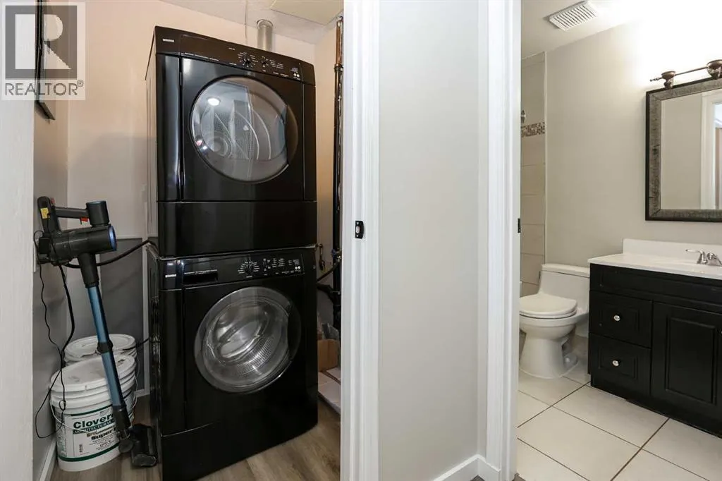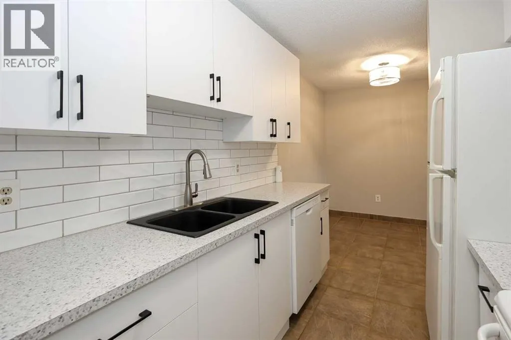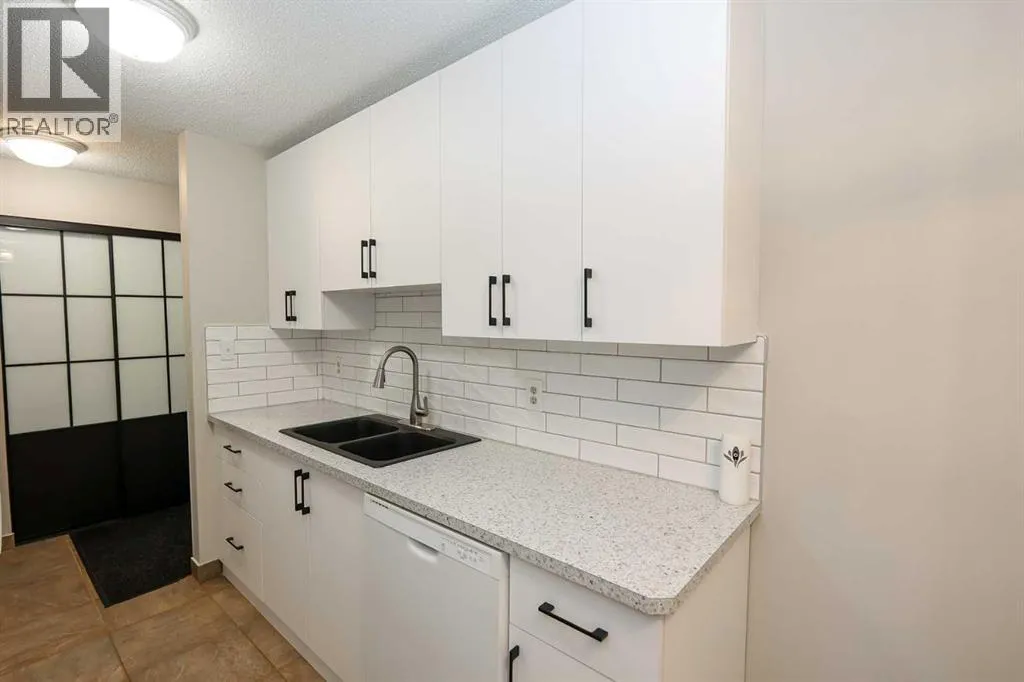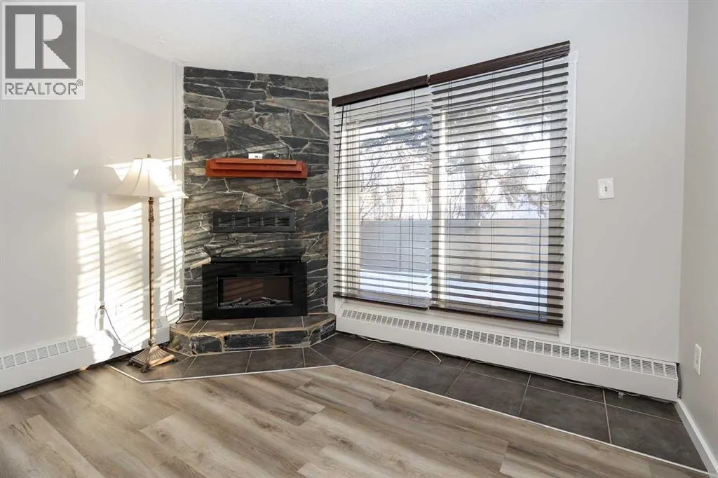 IMMEDIATE POSSESSION AVAILABLE ~ RENOVATED THROUGHOUT & MOVE IN READY ~ 2 BEDROOM, 1 BATHROOM MAIN FLOOR UNIT ~ LOW MAINTENANCE, ADULT LIVING (18+) ~ Recent updates include; new vinyl plank flooring throughout , neutral paint throughout, updated lighting, closet doors, hardware, kitchen cabinets, countertops, and backsplash ~ The living room features a corner fireplace with floor to ceiling stone, a raised hearth, and mantel, plus sliding patio doors to the covered patio ~ Outside the patio has plenty of space for outdoor furniture and overlooks mature trees with no neighbours behind ~ The dining space opens to the galley style kitchen with white shaker style cabinets, textured tile backsplash, granite composite sink with an updated faucet, and ample counter space ~ Two bedrooms are both a generous size and offer plenty of closet space ~ In unit stackable laundry is conveniently located next to the 4 piece bathroom that has tile floors and a soaker tub ~ Monthly condo fees are $492.62/month and include; Common area maintenance, heat, insurance, maintenance grounds, parking, professional management, reserve fund contributions, sewer, snow removal, trash, and water offering a low maintenance lifestyle ~ 1 assigned powered parking stall with ample visitor parking available ~ This well managed, quiet adult condo is located steps to wetlands and walking trails that connect to Red Deer's extensive Mackenzie trail system, with multiple schools, parks, playgrounds, transit and shopping all close by. (id:27476)