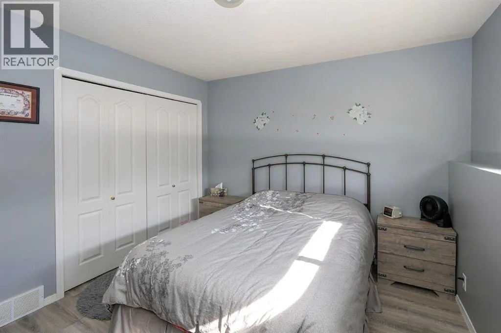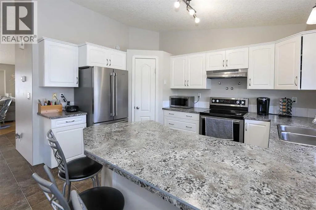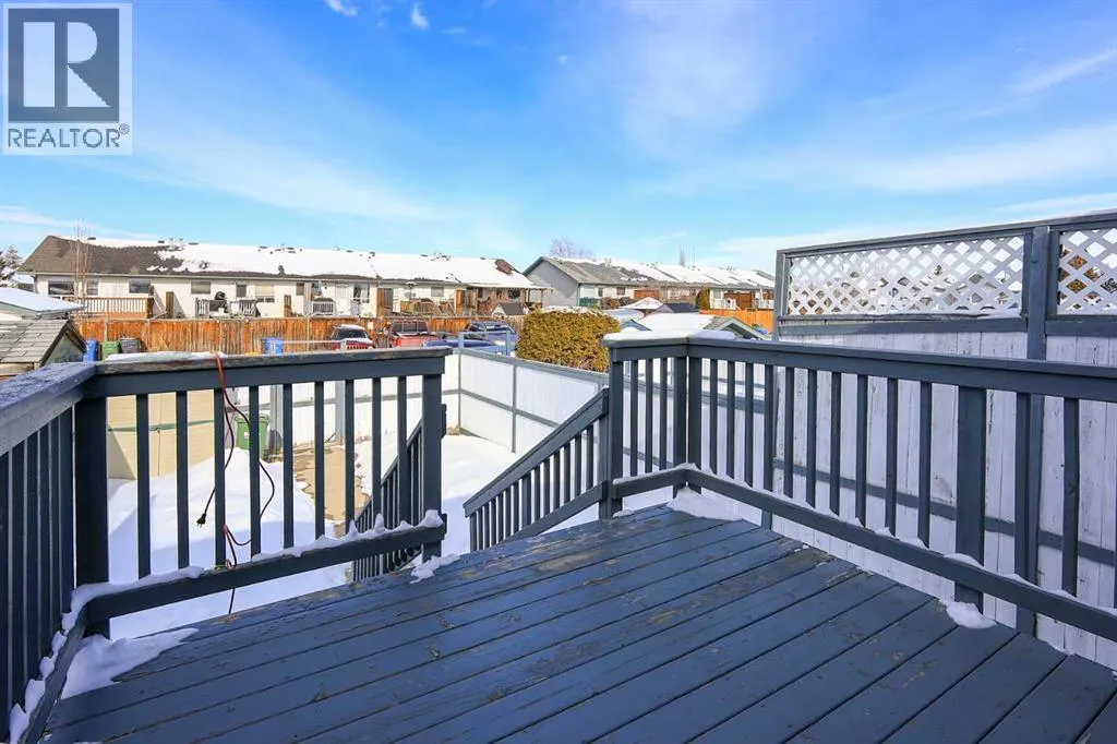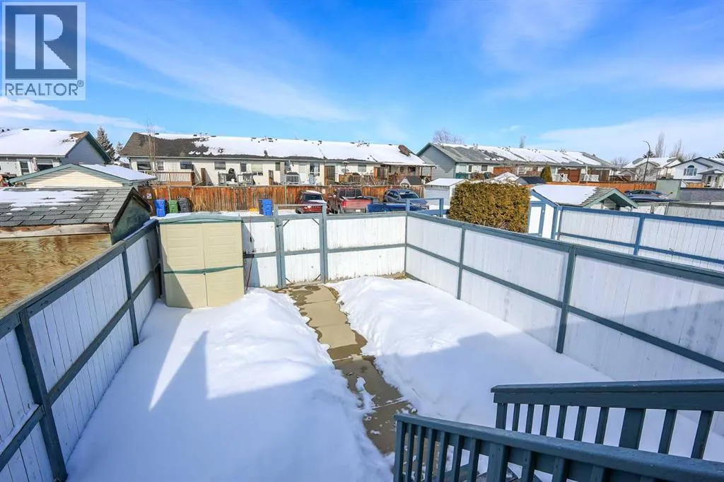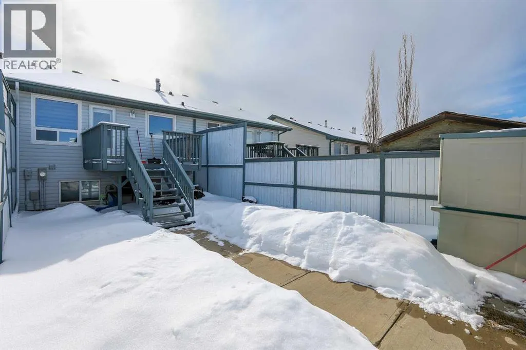 FULLY DEVELOPED 3 BEDROOM, 2 BATHROOM BI-LEVEL TOWNHOME ~ RENOVATED & LOADED WITH UPGRADES ~ NO CONDO FEES ~ Covered front entry welcomes you and leads to a sun filled foyer with high ceilings ~ Recent updates include; Appliances, central air conditioner, hot water tank, furnace, windows, flooring, paint, light fixtures, blinds and shingles ~ The living room features soaring vaulted ceilings and has a large south facing picture window that allows for plenty of natural light ~ The stylish kitchen offers a functional layout with ample white cabinets, ample counter space including an eating bar, walk in corner pantry, window above the sink and upgraded stainless steel appliances ~ Easily host large gatherings in the dining room with another large picture window and a garden door that leads to the deck and backyard ~ 2 piece main floor bathroom ~ Spacious laundry room with high ceilings, built in shelving and a linen closet ~ The primary bedroom can easily accommodate a king size bed, has ample closet space and is conveniently located next to the 4 piece bathroom with an oversized vanity and built-in linen shelving ~ 2 additional bedrooms are both a generous size with ample closet space ~ Other great features include; operational in-floor heat, central vacuum, move in ready ~ The backyard is landscaped, has a garden shed plus space for storage below the deck and is fully fenced with back alley access ~ Rear parking pad has space for at least two vehicles ~ Located steps to large park with a playground (future school site), easy access to parks, walking trails, schools, and all other amenities ~ Pride of ownership is evident in this well cared for, move in ready home! (id:27476)