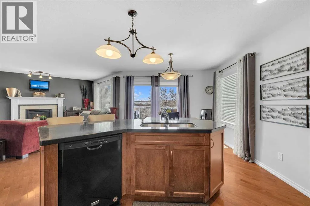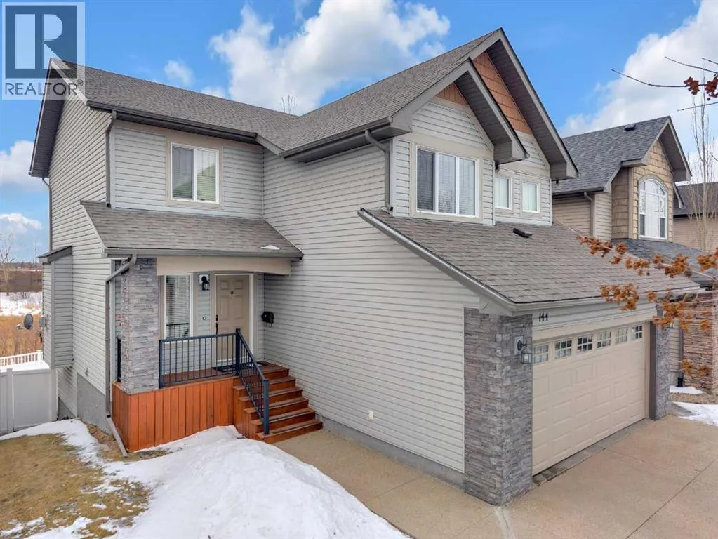 Take a look at this magnificent walkout two-storey home backing onto a pond and scenic walking trails, with Heritage Ranch just minutes away offering even more outdoor trails to explore. Conveniently located near Red Deer Polytechnic, this home offers the perfect blend of nature, comfort, and accessibility.The main floor features an open-concept design with a spacious living room showcasing hardwood flooring, a cozy gas fireplace, and a large window overlooking the backyard and pond. The kitchen is beautifully finished with ceiling-height wood cabinetry, granite countertops, a corner pantry, and a bright dining area with garden doors leading to the upper deckâperfect for enjoying the peaceful views. Completing the main level is a laundry room and convenient 2-piece bathroom.Upstairs youâll find a huge bonus room, three bedrooms, and two full bathrooms. The primary suite features a walk-in closet and a 4-piece ensuite with a large soaker tub, creating a relaxing retreat.The fully finished walkout basement offers additional living space with a family room featuring a bar, a bedroom with a large walk-in closet, and a 3-piece bathroom. The family room also provides direct access to the lower concrete patio and backyard.The vinyl-fenced yard includes a firepit area, making it perfect for outdoor entertaining.Additional features include central air conditioning, a water softener, exposed aggregate driveway, functional in-floor heating in the basement, a new high-efficiency furnace (2025), and new shingles (2025). (id:27476)