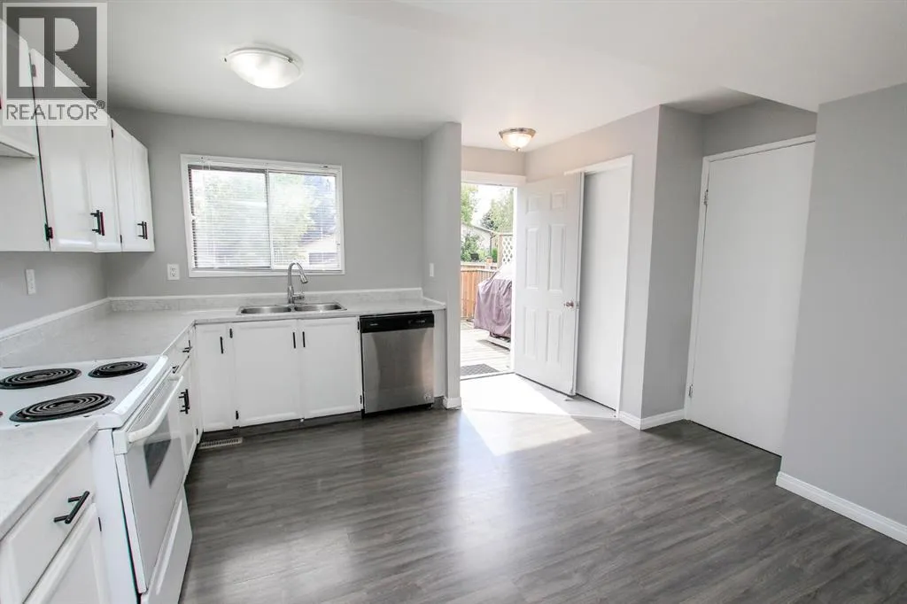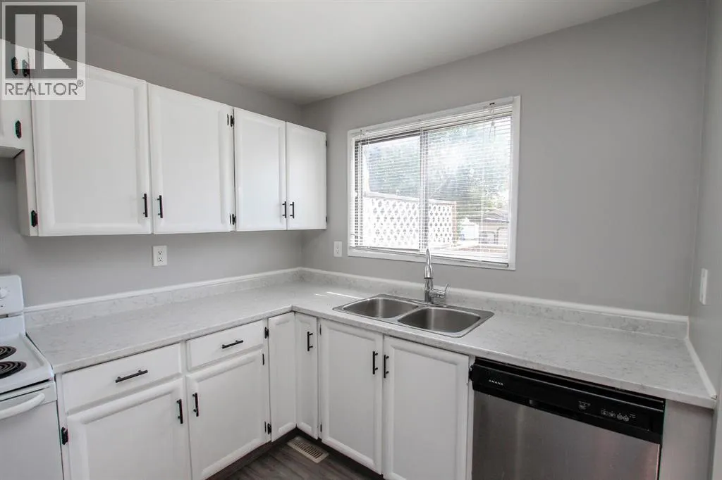 3 BDRM, 2 BATH 2-STOREY TOWNHOME ~ LOCATED IN A QUIET CLOSE IN MORRISROE ~ FULLY FENCED BACKYARD ~ NO CONDO FEES ~ Mature front landscaping welcomes you ~ The living room features a large picture window overlooking the front yard ~ The eat in kitchen offers a functional layout with plenty of white cabinets, ample counter space, window above the sink, wall pantry, space for a dining table plus access to the south east facing deck and backyard ~ 2 piece main floor bathroom ~ The upper level offers a generous size primary bedroom that can easily accommodate a king size bed and multiple pieces of furniture, 2 additional bedrooms and a 4 piece ensuite with an oversized vanity ~ The basement is currently unfinished with room for a family room with plenty of storage space left over ~ Recent updates include; new windows, newer washing machine ~ The backyard is landscaped, has a garden shed and is fully fenced with access to rear parking and the back alley ~ Located close to shopping, Collicut Centre, multiple schools, parks and playgrounds ~ (id:27476)