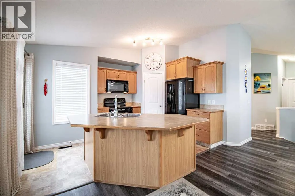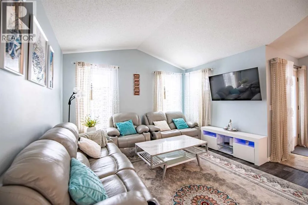 Welcome to this beautifully updated home offering a bright open concept layout, vaulted ceilings and a fantastic location close to parks, schools, walking trails and shopping in Red Deer. The covered front entry welcomes you and leads into a generous sized foyer that immediately creates a warm first impression for guests and family alike. The main floor features a spacious open concept design enhanced by soaring vaulted ceilings that provide an airy and inviting atmosphere. The living room is filled with natural light from a large picture window overlooking the backyard and deck, creating a comfortable space to relax or entertain. The living area flows seamlessly into the dining space which easily accommodates a large table for family dinners and gatherings. The kitchen offers a very functional layout with plenty of beautiful oak cabinetry, ample counter space and a large island complete with a lowered eating bar that is perfect for casual meals, morning coffee or entertaining guests. Additional features include a full tile backsplash, corner pantry for extra storage and garden door access leading to the large partially covered deck, making outdoor entertaining convenient and enjoyable. The primary bedroom features large south facing windows that allow an abundance of natural light and offers plenty of space for a king sized bed along with additional bedroom furniture. A second main floor bedroom is conveniently located next to the four piece bathroom, making it ideal for children, guests or a home office. The fully finished basement provides excellent additional living space and features high ceilings and large above grade windows that bring in natural light. The basement offers an open floor plan layout that includes a spacious family room, an additional bedroom and a beautifully finished bathroom complete with a modern glass shower enclosure. The laundry area is also located on the lower level and there is still plenty of room for storage. Since the current owner moved in, the home has seen several updates including new flooring and fresh paint, giving the home a modern and move-in ready feel. The backyard is landscaped & fully fenced, making it ideal for children and pets. 3-4 Parking spaces at the back. There is enclosed storage located under the deck & access to a massive parking pad that provides plenty of room for vehicles, trailers or even an RV, all with convenient access from the back alley. This property is ideally located close to parks, playgrounds, walking & biking trails, public transit, schools, the YMCA and numerous shopping amenities. This charming and manageable home is perfect for first-time buyers, a single professional or anyone looking to keep life simple and affordable. The size of the home - smaller frame - makes it easy to maintain while helping keep monthly utility bills and property taxes manageable, making it a great opportunity for buyers looking to stay within a comfortable budget while still enjoying the benefits of home ownership. (id:27476)