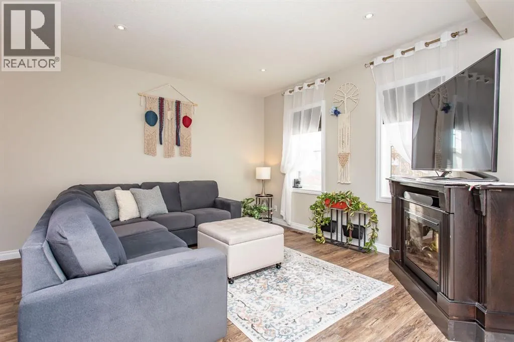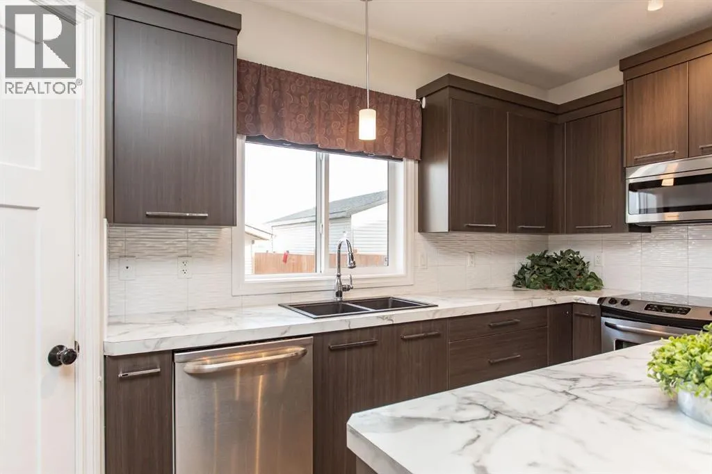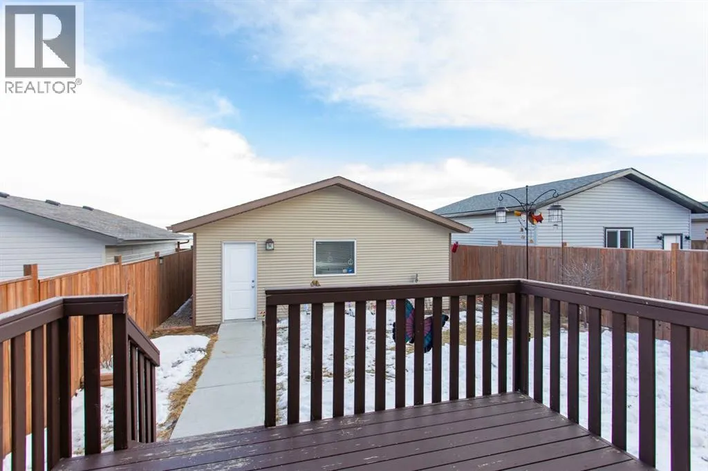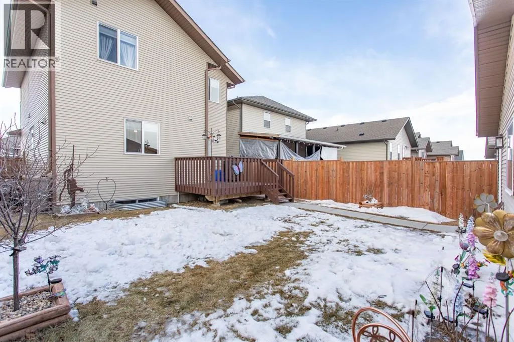 Welcome to this immaculate original owner 2 storey home situated in beautiful Timber Ridge, just steps from schools, parks, playgrounds, scenic walking paths around a pond, and the shopping amenities of Timber Ridge and Clearview Market. This 1581 sq ft home shines with pride of ownership and offers a large 24x26 detached garage. The main floor offers a bright, open concept living, dining, and kitchen area that flows beautifully from the moment you step inside, with 9' ceilings, vinyl plank flooring throughout, and a clean, modern feel. The kitchen is a standout feature, boasting dark raised cabinetry, a central island with eating bar, upgraded stainless steel appliances, a granite sink, and a walk-in pantry. Just off the kitchen is a garden door leading directly out to the back deck, and a convenient 2 pce bathroom finishes off the main level. Upstairs, you'll find three nicely sized bedrooms including a spacious primary suite complete with a walk-in closet and private 3 pce ensuite with shower. The two kids bedrooms share their own 4 pce main bath, and laundry is conveniently located on the same level as all the bedrooms. The basement offers roughed in in-floor heat and is open to your future design ideas for a family room, additional bedrooms, and rough ins are in place for a full 4 pce bathroom. Outside, the fully fenced yard is your own private retreat featuring a deck that's perfectly set up for morning coffees, or simply unwinding at the end of the day. The detached 24x26 garage is insulated, drywalled, and taped with a finished ceiling. This spotless home is a pleasure to show! (id:27476)