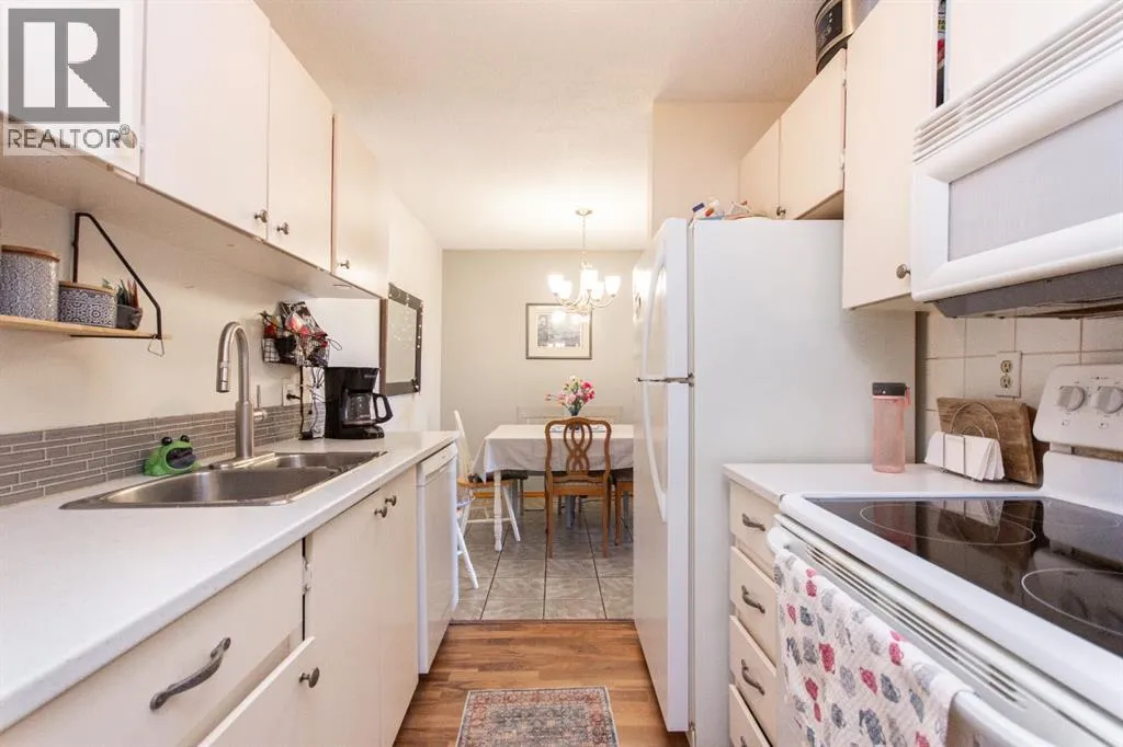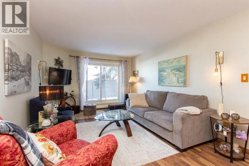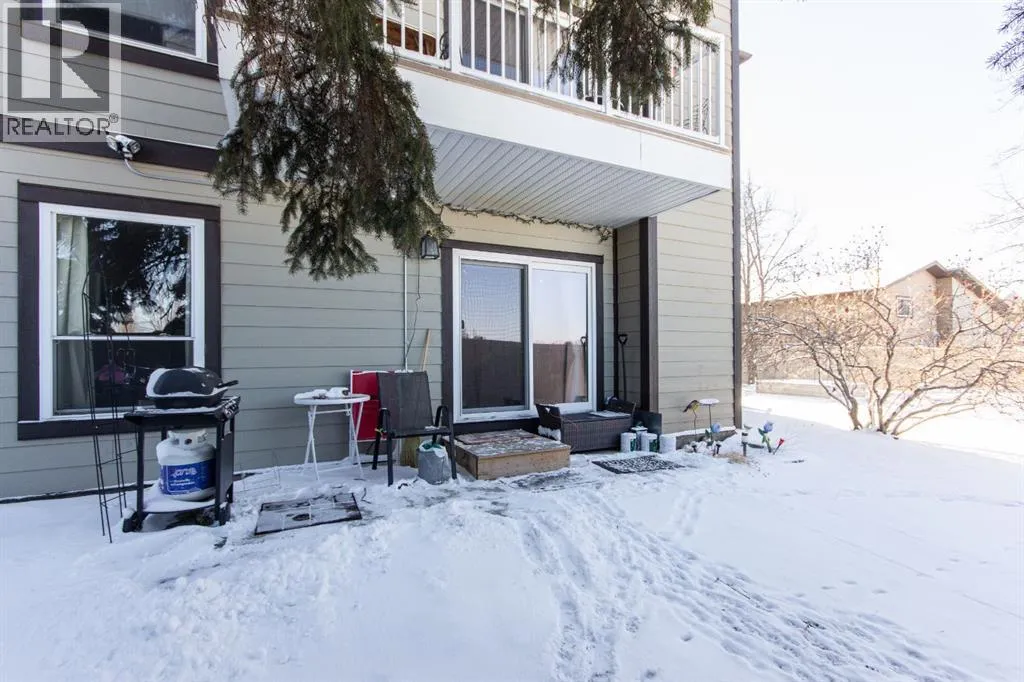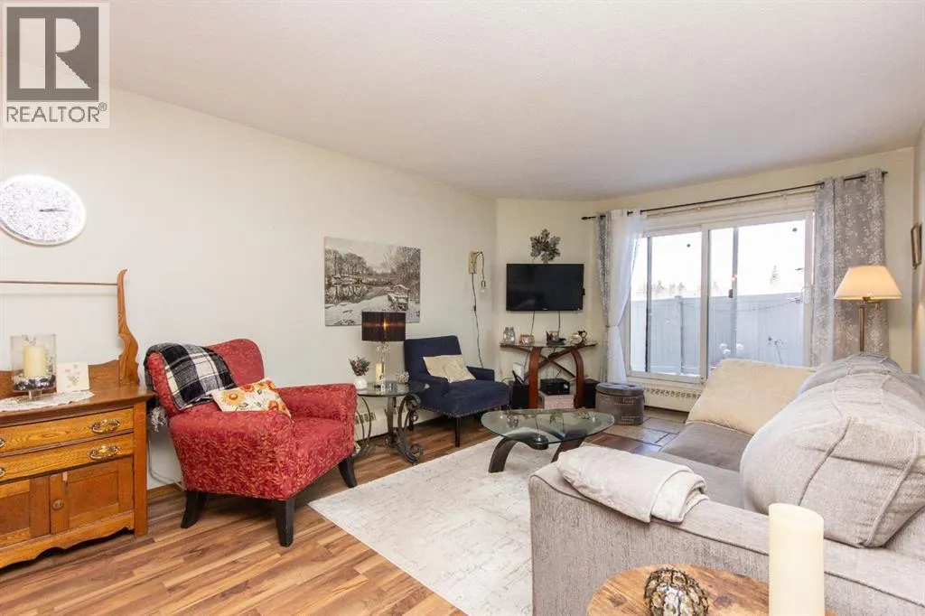 Situated in beautiful Clearview Meadows, this well kept 2 bedroom, 1 bathroom corner unit condo is just steps away from parks, playgrounds, scenic walking paths, and all the convenient shopping amenities of Clearview Market. Stepping inside this ground floor unit, the kitchen is located just off the entryway and offers a compact and functional layout with plenty of cabinetry and matching white appliances. The adjoining dining space easily fits a full sized table and flows seamlessly into the bright, and generously sized living room which features low maintenance laminate flooring. Large patio doors bring in plenty of natural light and provide direct access to your private ground level patio with no neighbours beside you for added privacy. Two comfortably sized bedrooms including a spacious primary are complemented by an updated 4 pce bathroom. There is also in-suite laundry and storage for added convenience. Condo fees are $478.75/month and include heat, water, sewer, trash, professional management, parking, insurance, and snow removal, making for simple and low maintenance ownership. Bylaws allow for 1 pet per unit, no more than 14" at the shoulder and board approval is required. This unit comes with one assigned parking stall, and additional parking stalls can be rented for $35/mo. The building has also seen a number of important updates over time including roof replacement, updated siding, a redone parking lot, vinyl fencing, and new patio doors. This clean and affordable unit is a great opportunity for first time buyers, downsizers, or investors on Red Deer's desirable SE side! (id:27476)