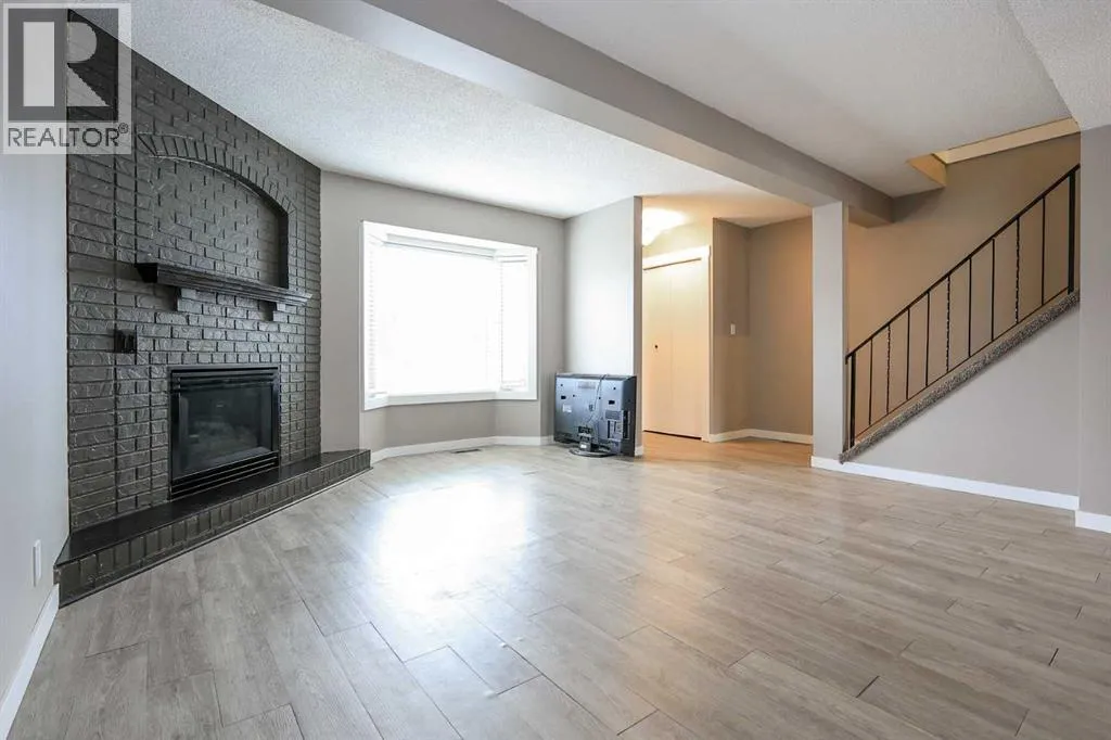IMMEDIATE POSSESSION & MOVE IN READY ~ 4 BEDROOM, 3 BATHROOM 2-STOREY TOWNHOME ~ NO CONDO FEES ~ The living room features south facing windows and a cozy gas fireplace with a brick surround and raised hearth ~ The eat-in kitchen offers plenty of dark stained cabinets, ample counter space, full tile backsplash, granite composite sink and tons of space for a dining table and chairs ~ 2 piece bath is located next to the main floor laundry and rear entry with access to the deck and backyard ~ The primary bedroom can easily accommodate a king size bed plus multiple pieces of furniture, and has dual closets ~ 2 additional bedrooms and a 4 piece bathroom with an oversized vanity complete the upper level ~ The fully finished basement was recently developed and offers a family room, 4th bedroom, 3 piece bathroom and space for storage ~ The backyard is fully fenced, landscaped and includes a garden shed ~ Paved alley and parking pad with 2 parking stalls ~ Recent updates include paint, flooring and appliances ~ The seller is aware the roof may require replacement in the near future, and the listing price reflects this ~ Excellent location; steps to transit, parks, playgrounds, walking trails, sports courts and a community hall, easy access to schools, shopping and all other amenities. (id:27476)