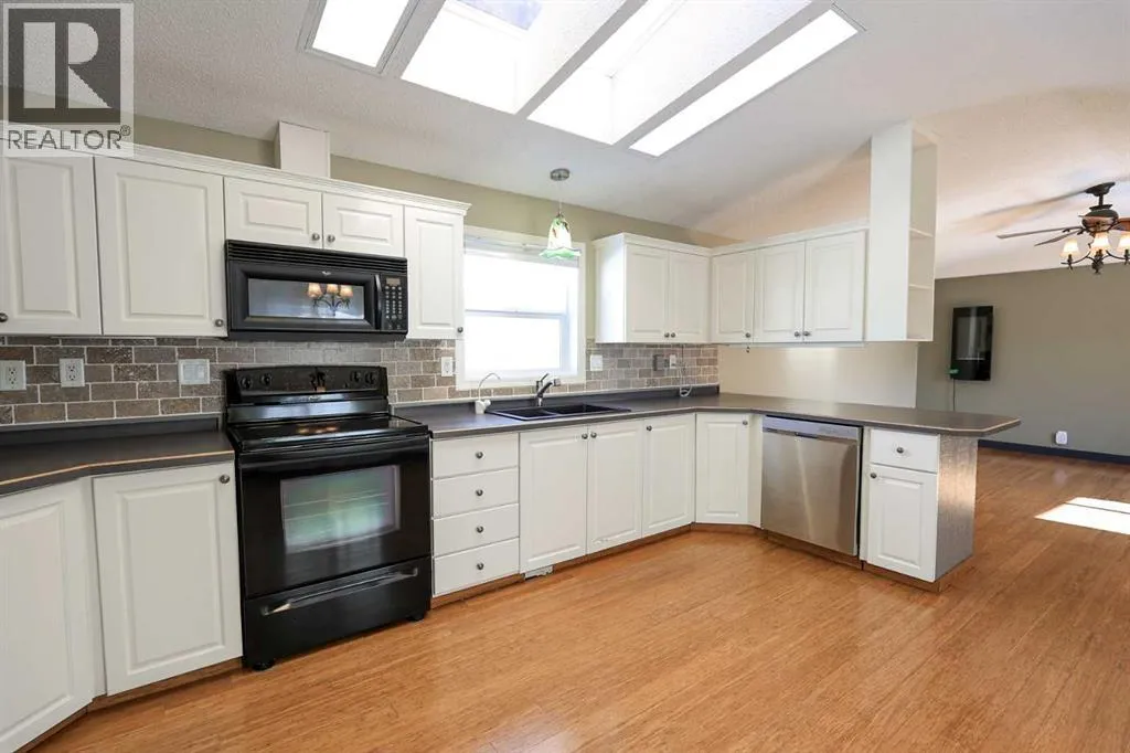 IMMEDIATE POSSESSION AVAILABLE ~ 3 BEDROOM, 2 BATHROOM MANUFACTURED HOME WITH OVER 1,216 SQ. FT. ~ SOUTH FACING DECK ~ LOW MAINTENANCE ADULT LIVING IN A GATED COMMUNITY ~ Large mudroom with skylights welcomes you ~ A large foyer with mirrored closet doors leads to the open concept main living space with cathedral vaulted ceilings ~ The spacious living room has a large south facing window that fills the space with natural light and features a cozy electric fireplace ~ The kitchen offers a functional layout, has an abundance of cabinets, ample counter space, full tile backsplash, window above the sink, skylights above and opens to the dining space plenty of room to host large gatherings ~ French garden doors lead to the sunny south facing deck with an awning and surrounded by mature landscaping for privacy ~ Conveniently located laundry with built in cabinets is just off the kitchen and next to the primary bedroom ~ The primary bedroom can easily accommodate a king size bed plus multiple pieces of large furniture, has a walk in closet with built in organizers and a 3 piece ensuite with a walk in shower (grab bar) and skylight ~ 2 additional bedrooms (one with a built in Murphy bed) are located next to the 4 piece main bathroom ~ Recent updates include; shingles, hot water tank ~ HEATED 28'L x 15' W attached garage is insulated, finished with painted and texturized drywall, has built in shelving, a floor drain and a man door to the deck ~ Lot rent is $820/month, and includes snow removal and grass clipping ~ Pets ok with restrictions ~ Located in a quiet, well managed community, close to walking trails, parks and shopping with all other amenities close by. (id:27476)