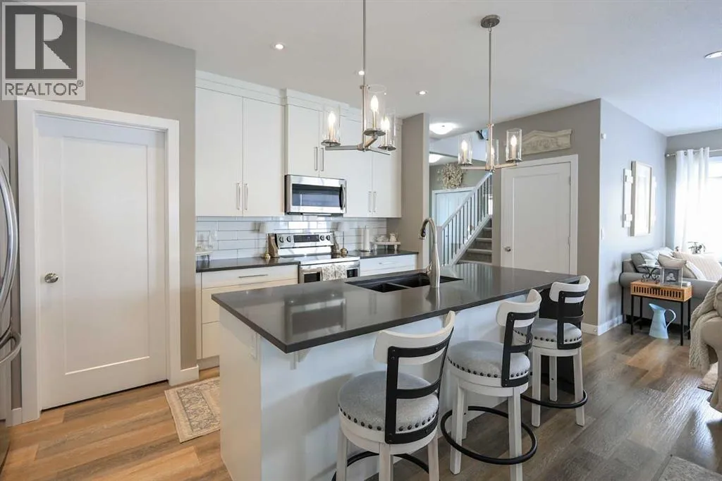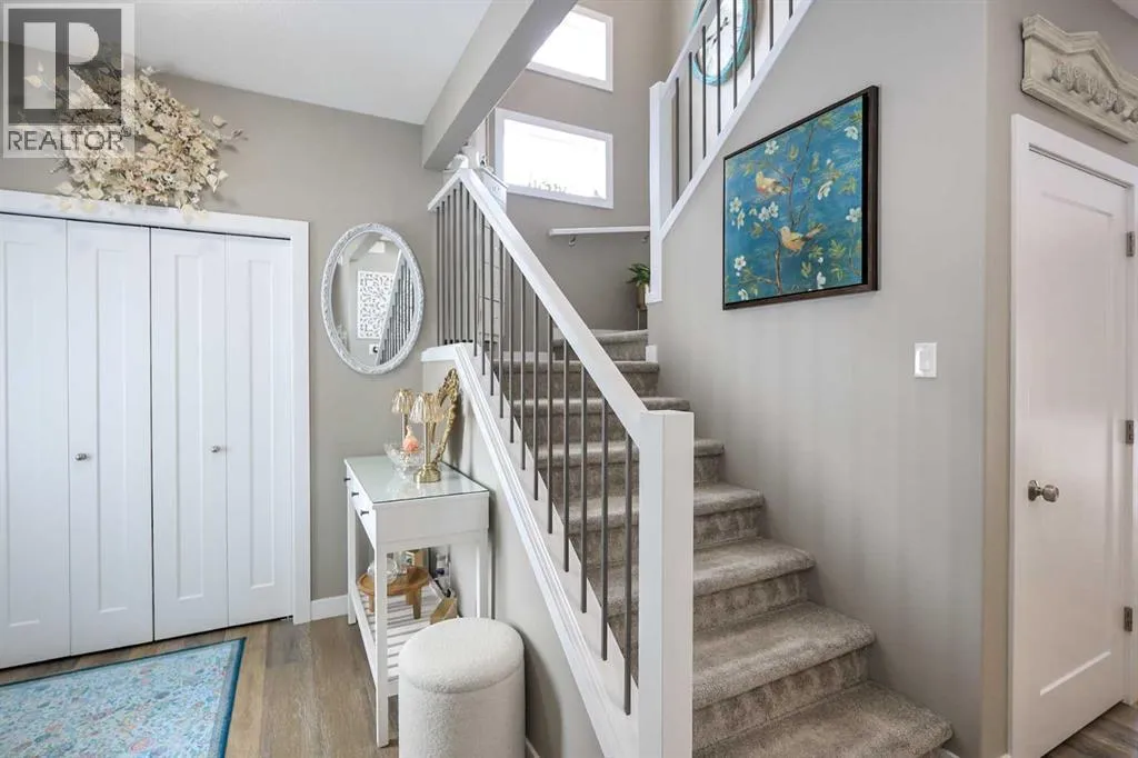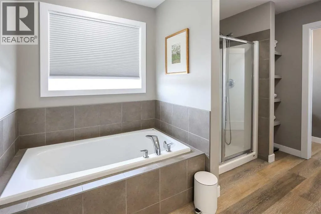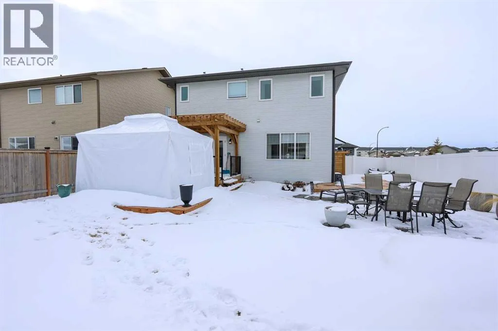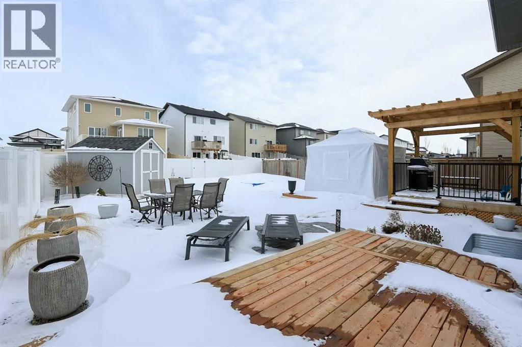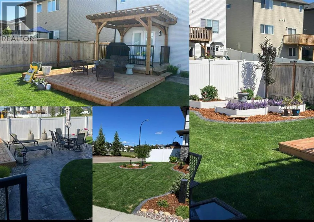 LOADED WITH UPGRADES ~ 5 BEDROOM, 4 BATHROOM 2-STOREY ~ 2,135 SQ. FT. ABOVE GRADE & A FULLY FINISHED BASEMENT ~ HEATED DOUBLE ATTACHED GARAGE ~Recent renovations and upgrades include; Central air conditioning, central vacuum, water softener, kitchen faucet, fridge, stove, dishwasher, washer, dryer, new carpet, lighting and light fixtures, window coverings, paint, front door and hardware, garden doors to deck and hardware, front and rear decking, pergola, exterior LED lighting, wiring for a hot tub, shed, front and back landscaping with concrete edging, garage door ~ Covered front veranda welcomes you to this well cared for home, and leads to a sun filled foyer ~ Open concept main floor layout is complemented by high ceilings and vinyl plank flooring ~ The spacious living room is filled with natural light from large windows that overlook the backyard and park space just across the street ~ The kitchen offers an abundance of ceiling height cabinets loaded with drawers, endless stone countertops including an island with a waterfall edge, full tile backsplash, upgraded stainless steel appliances, and a massive walkthrough pantry that connects to the mud room with easy access to the attached garage ~ Easily host large gatherings in the dining room with garden door access to the 2-tiered deck with a pergola ~ 2 piece main floor bathroom ~ Bright and airy staircase leads to the upper level landing with a conveniently located laundry closet ~ The primary bedroom can easily accommodate a king size bed plus multiple pieces of furniture, has a spa-like 5 piece ensuite with dual sinks, soaker tub, walk-in shower, and a water closet, plus a large walk-in closet with built in organizers ~ 2 additional bedrooms located on the 2nd level are both a generous with ample closet space ~ The bonus room has large west facing windows that fill the space with natural light ~ 4 piece bathroom ~ The fully finished basement with high ceilings and operational in floor heat offers a generous siz e family room/flex space with roughed in plumbing for a wet bar, plus two large bedrooms, a 4 piece bathroom and ample space for storage ~ HEATED 22' x 22' attached garage is insulated and finished with painted drywall ~ The backyard is landscaped with garden beds, has 3 decks (one with a pergola), lower stamped concrete patio, shed, garden, and is fully fenced (vinyl), with back alley and side street access ~ Located across from a treed park and playground, close to walking trails, schools, and multiple shopping plazas loaded with great amenities ~ Pride of ownership shines! (id:27476)