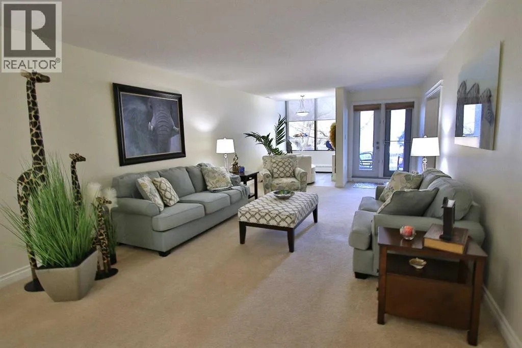 Recently renovated main floor condo in the highly sought-after Park Green complex in desirable Woodlea! This spacious 2-bedroom unit offers excellent functionality and comfort. The oversized primary bedroom features large windows, walk through wardrobe and a convenient 3-piece ensuite. The bright kitchen showcases stainless steel appliances, recently upgraded cabinets, newer countertops and backsplash, plus an oversized pull-out pantry. The dining area accommodates a large table, and the living room provides a welcoming space for open concept entertainment. An additional flex area is perfect for an office, reading room, or exercise space. The second bedroom is located near the 4-piece bathroom with ample vanity and storage. Step out to the south-facing patio with beautiful park views and direct access to walking paths. This unit includes a secure underground parking stall with enclosed storage. Building amenities feature a car wash bay and woodworking room, plus rooftop A/C for summer comfort! An excellent location close to shopping, amenities, and walking/biking trails (id:27476)