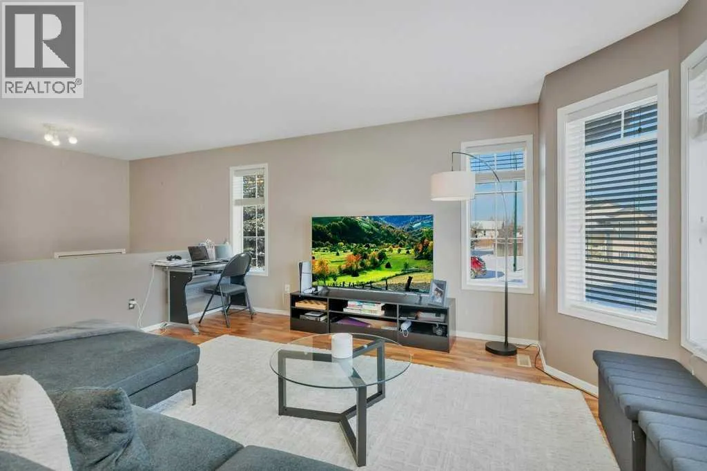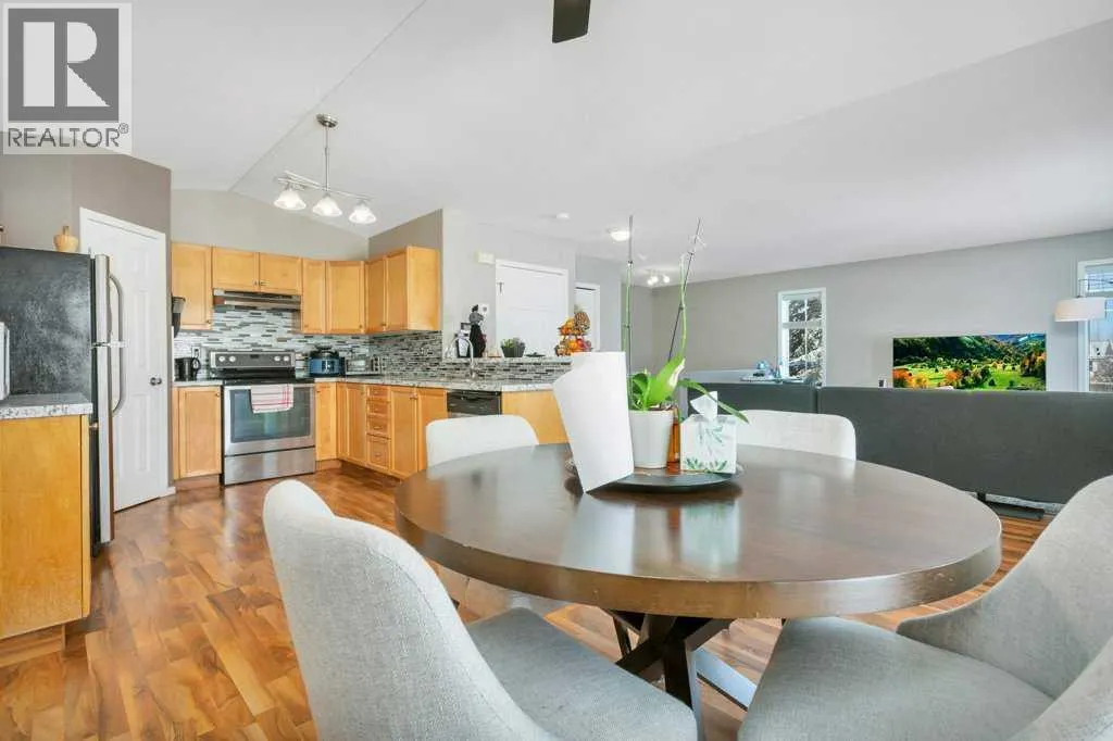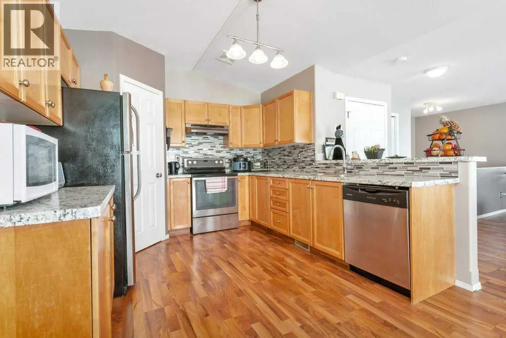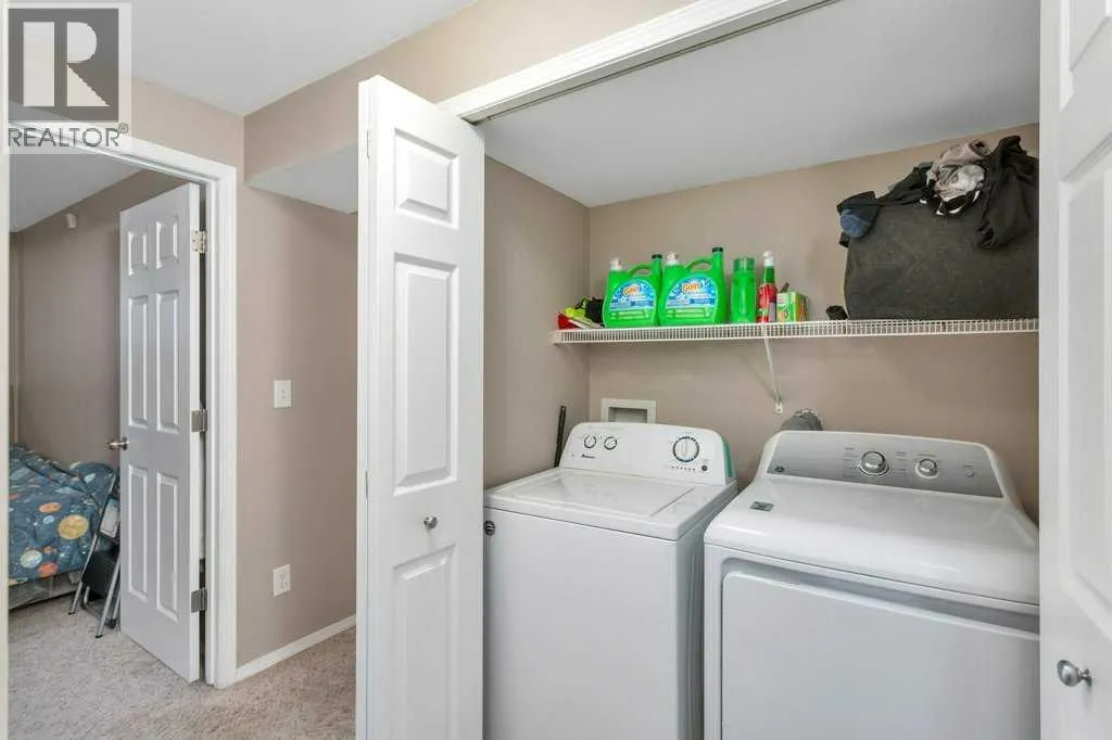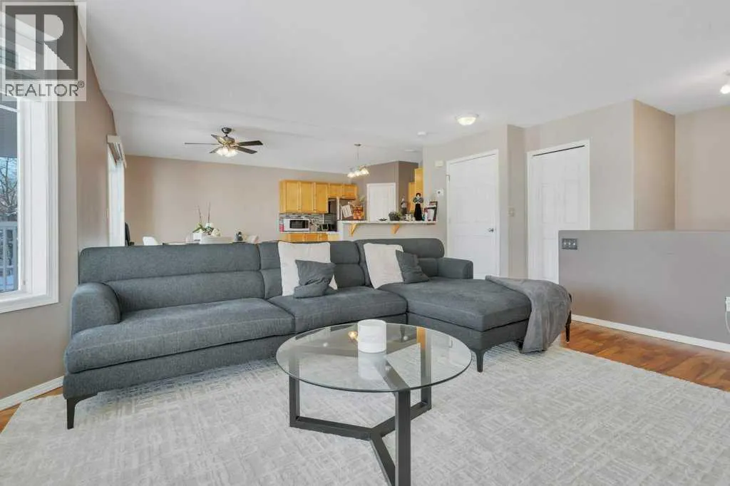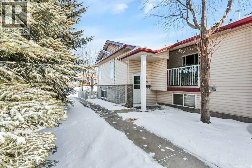 MAINTENANCE FREE LIVING IN ANDERS! This bright two bedroom, 2 bathroom home is ideally situated in Aspen Ridge, close to the parks, trails, shopping and schools. The main floor includes a spacious kitchen with vaulted ceilings, corner pantry, tile backsplash and a raised eating bar that opens into the large living room. Great size eating area looks out onto a covered balcony through sliding glass doors with room for your BBQ. Convenient two piece bathroom completes the main level. Fully developed basement features a spacious primary bedroom along with a second bedroom both of which have excellent closet space. Four piece bathroom, laundry area, and storage closets complete the lower level. Condo fees includes garbage, professional management, reserve fund contributions, insurance, and outdoor maintenance including snow removal. Pets are allowed upon board approval. Two powered parking stalls included. What a perfect place to call home! (id:27476)