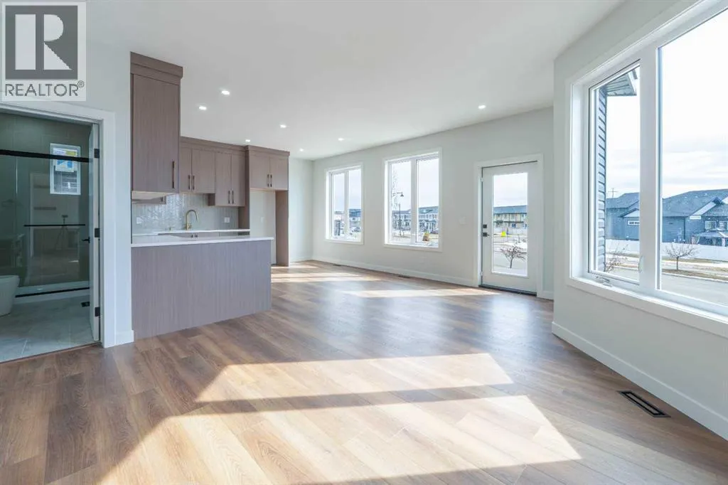 Step into this beautifully designed front-garage home offering the perfect blend of comfort, style, and functionality. Featuring a total of 4 bedrooms and 3 full bathrooms, this home is ideal for growing families or those seeking extra space.The main floor includes a desirable bedroom and full bathroom, perfect for guests or extended family. A bright and inviting living room flows seamlessly into the modern kitchen, complete with stainless steel appliances, ample cabinetry, and a great layout for everyday cooking and entertaining.Upstairs, youâll find 3 generously sized bedrooms, including a well-appointed primary suite, along with 2 full bathrooms and convenient upper-floor laundry.This walk-out home backs onto beautiful green space, offering peaceful views and extra privacy. Enjoy outdoor living with a finished deck, ideal for summer gatherings, barbecues, or simply relaxing in the fresh air.The unfinished basement provides a blank canvas to customize to your needsâwhether you want a recreational area, additional living space, or extra storage.A fantastic opportunity in a sought-after locationâdonât miss it! (id:27476)