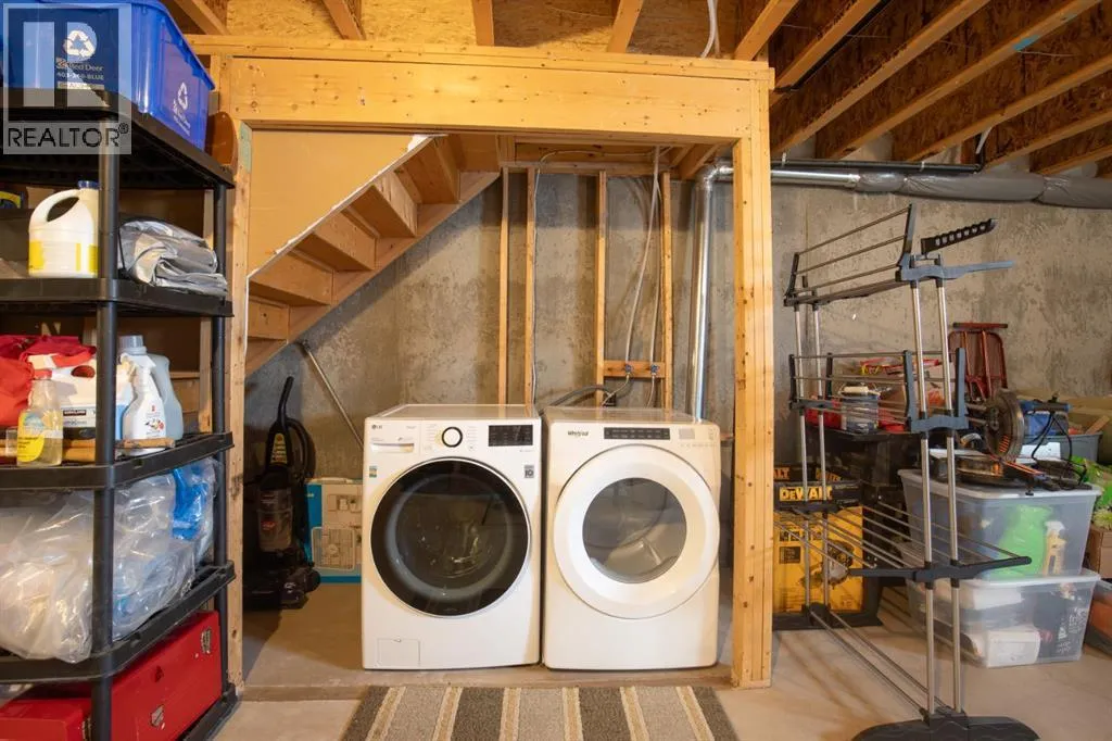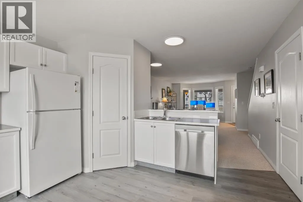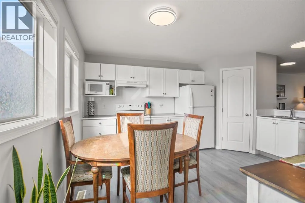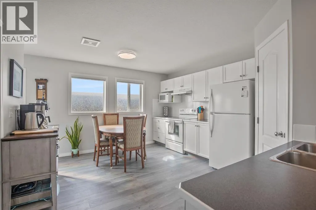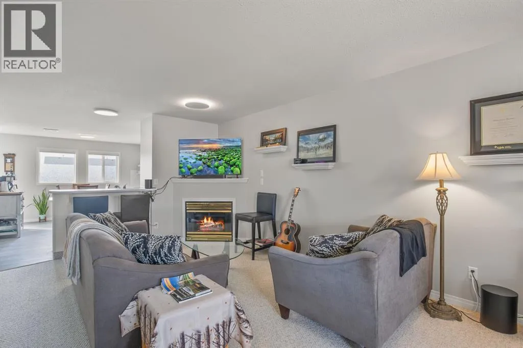 Welcome to this meticulously maintained, like-new two-storey townhome located in a quiet southeast complex. This desirable layout features an open-concept main floor highlighted by a cozy corner gas fireplace, a convenient half bath, and new LED lighting throughout, creating a bright and inviting space.Upstairs offers two spacious bedrooms plus a versatile flex space, along with a large main bathroom. The primary bedroom is exceptionally sized, complete with a beautiful bay window and double closets.The basement is undeveloped and ready for your vision, ideal for storage or future development including a bedroom, bathroom, and family room. Newer appliances are included, along with a small freezer in the basement for added convenience.Enjoy your own private backyard with low-maintenance vinyl fencing, plus space for two vehicles in the rear parking area. There is also an abundance of visitor parking conveniently located nearby.As part of a well-managed condo association, exterior maintenance is taken care of for you, including snow removal and yard maintenance, offering a true low-maintenance lifestyle.Situated in an established, well-run community, this home offers comfort, functionality, and ease of living. (id:27476)