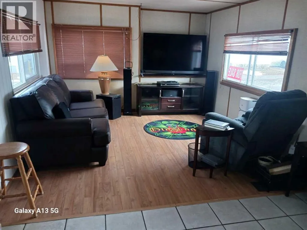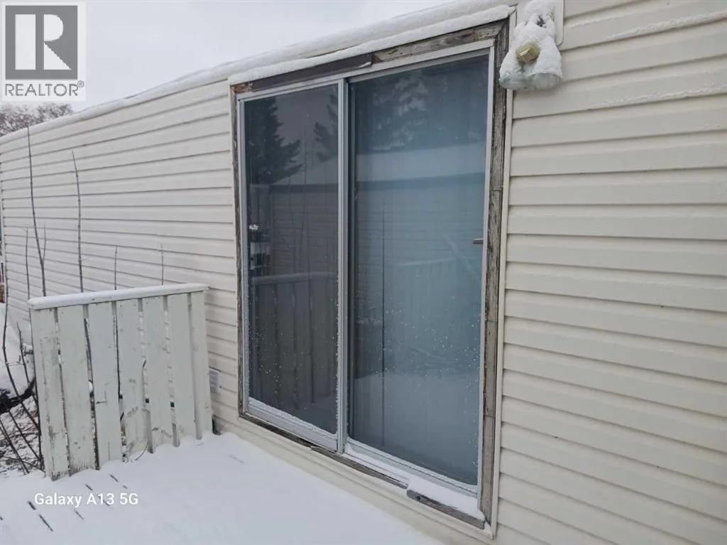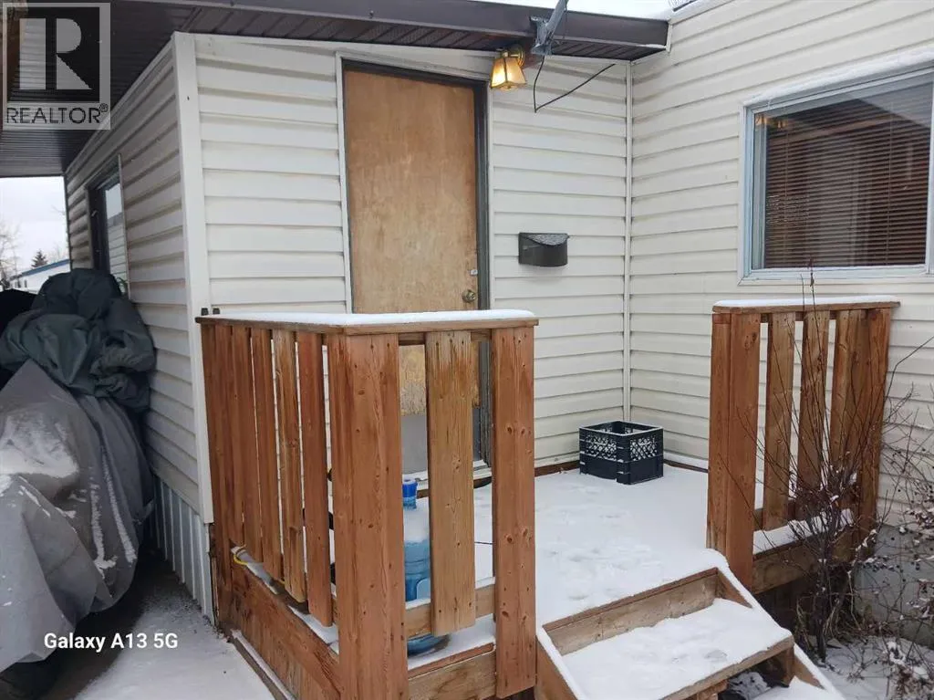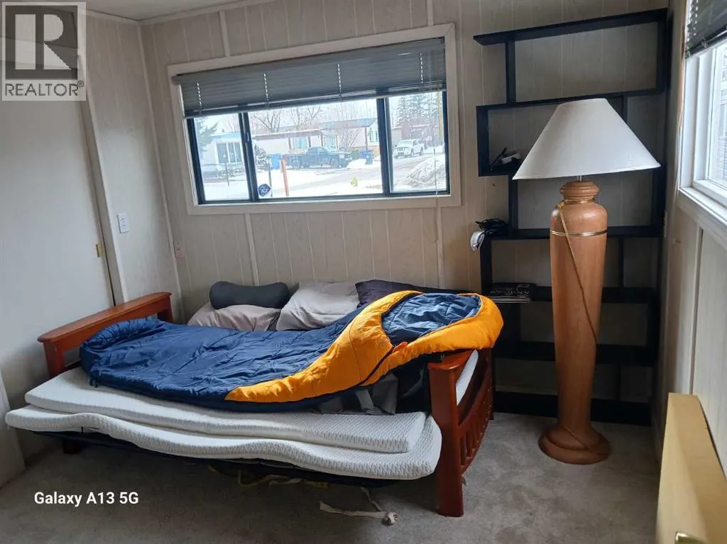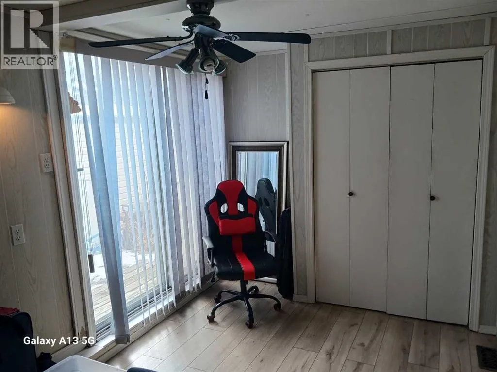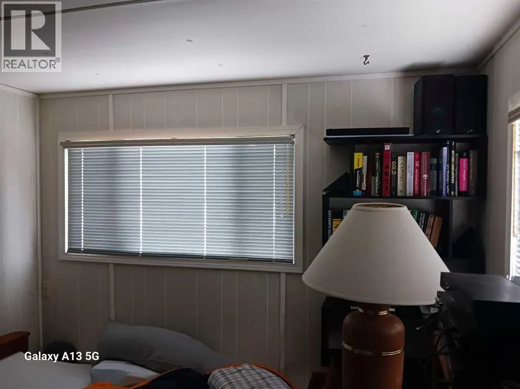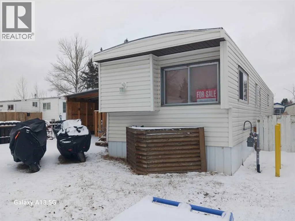 JUST FOR YOU. One bedroom home on Red Deer's north end in Mustang Acres. Renovated some time ago and offers up tiled flooring in the kitchen/dining area, and hallway. Balance of flooring is again an updated laminate in the bedroom, bath and office. Kitchen cabinets were an upgrade with adjustable shelving so you can re-jiggle where the pans go, where you can stack the dishes so it all fits best for you. Appliances are staying so you save a little money and you save a lot of time. The living room is very functionable so no need to worry about room for your relaxing sofa, recliner, foot stool and or your coffee table. Down the hall, first room on your left is a huge 13'.5" x 8'.6" office, games room or can be easily converted back to a second bedroom if the need presents itself. Office also features patio doors facing south and is perfect to access the 10' x 14' south west facing deck. Primary bedroom is at the very back of the home and it too has upgrades in regard to light fixtures and. carpet for flooring. More value in the 8' x 14'6" addition currently acting as a great entrance/porch/storage area. With the home being 692 sqft and the addition being 116 sqft now you have a total of 808 sgft all to yourself. It's going to be fantastic for you. Not only is there some open, paved parking but a 11' 6" x 16' carport to protect your ride. A GARAGE, yes, a 9'x24' detached garage for doing your thing, whether that means more cars, bikes or hobby playroom. This home is set up on a corner lot and a fence backyard backs on to empty green space. Shopping, playgrounds, Casino, Schools and other needed retail is all within walking distance or a very short drive. Pets welcome subject to park approval. Quick, quick possession is possible and preferred. Now is go time. Go see. (id:27476)