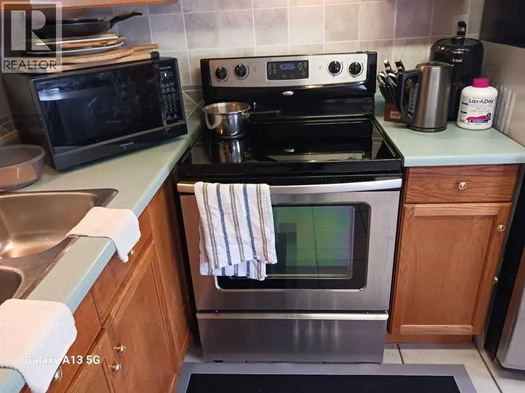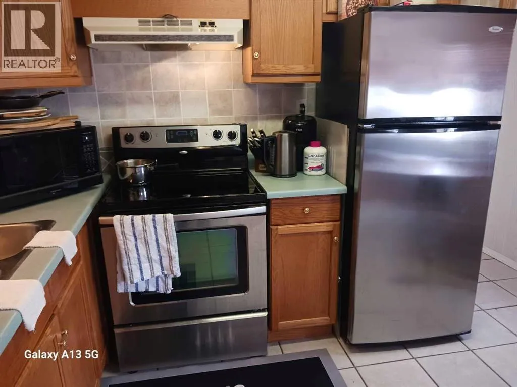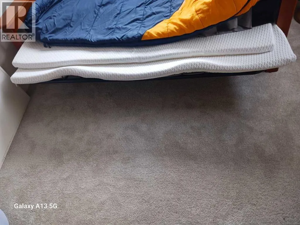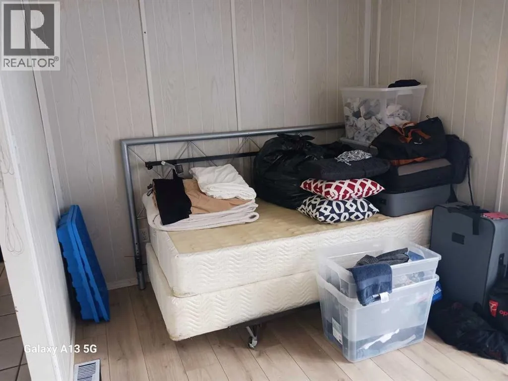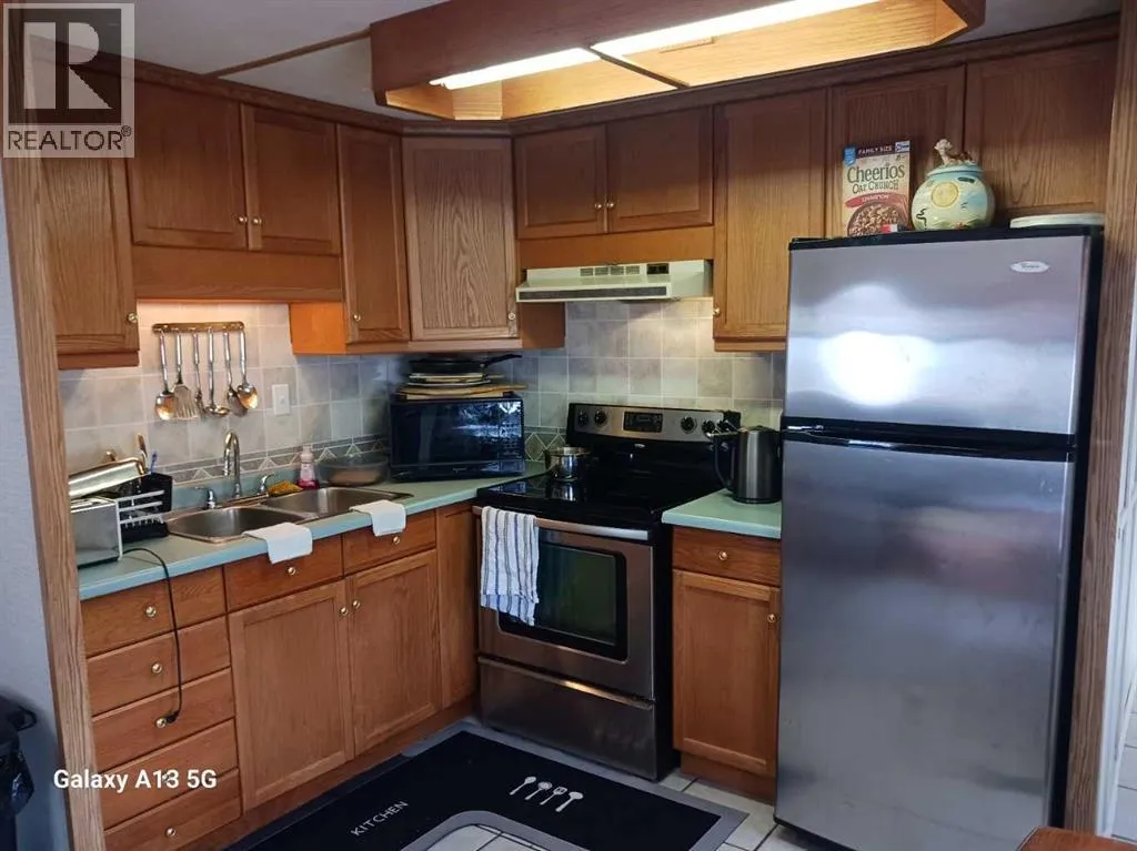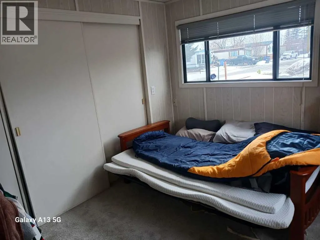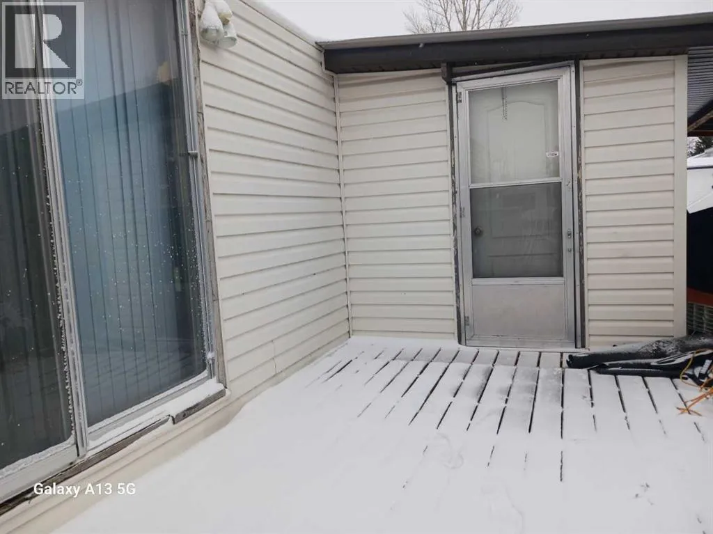 JUST FOR YOU. One bedroom home on Red Deer's north end in Mustang Acres. Renovated some time ago and offers up tiled flooring in the kitchen/dining area, and hallway. Balance of flooring is again an updated laminate in the bedroom, bath and office. Kitchen cabinets were an upgrade with adjustable shelving so you can re-jiggle where the pans go, where you can stack the dishes so it all fits best for you. Appliances are staying so you save a little money and you save a lot of time. The living room is very functionable so no need to worry about room for your relaxing sofa, recliner, foot stool and or your coffee table. Down the hall, first room on your left is a huge 13'.5" x 8'.6" office, games room or can be easily converted back to a second bedroom if the need presents itself. Office also features patio doors facing south and is perfect to access the 10' x 14' south west facing deck. Primary bedroom is at the very back of the home and it too has upgrades in regard to light fixtures and. carpet for flooring. More value in the 8' x 14'6" addition currently acting as a great entrance/porch/storage area. With the home being 692 sqft and the addition being 116 sqft now you have a total of 808 sgft all to yourself. It's going to be fantastic for you. Not only is there some open, paved parking but a 11' 6" x 16' carport to protect your ride. A GARAGE, yes, a 9'x24' detached garage for doing your thing, whether that means more cars, bikes or hobby playroom. This home is set up on a corner lot and a fence backyard backs on to empty green space. Shopping, playgrounds, Casino, Schools and other needed retail is all within walking distance or a very short drive. Pets welcome subject to park approval. Quick, quick possession is possible and preferred. Now is go time. Go see. (id:27476)