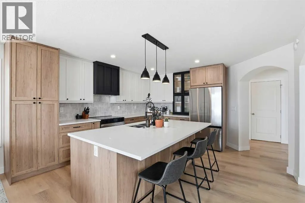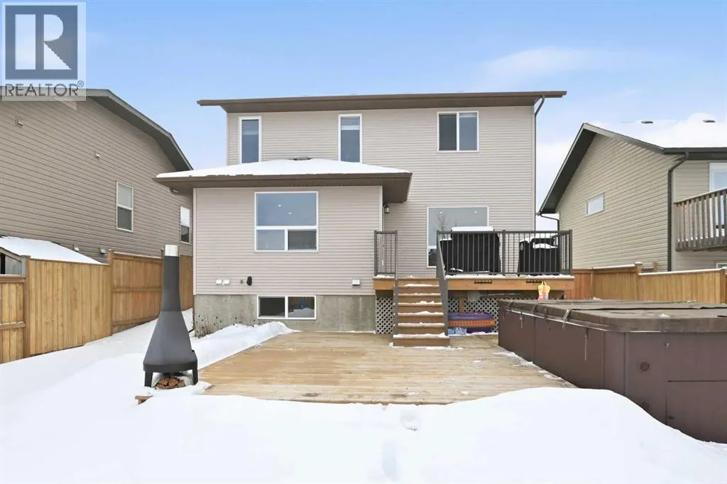 BEAUTIFUL 4 BDRM HOME BACKING ONTO A PARK! FULLY UPDATED AND MOVE IN READY! Welcome to this stunning 4 bedroom, 4 bathroom home perfectly located with direct access to the green space behind. Spacious and well cared for, it has been thoughtfully updated throughout and has all the extras - fireplace, air conditioning, central vac, in floor heat, hot water on demand, water softener, and more! The AMAZING custom kitchen is the heart of the home, featuring pantry pullouts, black accent cabinets with in-cabinet lighting, a 7ft+ island with back cabinets, garbage pullout, garburator, osmosis water filter in island, new appliances with ice and water in fridge, multiple USB plug ports, and the sweetest coffee bar! Large living areas provide plenty of room to relax or entertain while enjoying the private green space views. The main floor also offers laundry, 1/2 bath and a great size front entry. Upstairs you will find a big primary with walk-in closet and ensuite, 2 nice-size bedrooms and a full 4 pce bath. Down is a huge family room, office nook, bedroom, 3 pce bathroom and lots of storage. Step outside to your two-tiered deck with a Swim Spa, kids' playset and the wide open space! This is a rare opportunity to own a beautiful home in an incredible location - your chance to enjoy space, comfort, and nature right outside your door! The Collicutt Center, schools and shopping are all nearby in this terrific neighbourhood!! (id:27476)