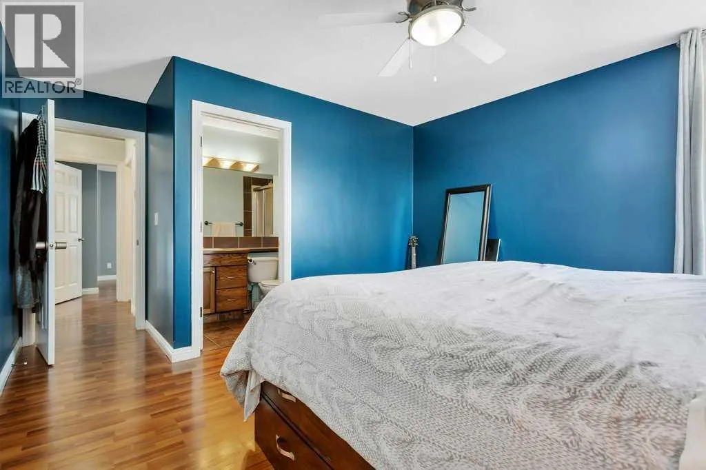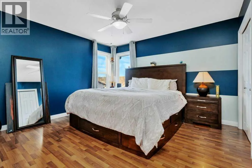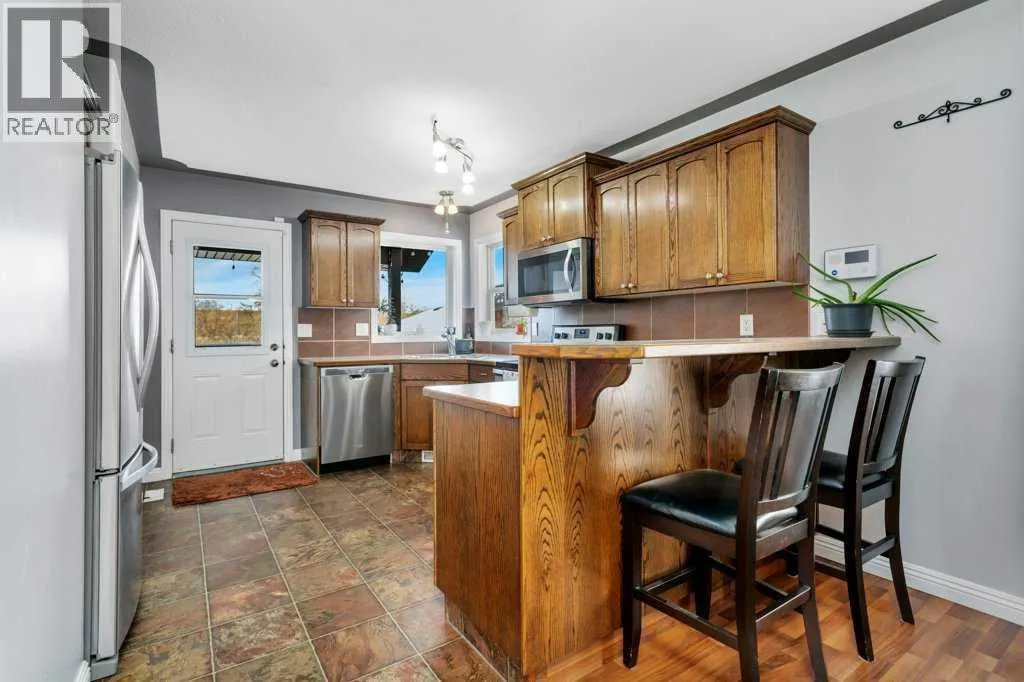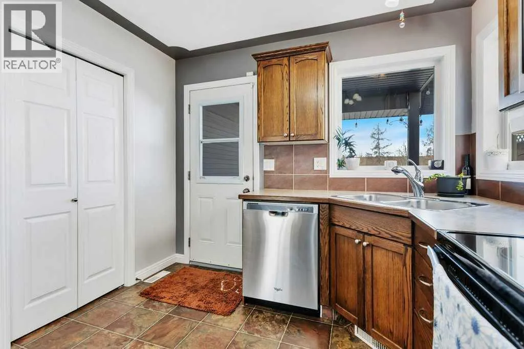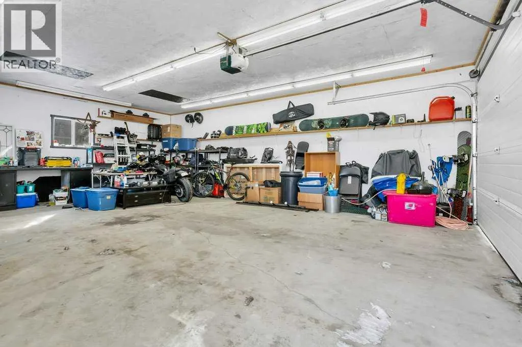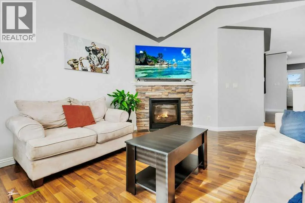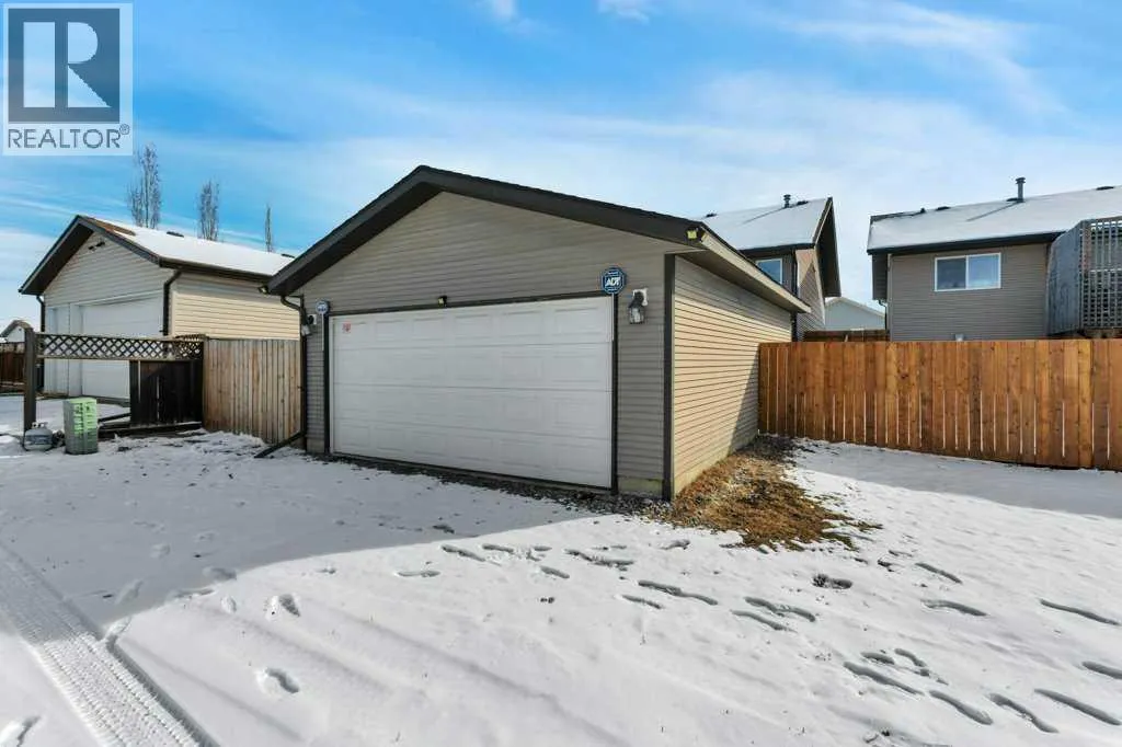 A beautifully curated home in a community designed for connection and ease. This four bedroom, three bathroom home offers a functional and spacious layout. Step into the spacious front entrance way which leads to the main level living space. The living room has vaulted ceilings and large south east exposed windows to create a bright and inviting living space all while being anchored by the corner stone-faced gas fireplace. The kitchen offers plenty of workspace, corner sink, laminate countertops, pantry and an breakfast bar that looks over the dining area. The primary bedroom is generously sized and includes a three piece ensuite and dual closets. A second bedroom and full bathroom complete the main level. Downstairs, the fully finished basement expands the living space with a large family room, two additional bedrooms, four piece bathroom and a laundry room. Step outside the garden door off the kitchen to the covered deck which leads out to the back yard. The yard is landscaped and fenced and offers a massive amount of enclosed storage under the deck and a 20'x 28' detached garage. Updates include garage shingles (March 2026), hot water tanks (Nov 2025 & Fall of 2024) and updated circulating pump for in-floor heat. A well cared for home in a convenient location with quick access to the QE2 â perfect for those looking for space, comfort, and easy living. (id:27476)