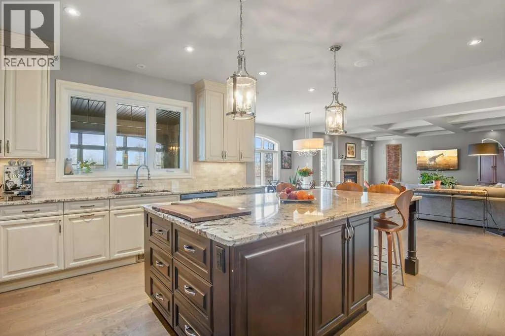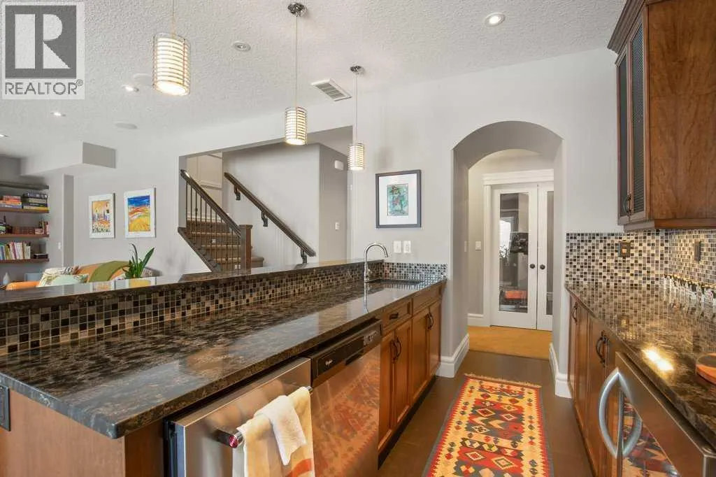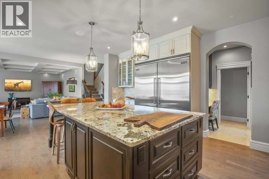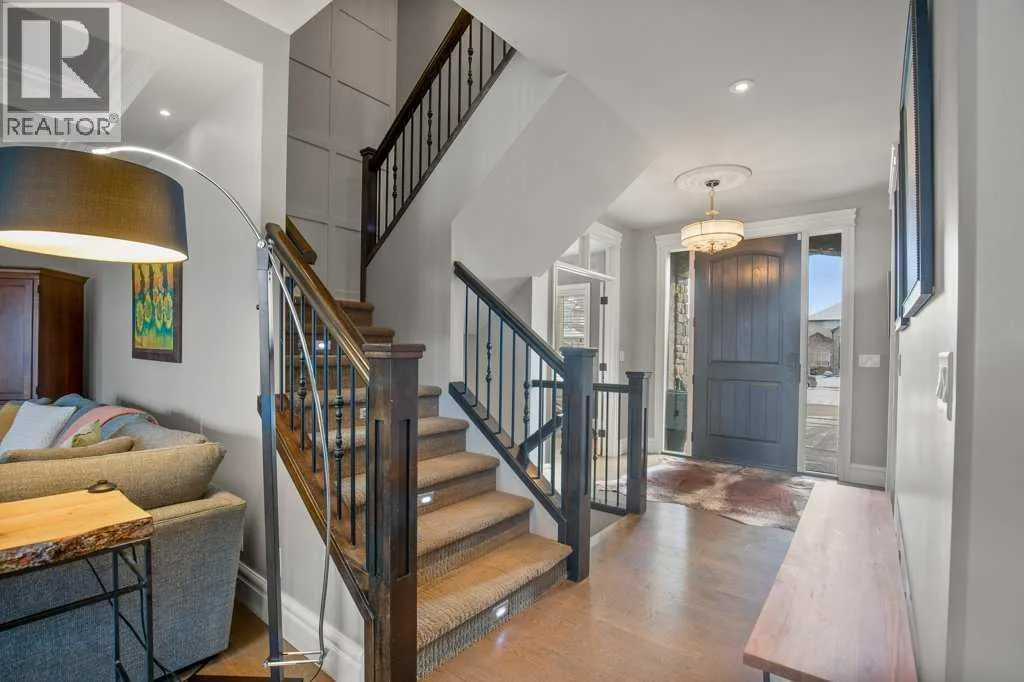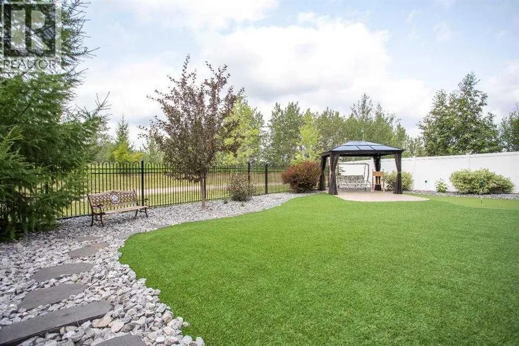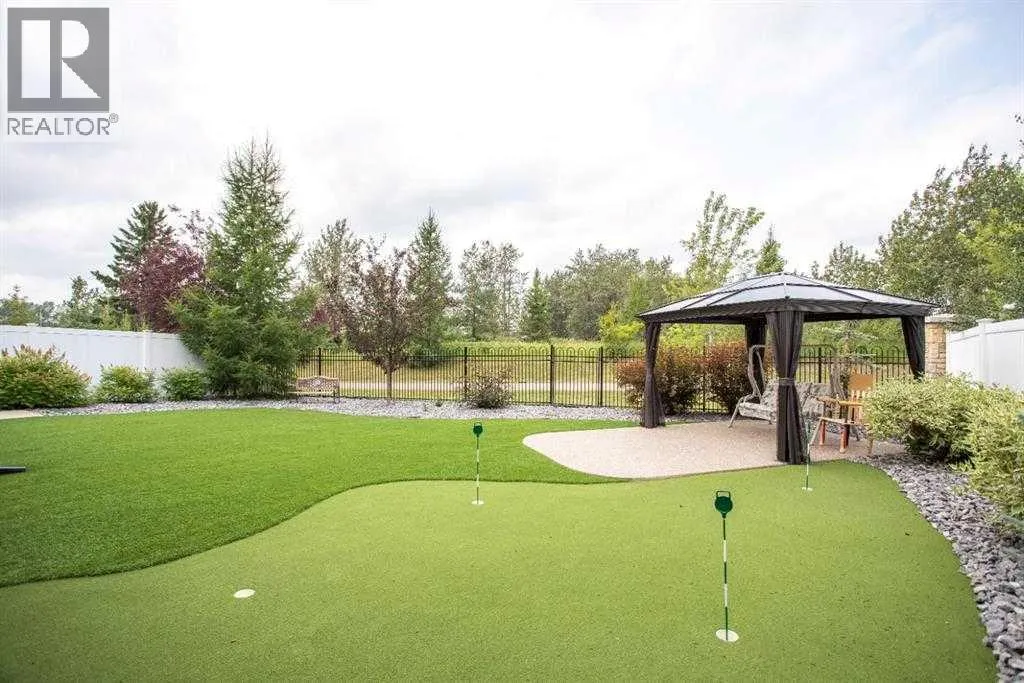 This STUNNING TWO STORY is a custom built Sorrento Home with exquisite details and thoughtful design. Located in one of Red Deer's most prestigious neighborhoods, backing on to the Piper Creek natural reserve. The curb appeal is top notch with earth toned stucco accented with archways and stonework. The heated triple garage is a dream for hobbyists, complete with two built-in work benches and plenty of room for projects. Step into a home that defines luxury living. Rich hardwood floors lead you through the main level. Elegant coffered ceilings compliment the large living room. The two sided fireplace creates a warm ambiance both inside and out on the southwest-facing deck. The 3-season sunroom extends your living space, surrounded in scenic views. At the heart of the home, the Chef's kitchen is a showstopper! Premium Viking appliances, a gas range, and double ovens. The two-toned maple cabinetry and massive island are draped in granite countertops. The large pantry offers a desk drop zone and ample storage. The mudroom provides a wonderful walk-in closet and access to the garage. The second floor is the family zone and features three large bedrooms. You will enjoy relaxing in this primary suite with the warmth of the two-sided fireplace. Soak your worries away in the spa-like 5-piece ensuite. The massive walk-in closet connects to the convenience of second level laundry. The fully developed walkout basement is designed for entertaining. It features a stylish wet bar, ice maker, and dishwasher. Impress your guests with the wine cellar, accented with gorgeous glass doors. The family room is anchored by a cozy gas fireplace, flanked by built-in shelving. Perfect for hosting company, this lower level offers a large bedroom and a 4-piece bathroom. The home gym is an added perk for that healthy lifestyle. Garden doors give you easy access to this beautiful backyard, bordered with mature trees and shrubs. It comes complete with a golf green to perfect your putting game. Fr ont and rear yards are both maintenance free with artificial turf. Step thru the gate to gain access to the City Trail System that runs along the Red Deer River, leading to the beautiful parks of Heritage Ranch and Bower Ponds. This impressive home offers a perfect balance of sophistication and comfort. Located in a highly desirable neighborhood, close to amenities, schools, and scenic surroundings, this home offers not just a place to live - but a lifestyle to enjoy! (id:27476)
