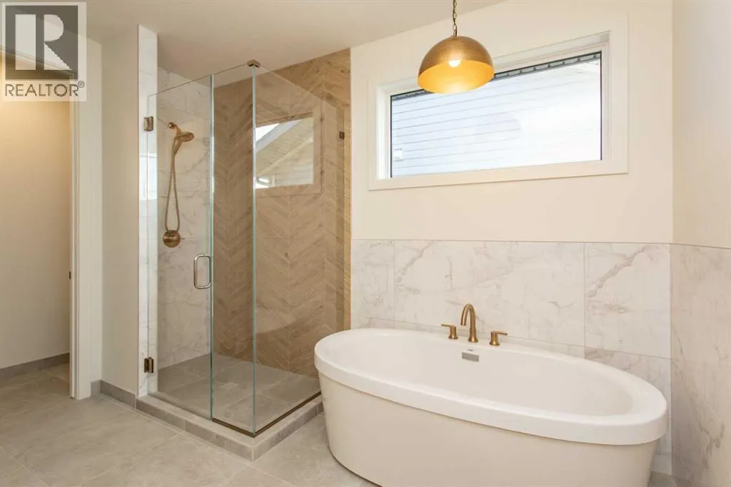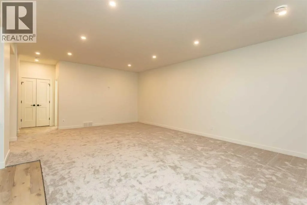 A brand new Larkaun Homes bungalow in Evergreen with a triple attached garage! The front entryway greets you to the open style floorplan with vaulted ceilings. Two toned, soft close maple kitchen cabinets are complimented by crown mouldings, full tile decorative backsplash, stainless steel appliances including a gas stove with a custom maple hoodfan, quartz countertops, an eating bar island and a butler's pantry that has built in cabinetry, a prep sink & a window. The dining area has patio doors out to the sunroom with powered screens, a fan and electric heat. This leads to the 12'x10' composite sun deck. Relax in the living room next to the electric fireplace with tile surround and wood mantle. There is an office, a powder room and a back entryway with built in cubbies and main floor laundry for your convenience. The King sized primary bedroom features a walk in closet & a 5 piece ensuite with double sinks, quartz countertops, a freestanding tub, a water closet and a custom glass/ decorative chevron tiled shower. The basement has a large family/games room with a wet bar and wine room, 2 bedrooms and a 4 piece bathroom. A fantastic location within walking distance to the park and path system. (id:27476)