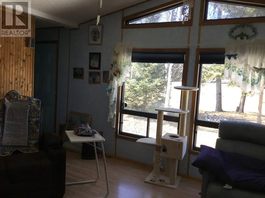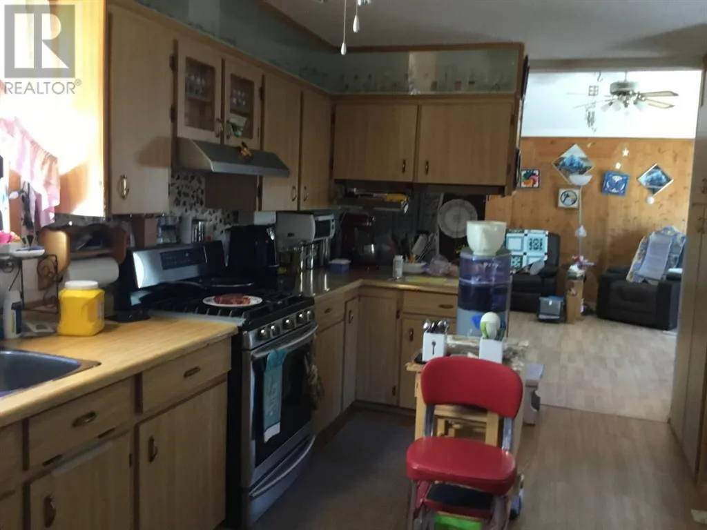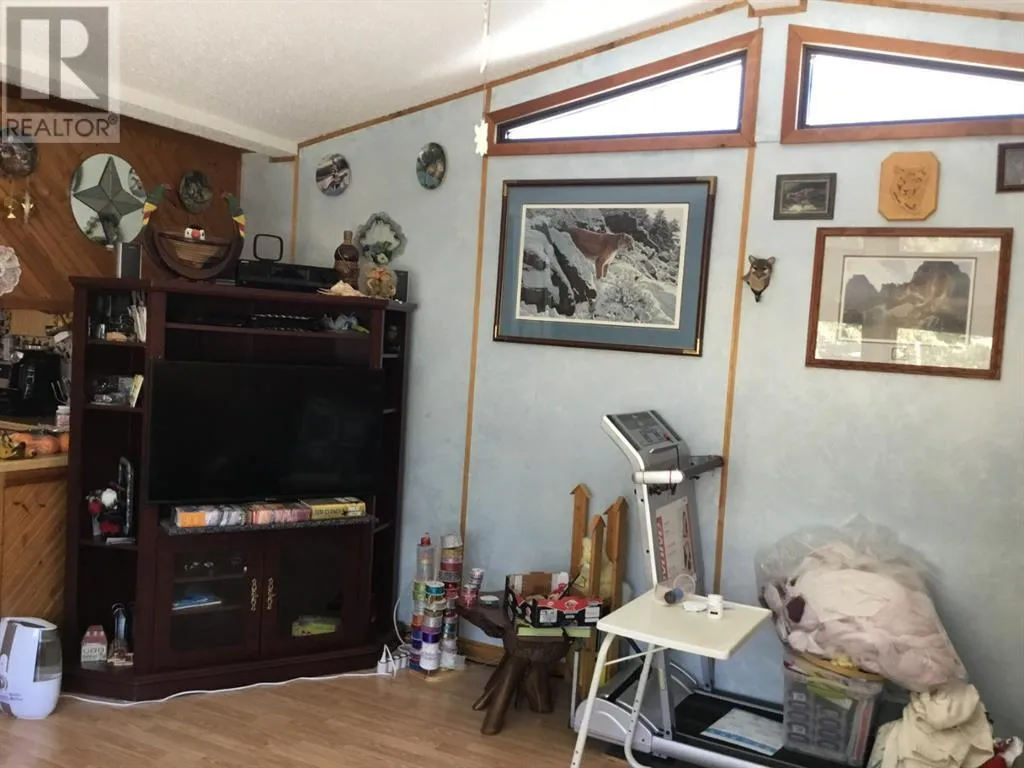 Nicely located in a quiet neighborhood, this home features 2 nice size bedrooms, 2-4pc bathrooms, spacious kitchen and dining area , living room features vaulted ceiling and large windows, allowing plenty of natural light in. The 12' X 24' addition can be a great office/craft area as well as extra storage space. The furnace and hot water tank are less than 3 years old. Additional buildings include a shed , engineers shack as well as a double detached garage. For added convenience there is a drive-through driveway. Mobile and addition have new shingles in July 2022! This property now has HIGH SPEED INTERNET!! (id:27476)
