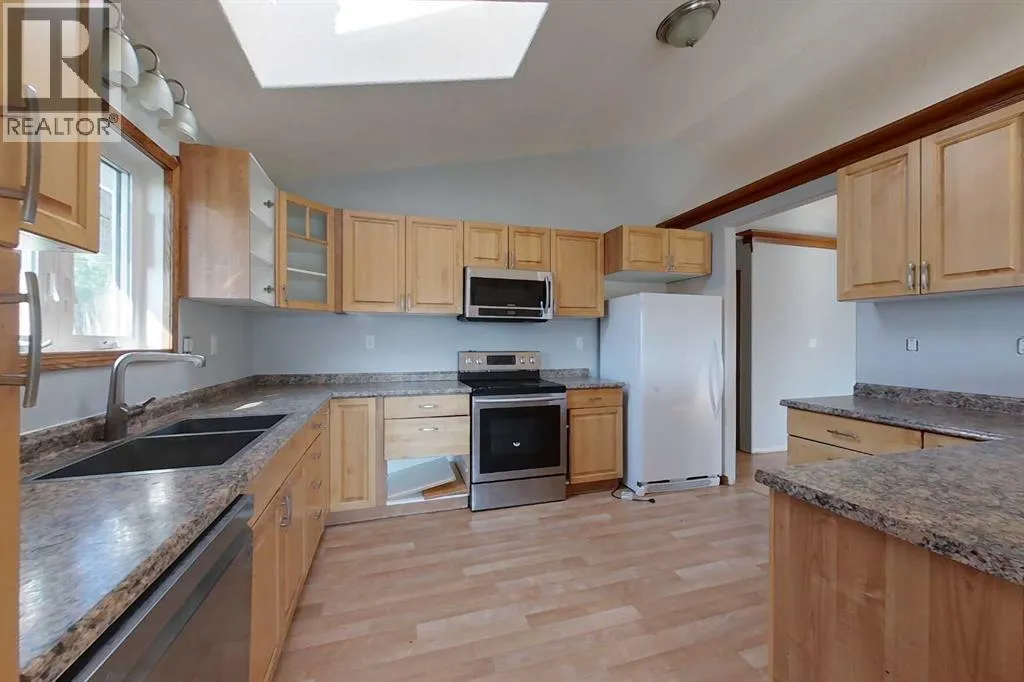 Located on a quiet street, this home features an open floor plan concept, kitchen, dining room and spacious living room, large primary bedroom featuring a 4-pc ensuite, large closet and access to a deck overlooking the back yard. A second bedroom and a 5-pc bathroom completes the main level. The lower level is complete with a spacious rec room, additional 4 bedrooms, 5-pc bathroom and laundry/utility room. 6 bedrooms, 3 bathrooms, single attached garage, 33' X 26' workshop!! Large concrete parking pad. This home is perfect for a growing family. (id:27476)