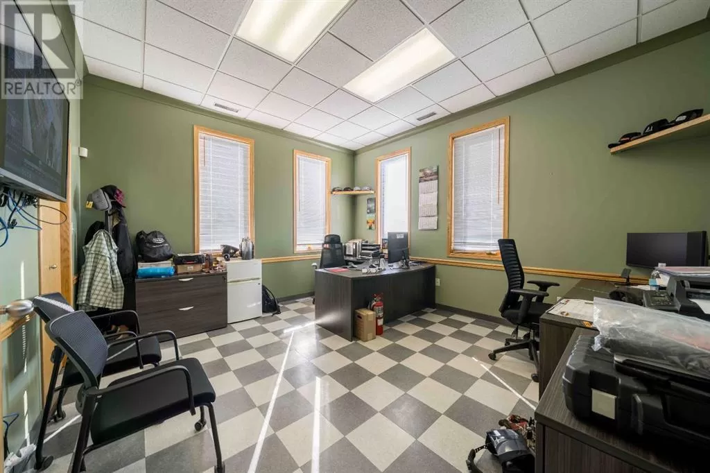 Unlock a prime investment opportunity with this industrial commercial revenue building, featuring a long-term, reliable tenant on a lucrative lease. This property offers exceptional functionality and versatility for industrial operations, with a robust steel structure and approximately 20-foot full-span ceiling height.Highlights include three radiant heat Ray units, ensuring efficient and consistent heating throughout the workspace. The building is equipped with two drive-through bays and one drive-in bay, providing seamless access for large vehicles and equipment. Five overhead doorsâtwo measuring 16 feet wide by 18 feet high, and three at 14 feet wide by 14 feet highâall feature electric openers for added convenience.Recent upgrades include a brand new roof installed in June 2025. The upstairs utility panel is 225 amp, 240 volt, supporting modern industrial demands. Trough-style floor drains and an electric exhaust fan make for a clean and safe working environment.The office area is climate controlled with an external commercial gas HVAC and air conditioning system by York. There are two bathroomsâone in the office and one in the shop, the latter complete with laundry facilities.This property combines income stability with outstanding industrial features, making it an excellent addition to any commercial portfolio. Reach out today to learn more or schedule a private tour. (id:27476)