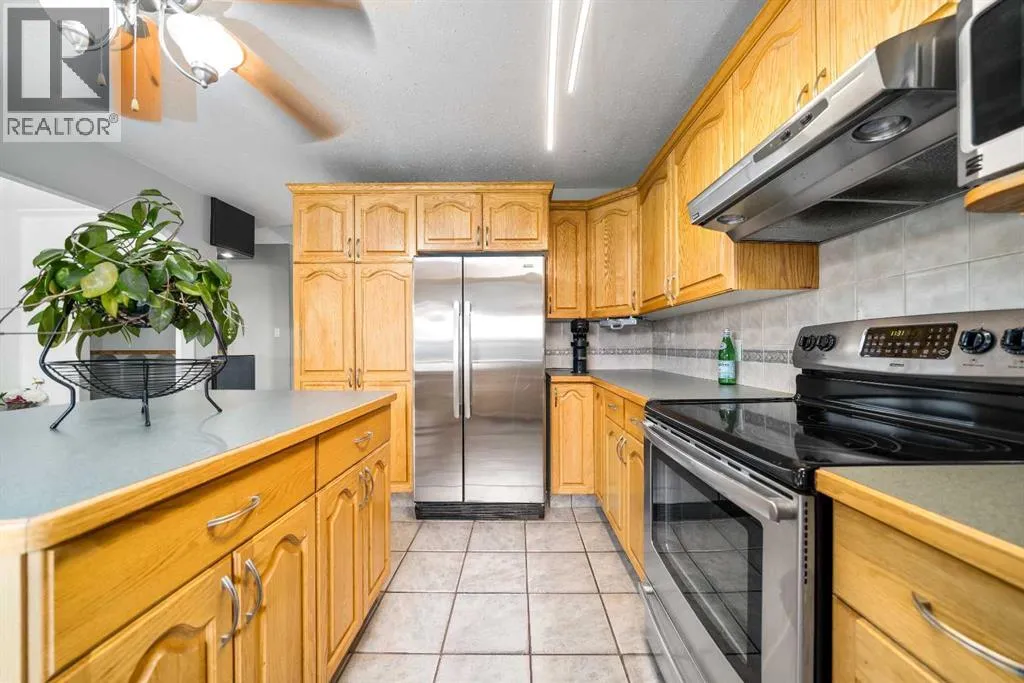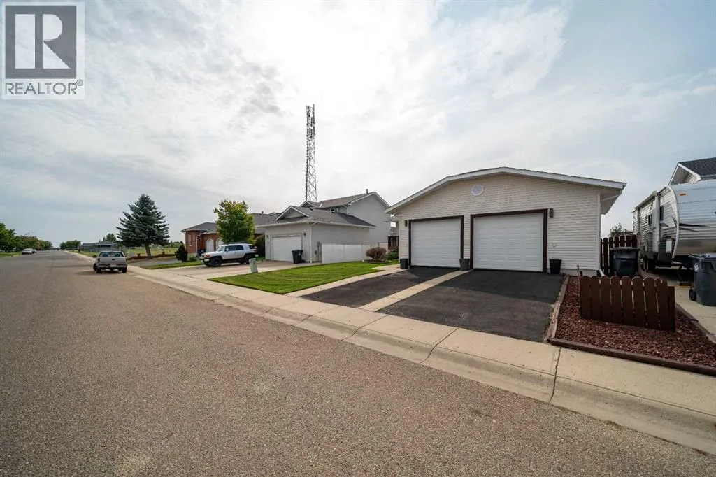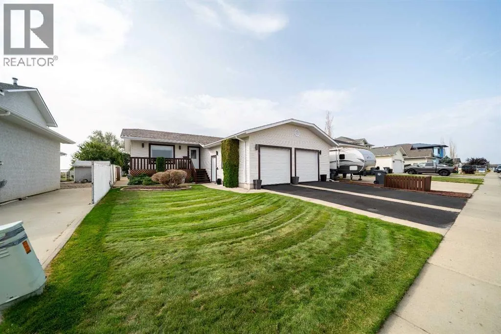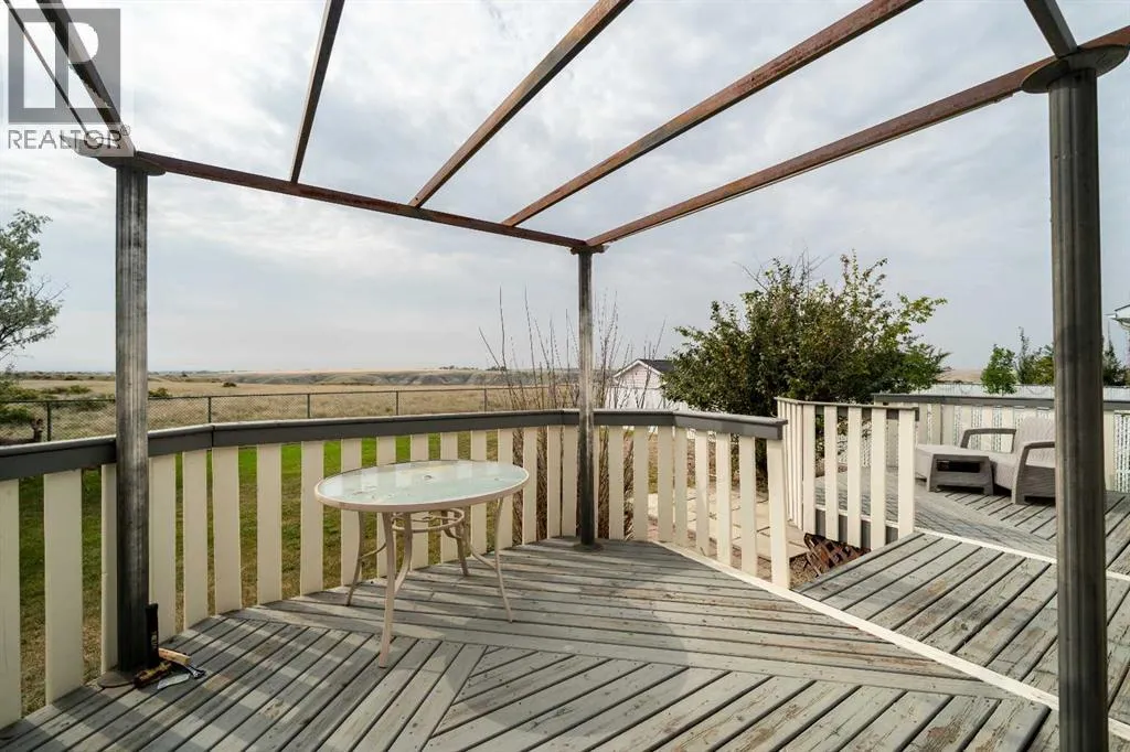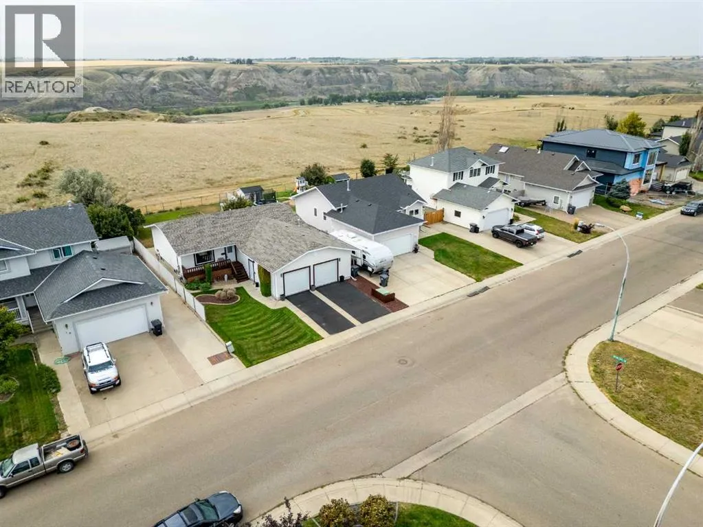 This beautifully maintained bungalow offers everything you need, with breathtaking coulee views as the backdrop. Step into the spacious front living room with vaulted ceilings and a large entryway that creates an inviting first impression. The kitchen is well-appointed with oak cabinets, a large island, and a separate dining areaâperfect for family gatherings. From here, youâll enjoy direct access to a huge rear deck, also accessible from the primary suite. The primary bedroom is generously sized and features a 3-piece ensuite. The main floor also includes a second bedroom, a 4-piece bath, and a versatile flex room with laundry that could double as a den, office, or craft space. The fully developed basement expands your living space with two additional bedrooms, a large family room complete with a cozy corner gas stove, a 3-piece bathroom, and another flex room for your lifestyle needs. The oversized double garage is fully finished and heated, while the yard is fully fenced and equipped with underground sprinklers in the front. The home is also wired for a future hot tubâready for your finishing touch. This property truly has it allâcomfort, space, and views. Take advantage of the 24-hour virtual tour and see for yourself! (id:27476)