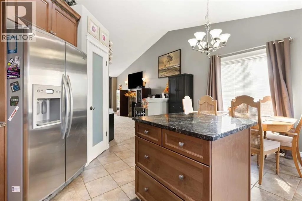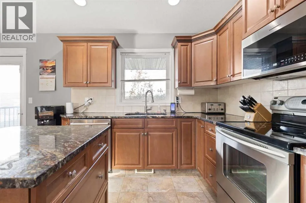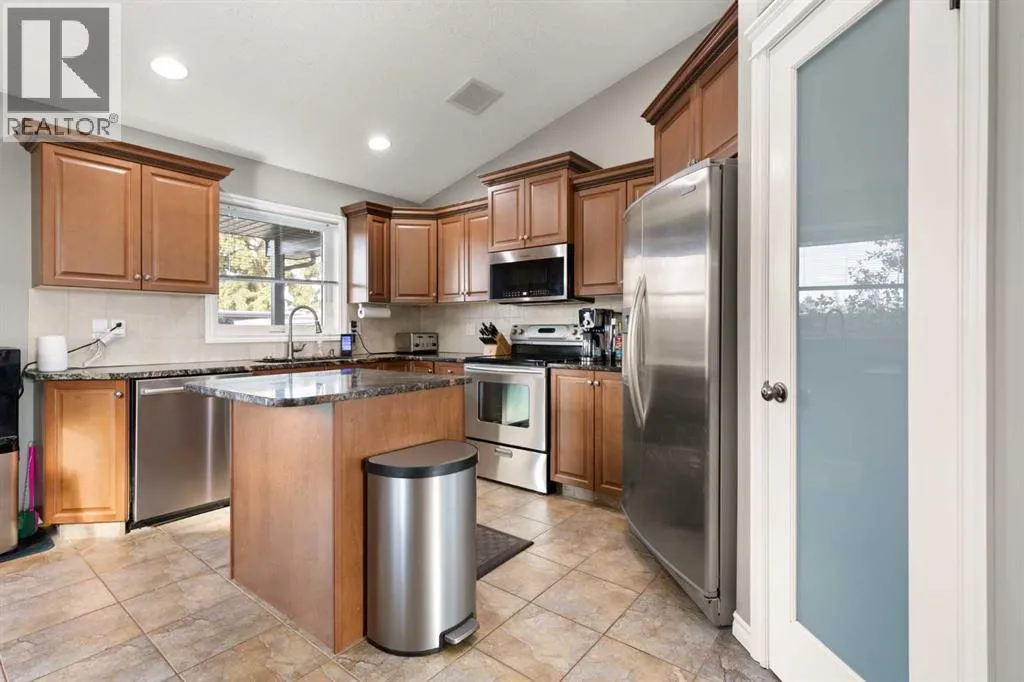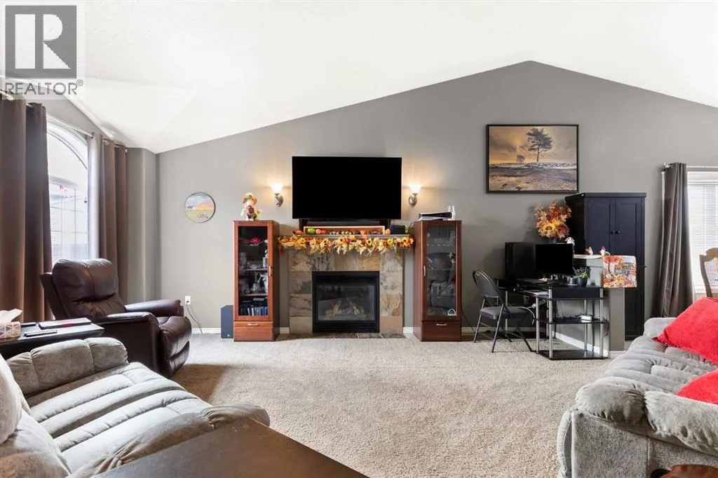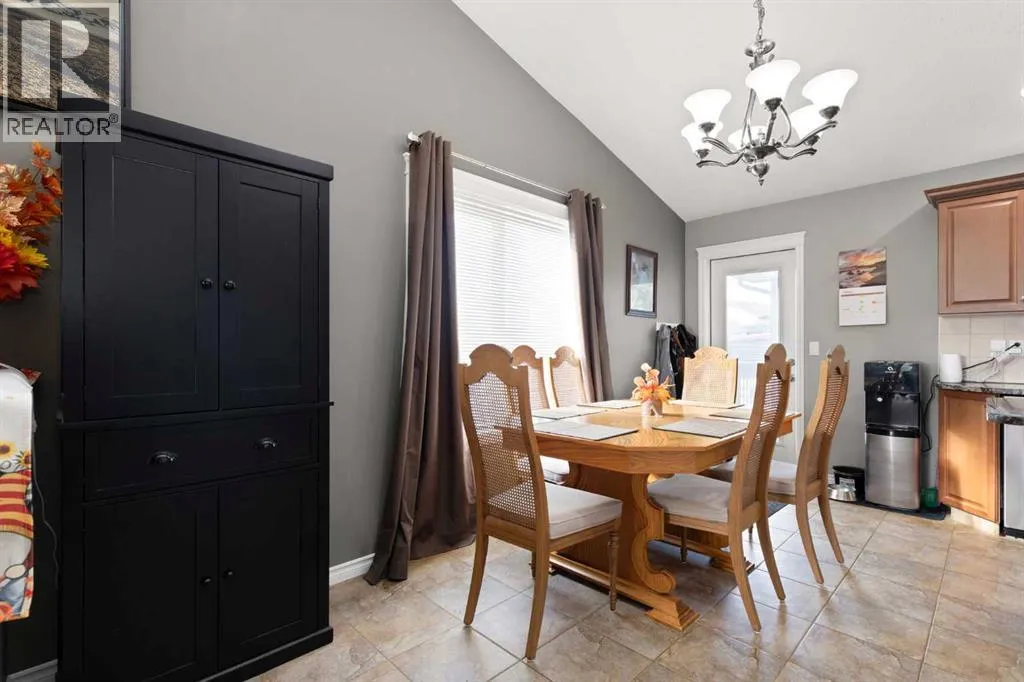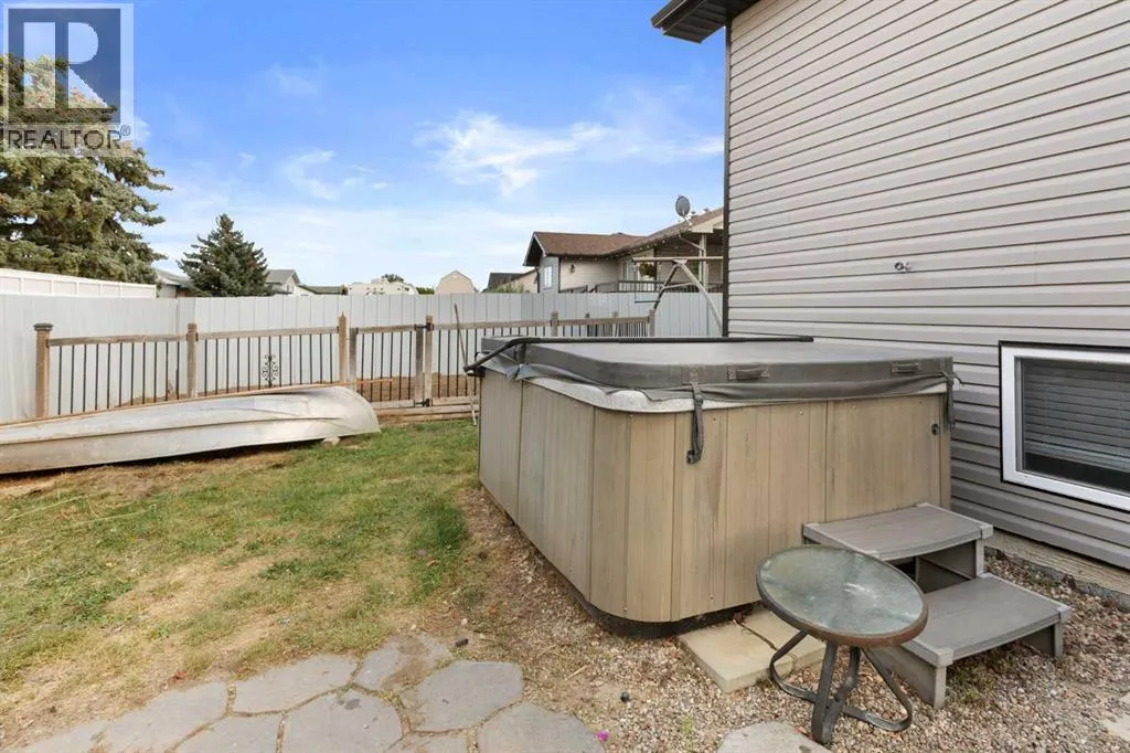 This beautifully designed 1,400 sq. ft. bi-level, built by Serenity Homes, sits on a quiet cul-de-sac and offers an impressive blend of quality, functionality, and modern comfort. Step inside and be greeted by vaulted ceilings and a bright, open layout. The kitchen showcases granite countertops, maple cabinetry, tiled backsplash, corner pantry, and a large island overlooking the dining area. The living room features a cozy gas fireplace, while the primary suite includes deck access, a 4-piece ensuite with double sinks, shower, and walk-in closet. Two additional bedrooms, main-floor laundry, and a second 4-piece bathroom complete the upper level - a highly popular layout for families that balances comfort and convenience. The professionally developed basement (2019) is perfect for growing families - featuring a massive family room, two spacious bedrooms, and a full 4-piece bathroom. Large windows flood the space with natural light, creating a warm and inviting atmosphere ideal for entertaining or relaxing. Outside, enjoy the fully fenced and landscaped yard with underground sprinklers front and back (including the garden), a maintenance-free covered deck, patio with firepit area (blocks for fireplace are stored under deck), and hot tub. The 23 Ã 24 attached garage is insulated, plumbed for heat, and paved triple car driveway out front! Oversized RV parking is available in the backyard OR there's a smaller area in the front driveway that could be utilized. Even better - the thermostat, door locks, and garage doors can all be controlled remotely via app, offering convenience and peace of mind. Recent updates include shingles replaced in 2021, paved driveway, adding to the homeâs already strong pride of ownership. Perfectly located across from a walking path with river/coulee views, this property delivers space, serenity, and smart living - all in one incredible Redcliff location. (id:27476)