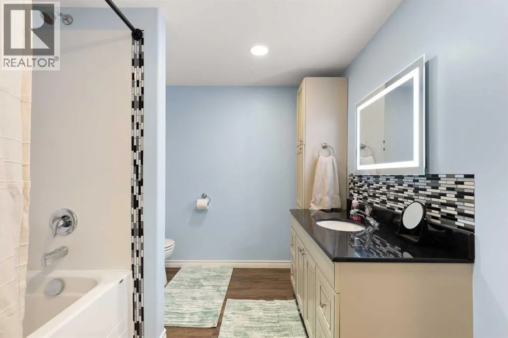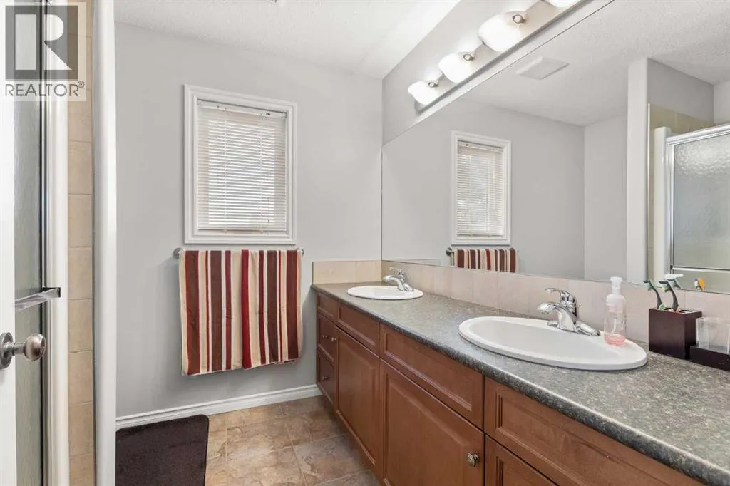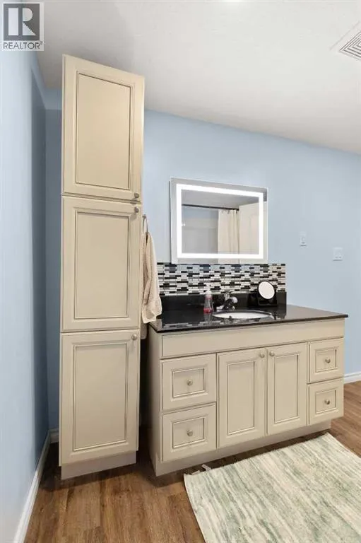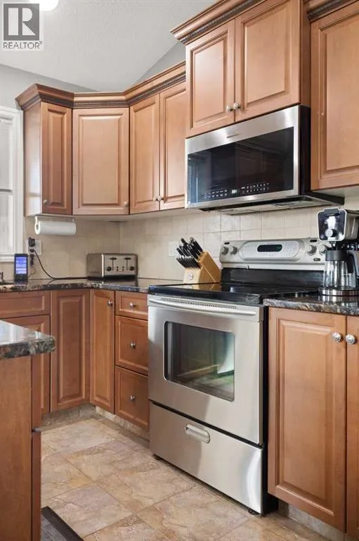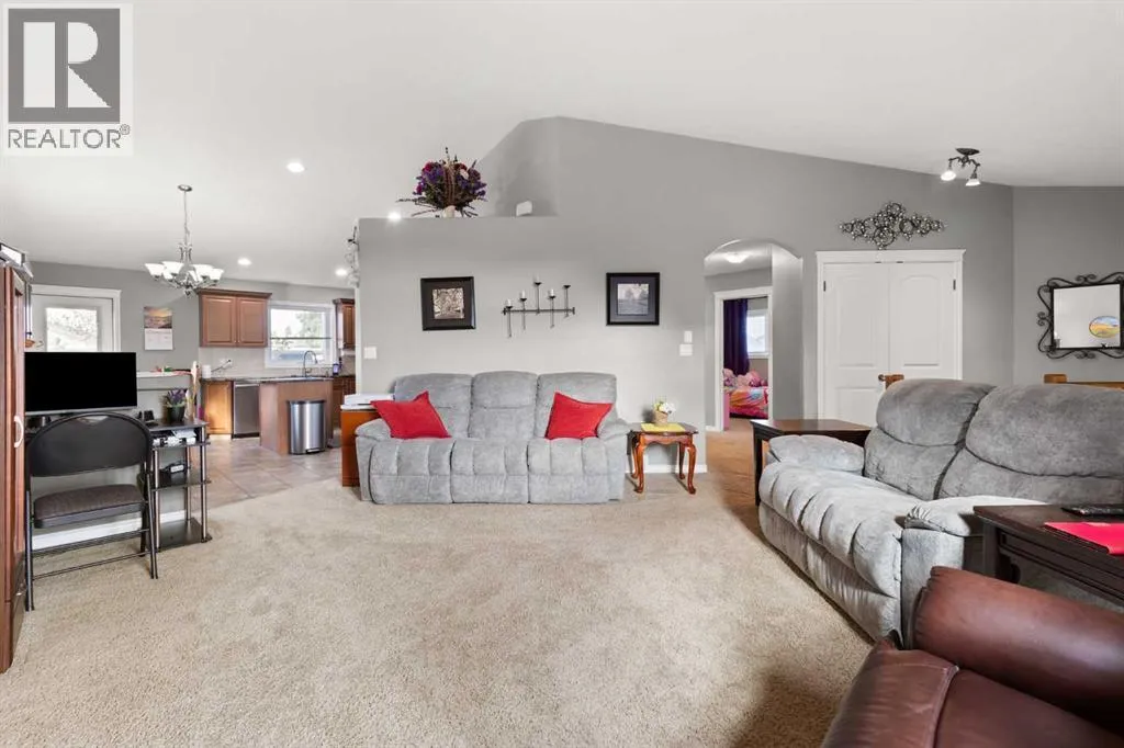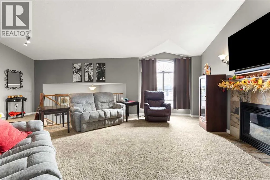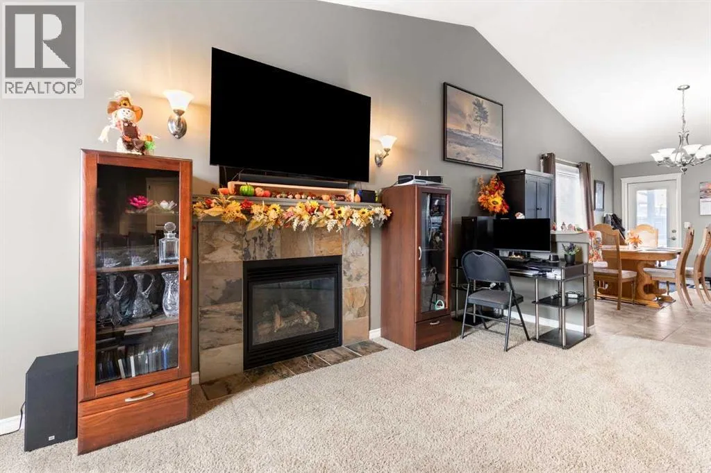 This beautifully designed 1,400 sq. ft. bi-level, built by Serenity Homes, sits on a quiet cul-de-sac and offers an impressive blend of quality, functionality, and modern comfort. Step inside and be greeted by vaulted ceilings and a bright, open layout. The kitchen showcases granite countertops, maple cabinetry, tiled backsplash, corner pantry, and a large island overlooking the dining area. The living room features a cozy gas fireplace, while the primary suite includes deck access, a 4-piece ensuite with double sinks, shower, and walk-in closet. Two additional bedrooms, main-floor laundry, and a second 4-piece bathroom complete the upper level - a highly popular layout for families that balances comfort and convenience. The professionally developed basement (2019) is perfect for growing families - featuring a massive family room, two spacious bedrooms, and a full 4-piece bathroom. Large windows flood the space with natural light, creating a warm and inviting atmosphere ideal for entertaining or relaxing. Outside, enjoy the fully fenced and landscaped yard with underground sprinklers front and back (including the garden), a maintenance-free covered deck, patio with firepit area (blocks for fireplace are stored under deck), and hot tub. The 23 Ã 24 attached garage is insulated, plumbed for heat, and paved triple car driveway out front! Oversized RV parking is available in the backyard OR there's a smaller area in the front driveway that could be utilized. Even better - the thermostat, door locks, and garage doors can all be controlled remotely via app, offering convenience and peace of mind. Recent updates include shingles replaced in 2021, paved driveway, adding to the homeâs already strong pride of ownership. Perfectly located across from a walking path with river/coulee views, this property delivers space, serenity, and smart living - all in one incredible Redcliff location. (id:27476)