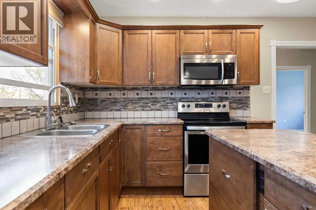 This 3-bedroom, 2-bathroom bungalow offers comfortable living in a fantastic central Redcliff location. Youâll love being just a short walk from schools, the swimming pool, hockey rink, skate park, BMX track, tennis courts, library, and more â everything your family needs right nearby! Inside, youâll find a renovated kitchen that adds a fresh, modern touch to the home. The layout is practical and welcoming, and waiting for you to make it your own. Vinyl windows help improve efficiency, and the metal roof provides lasting durability and peace of mind. Out back, the oversized heated double garage is a real highlight â ideal for vehicles, storage, or a workshop space. This property is a great opportunity to enjoy the charm and convenience of Redcliff living, with thoughtful updates already in place and room to personalize to your style. (id:27476)
