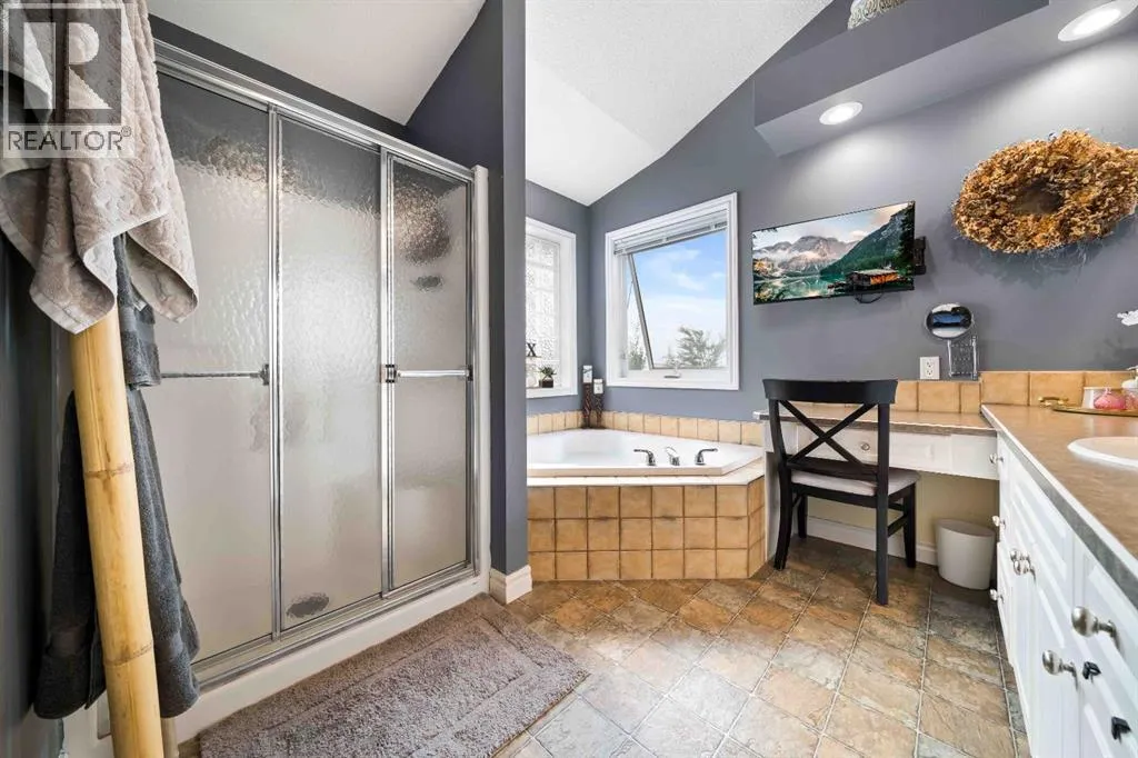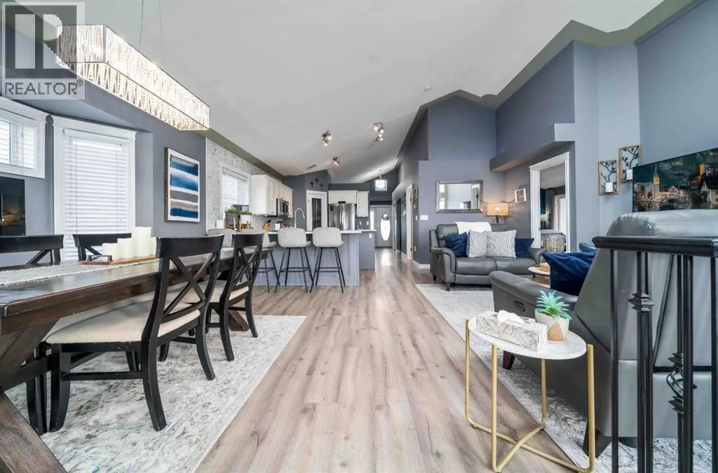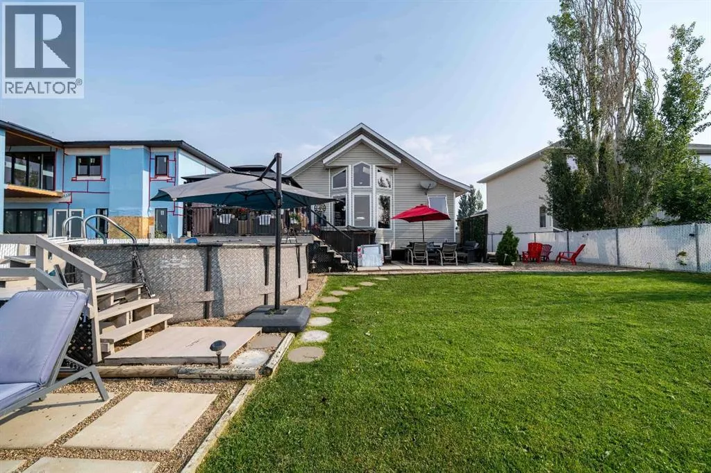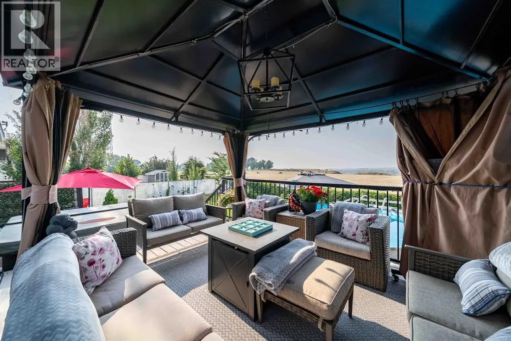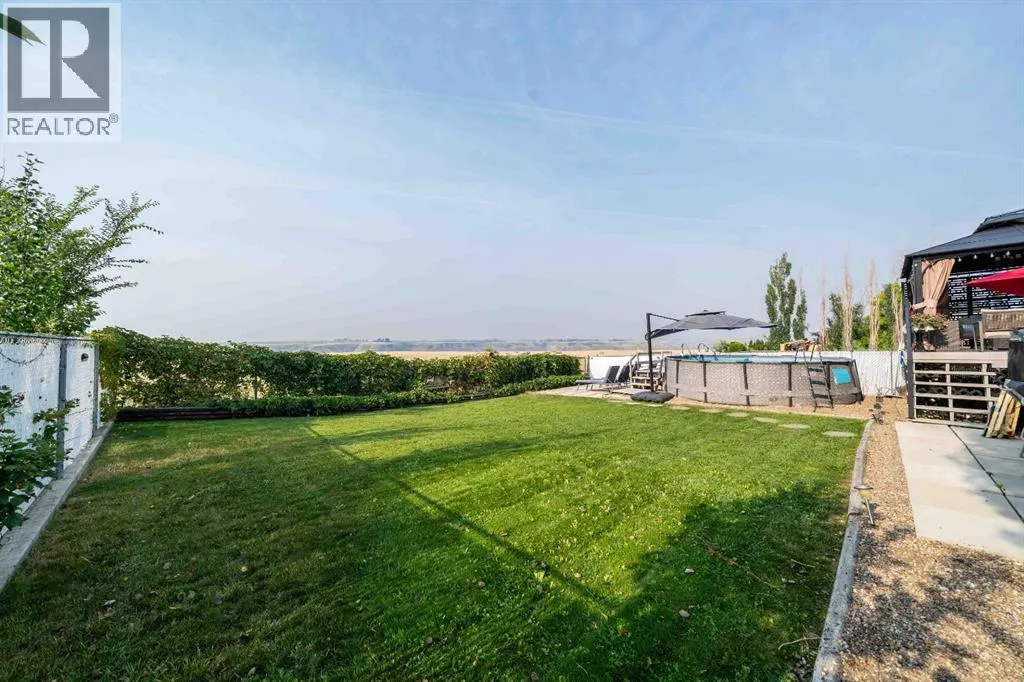 Welcome to 110 Redcliff Way SW, a bright and inviting walkout bungalow just six houses from the edge of the Redcliff Golf & Country Club, and only a one-minute drive to the clubhouse. With vaulted ceilings, skylights, and large windows framing stunning panoramic views of the coulees, this home blends peaceful living with thoughtful functionality. At the front of the home, a flexible room currently used as a butlerâs pantry offers extra prep space, cabinets, and a second fridge â but could also serve as a home office, sitting area, or den. Just off the heated and insulated double garage, you'll find a boot room with closet for storing all your outdoor gear. The main living area opens into a bright, open-concept kitchen/dining/living space. Enjoy crisp white cabinetry, newer laminate countertops, stainless steel appliances, a corner pantry, breakfast bar, and island â perfect for family meals and entertaining. A 2pc guest bathroom is conveniently located just off the kitchen. From the spacious dining area, step out onto your deck with a built-in gazebo, ideal for soaking in the expansive prairie skies and coulee views. Watch summer storms roll in or unwind in the hot tub after a long day. The large backyard includes a sprawling grassed area, paved patio, above ground pool and underground sprinklers for easy lawn maintenance. The primary bedroom retreat features a vaulted ceiling, walk-in closet, plus a 4pc ensuite with a jetted tub, shower, oversized vanity, and large mirror. Downstairs, the fully finished basement boasts 9-foot ceilings, a cozy living area with fireplace, double-door bedroom (currently a music room), two additional large bedrooms, a 4-piece bathroom, and a fifth bedroom currently used as a home gym. A separate laundry room and utility/storage space add even more function. This home checks all the boxes for relaxed living just steps from the golf course, with room for guests, hobbies, and hosting â both indoors and out. 110 Redcliff Way SW â Lifestyle , space, and scenery, all in one. (id:27476)