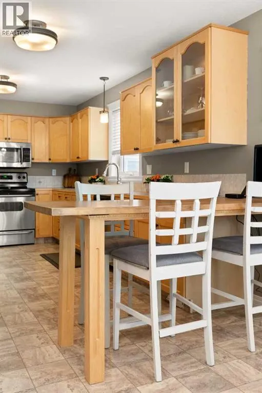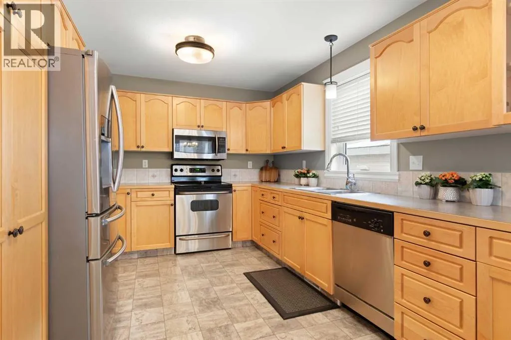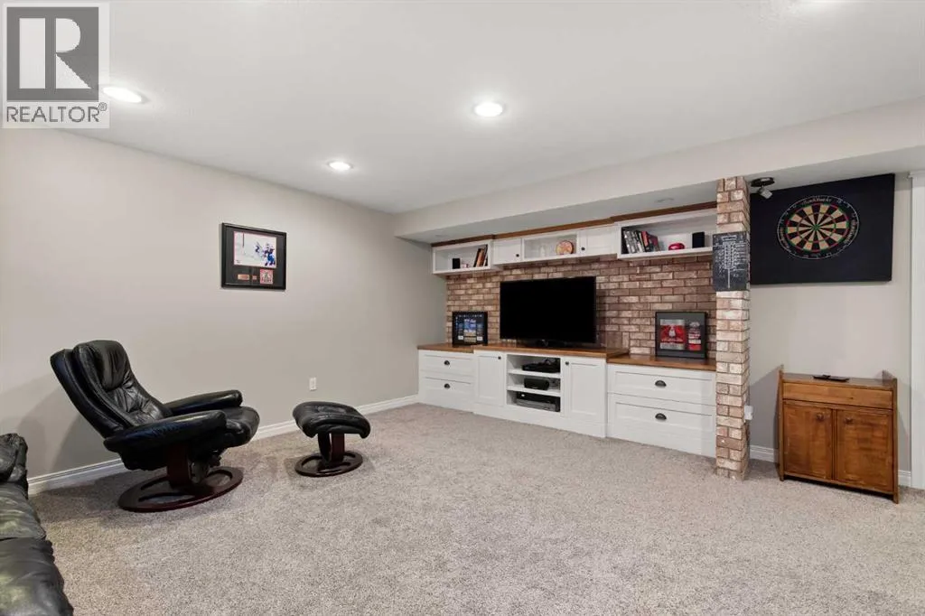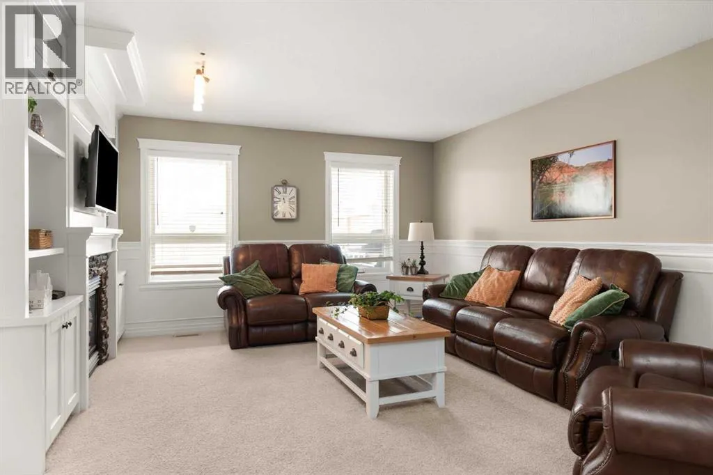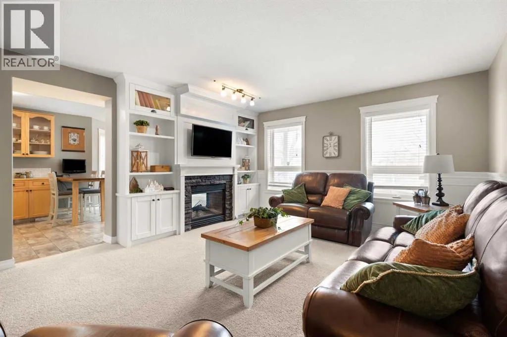 Welcome to 928 3rd Street SW in Redcliff a beautifully maintained 2000 sq ft 1½ storey home with timeless brick curb appeal and a thoughtfully designed layout inside and out. The exterior immediately stands out with its attractive brick frontage, rock landscaping with mature vegetation, and fantastic curb appeal. Step inside to a generous front entryway, where a bright main-floor office sits just off the entrance, featuring a large front-facing window that floods the space with natural light...ideal for working from home or a quiet study. The main floor offers a flexible formal dining area that could also function as a reading nook, secondary living space, or flex area depending on your needs. Toward the back of the home, youâll find a spacious and inviting living room complete with built-in shelving and a stunning see-through gas fireplace shared with the kitchen - a unique feature that adds warmth and character to both spaces. The kitchen is well-equipped with a full stainless steel appliance package, ample cabinetry, generous counter space, and multiple dining options including a dedicated eating area and raised breakfast bar seating. Patio doors provide direct access to the back deck, making indoor-outdoor living effortless. Upstairs, the home offers three bedrooms, including a spacious primary retreat featuring a walk-in closet, a 3-piece ensuite with a full tiled walk-in shower, and exclusive access to a covered private balcony...the perfect spot for morning coffee or evening relaxation. A second full bathroom serves the additional bedrooms. The basement provides even more living space, including a comfortable family room, a 3-piece bathroom, and a versatile bonus area currently set up as a mini stick hockey arena! This space can easily be converted back to storage or adapted to suit your needs. The utility room also offers excellent additional storage. Completing the home is a 22â x 24â attached garage that is finished, insulated, drywalled, heated, and equip ped with built-in shelving. The fully fenced backyard is a true highlight, backing directly onto a green space with no rear neighbours. Enjoy a covered deck plus an additional uncovered patio area, a custom privacy wall for shelter and seclusion and immaculate landscaping filled with perennials and flowers. Thereâs plenty of room for kidsâ play equipment, entertaining, or simply enjoying the outdoors.This is a well-cared-for home offering space, functionality, and privacy in a fantastic Redcliff location. (id:27476)