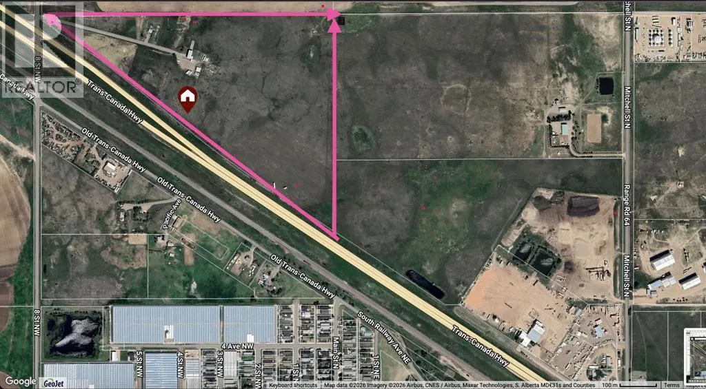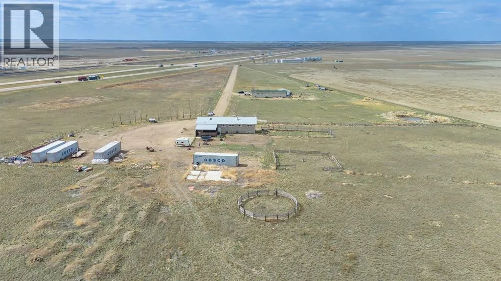 Fantastic opportunity located on the North side of Redcliff offering exceptional long-term potential with over 3000 ft of HWY 1 frontage with easy access and only 10 minutes from Medicine Hat! This 61 +/- acres currently has 2 revenue generating residences situated on it, as well as additional income from a gas well & high-visibility advertising signage. The property is almost fully fenced and has 4 seacans, a 250' well, a lagoon and septic tank. The single family home is approximately 1960 sq ft has 3+2 bedrooms, vinyl windows, HWT 2023, HE furnace 2010, water softener, reverse osmosis for the kitchen, central a/c, new metal roof, a large covered deck & a large attached 24' x 28' garage. The second residence is a 2003-built mobile home of approximately 1560 sq. ft., featuring 3 bedrooms plus an office, 2 full baths, and a 28' x 30' garage. Seller was considering a mini storage facility which buyer may want to explore. This property is zoned Urban Reserve and is ideally positioned on the edge of Redcliff with easy access to Hwy 1 and Medicine Hat with exceptional visibility, providing strong exposure and long-term development potential. (id:27476)