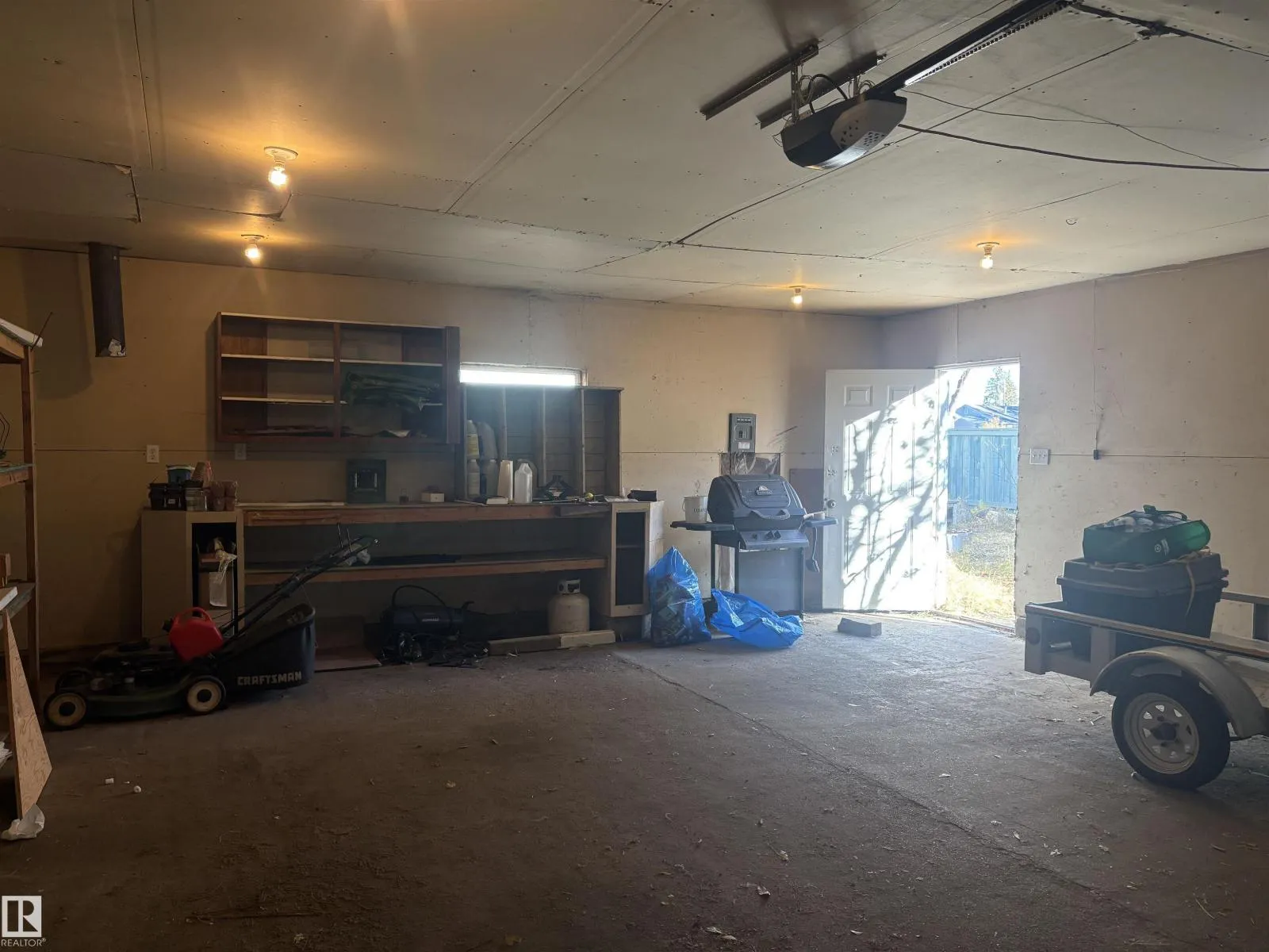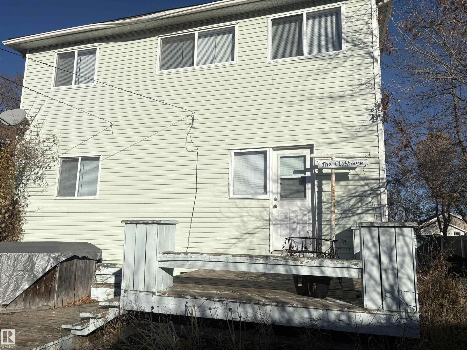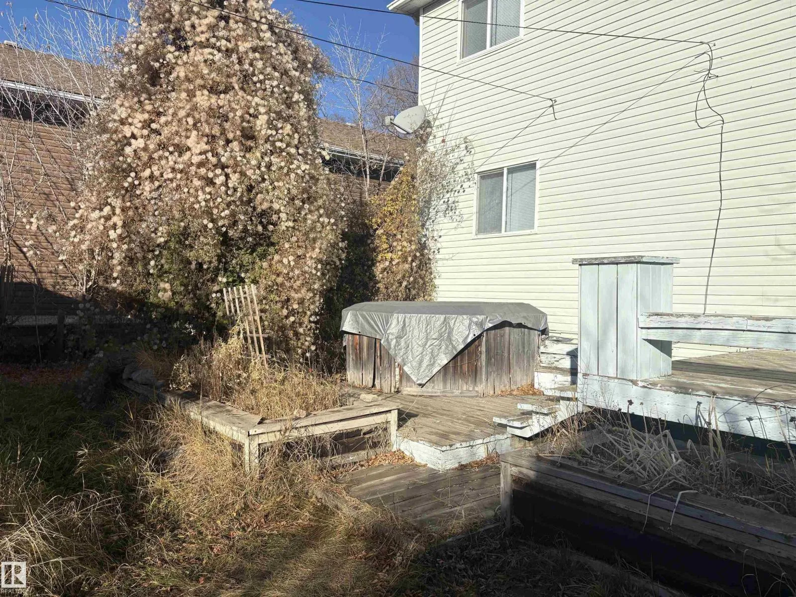 Great opportunity to own this 3-bedroom, 2-bathroom home with a double detached garage and just under 1,500 sq ft of living space. The entire upper floor can be used as a spacious primary suite with a 4-piece bath or as a fun play space for the kids, offering flexibility to fit your lifestyle. The main floor features an open kitchen and living room, two bedrooms, a 4-piece bath, and a convenient space for a home office just off the living area. Step outside to a private, treed backyard with a deck and hot tub, perfect for relaxing or entertaining. Upgrades include some windows, a high-efficiency furnace, newer appliances, and two jetted tubs. Located in a quiet Redwater neighborhood close to schools, parks, and all amenities. Redwater offers Kâ12 schools and is about 30 minutes north of Edmonton. (id:27476)