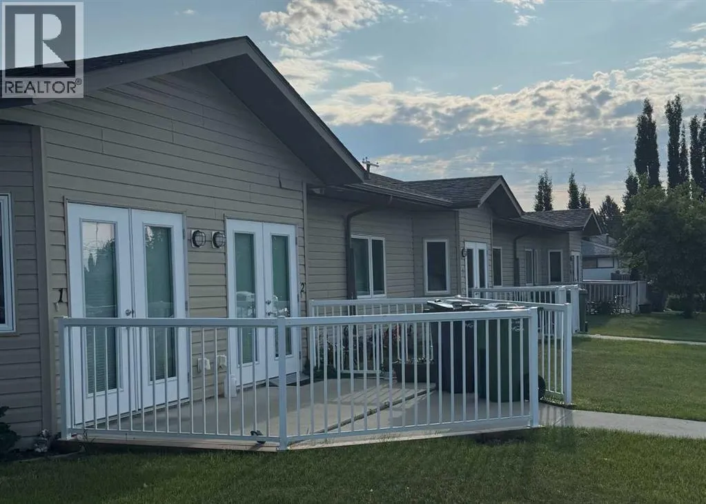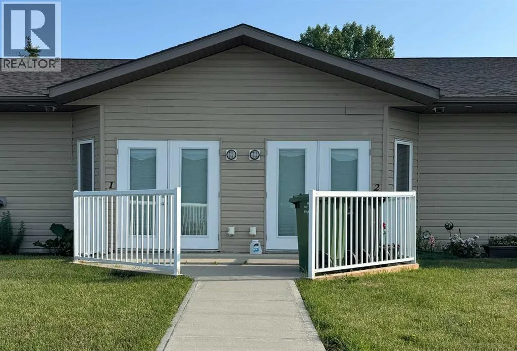 Great Location! Across from Rimbey's Senior's Center, close to hospital, park, shopping and all amenities. 55 plus Condo, so no more snow to shovel or grass to mow. Heat, garbage and water included in the condo fees. This unit has an open floor plan, modern decor, with garden doors to a patio area, large master bedroom with a three piece ensuite, along with a Den, and another four piece bathroom. Comes with all appliances, and there is in floor heating in the unit and the garage. This complex consists of four units, large common hallway with interior access to heated garage for each unit. This unit shows well! (id:27476)